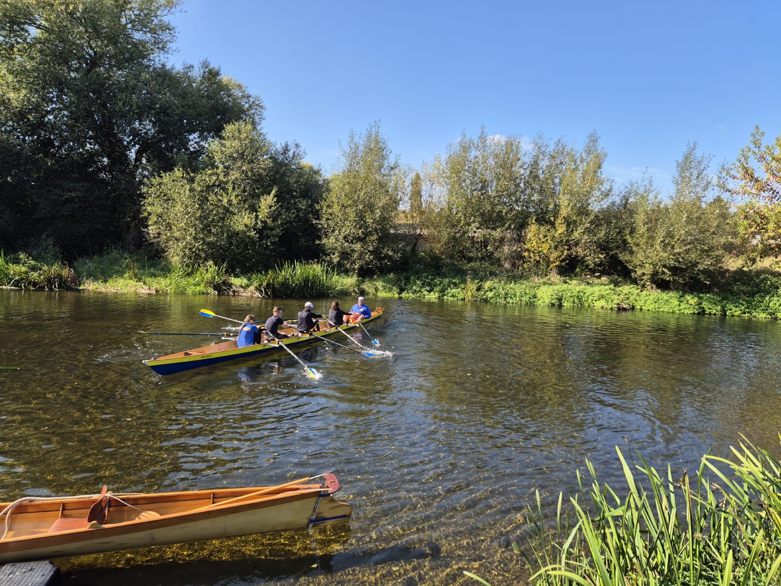 Prinzipiell war alles wie immer, am letzten Oktobersamstag 2025. Und wie immer gab es auch ein paar Abweichungen... Nur wenige Kinder und Jugendliche beteiligten sich diesmal am Ergometerwettstreit. Nudeln gab es trotzdem zu Mittag. Bei der Gig-Vierer-Vereinsmeisterschaft fanden sich zwei Mannschaften, um gesteuert vom Matthias gegeneinander anzutreten. Das Rennen machten Niclas, Arne, Colin und Johann mit fünf Sekunden Vorsprung. Die Ansprache der Vorsitzenden Silke Gans begann mit einem Gedenken an unseren allseits geschätzten Clubkameraden Günter Illgen, verstorben erst vor wenigen Tagen nach kurzer Krankheit. Es folgten ein Rückblick auf die vergangene Saison, der Ausblick auf Kommendes, die Begrüßung neuer Mitglieder, verschiedene Ehrungen und der Aufruf, ein letztes Mal für diese Saison „die Ruder zur Hand und die Boote zu Wasser zu lassen“. Das letztere wehte der Wind derweil auch immer mal wieder in leichten Schauern über alle hinweg, die sich auf der Mühlgrabenwiese versammelt hatten. Sie kamen nicht nur auf dem Wasserweg, sondern nach dem Kaffee- und Kuchen-Genuss auch über Land hinzu. Am Feuer, mit mal mehr, mal weniger Regenzeug ließ es sich aber aushalten. Würstchen und Stockbrot fanden genauso wie Getränke und Gesangseinlagen regen Zuspruch. Mit Einbruch der Dämmerung waren alle Boote wieder unter Dach und Fach. Ob gemütlich im Saal oder mehr oder weniger feucht vor der Bootshalle mit Feuertonne, Liedgut und Co... Es wurde noch bis weit in die Nacht hinein gefeiert. Großes Dankeschön an alle für das Engagement dafür!