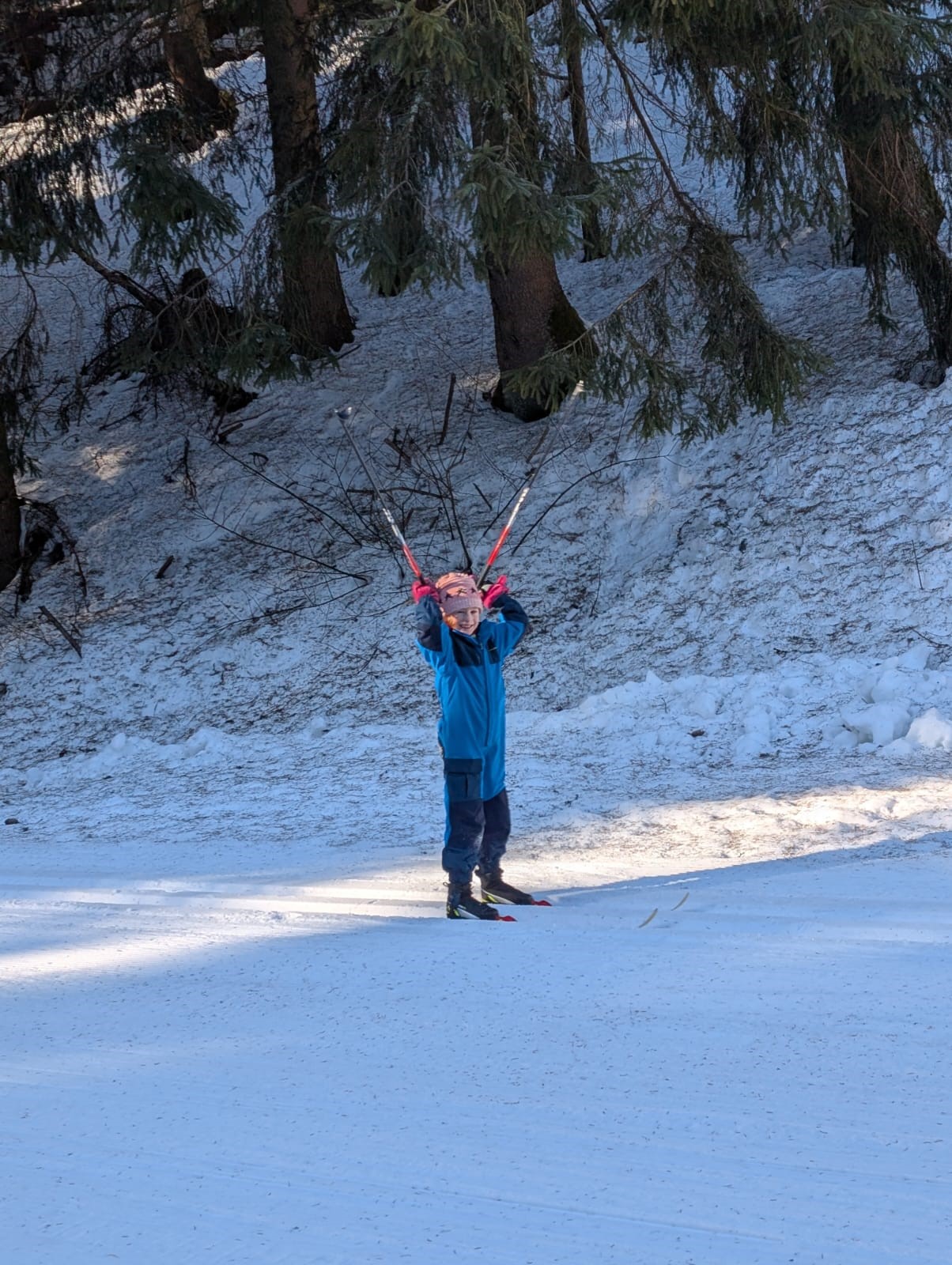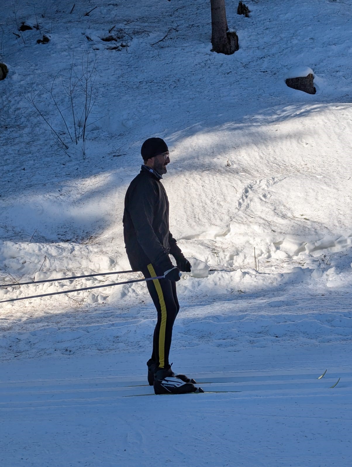 Die erste gute Idee brachte uns am frostigen Samstagmorgen ins sogenannte Eisstadion am Schanzenkomplex. Dort war eine 800m-Runde mit feinstem Kanonenschnee gespurt. Unter Wettkampfbedingungen konnten die ersten Langlaufgrundlagen trainiert bzw. aufgefrischt werden. Zu Mittag gab es im Landschulheim lecker Schnitzel und als Nachtisch Schokopudding. Hinterher war noch etwas Zeit für ein wohlverdientes und gern angenommenes Nickerchen im Kuschelraum. Dann ging es nach Weitersglashütte, um die Loipen zwischen Talsperre und Erzgebirgskamm anzutesten. Mit Einbruch der Dämmerung war man dann wieder in der Herberge, wo bald das Abendbrot aufgetischt war. Danach konnte man sich noch einem kleinen Kulturprogramm hingeben, zu dem jeder etwas Aufschlussreiches beizutragen hatte. Gitarre und Gesang waren auch mit von der Partie, so dass sich späteren Abends sogar eine Auswahl des ebenso anwesenden Apoldaer Schwimmvereins im Gemeinschaftsraum einfand. Der Tag wurde also doch noch etwas länger.