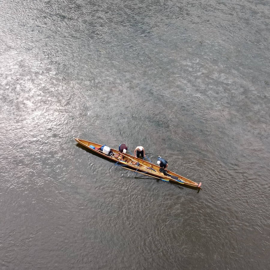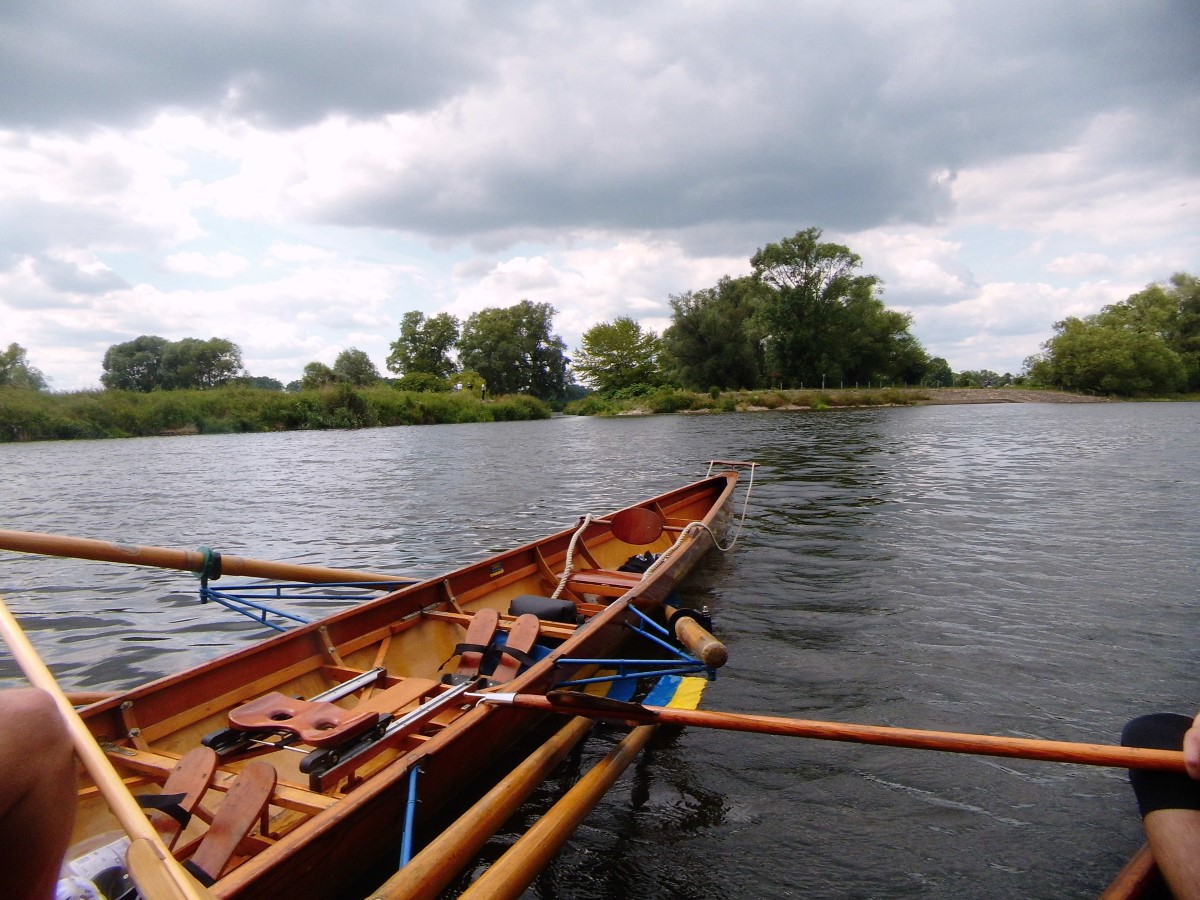 Vier bestens befüllte Gig-Doppelzweier mit Steuermann, ein 2-Mann-Landdienst und ein bisschen Optimismus. - Mehr brauchte es nicht, um anstatt der „Großen" regulären Wanderfahrt eine kleine aber feine Fahrt über den heimischen Mühlgraben auf die Mulde hinaus zu improvisieren. Der Muldepegel gab ebenfalls sein bestes, Dank wohl dosierter Regengaben im Vorfeld. Dennoch war Obacht angesagt. Nach vielfältig platziertem Großgehölz in den ersten 7 Kilometern Fahrrinne warteten standardmäßig die kiesigen Untiefen der Mulde.