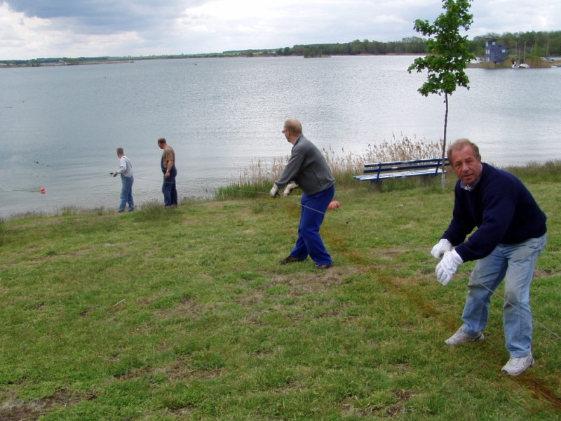 Was in der Olympiakandidatenstadt Leipzig noch pure Vision ist, weit weg von jeder Realität, funktioniert im kaum 25 Kilometer entfernten Städtchen Eilenburg bestens: Eine Ruder-Regattastrecke mit einem weit und breit (sieht man von Berlin und Brandenburg) einmaligem Albaner-System für sechs Startbahnen und genügend Platz zum Trainieren auf einer Kiesgrube mit kristallklarem Wasser (und reichen Fischbeständen) hat sich nun schon mehr als zwanzigmal bewährt. Es gibt so viel Platz, dass neben dem normalen Regattaund Trainingsbetrieb auf einer separaten Fläche Geschicklichkeitswettkämpfe für die jüngsten Ruderanfänger stattfinden können. Die engagierte Truppe vom Ruderclub Eilenburg ließ sich vom widrigen, spätwinterlichen Wetter Ende April nicht abhalten und brachte den Regattakurs und das dazu gehörende Gelände wieder auf Vordermann. Das Ufer im Bereich des Zielturmes und der „Zuschauertribünen“ wurde durch gewisse „Landgewinnungsmaßnahmen“ erweitert und durch Steinaufschüttungen gegen Ab- und Ausspülen für die Zukunft geschützt. Neue Steganlagen verbessern die Bedingungen für das An- und Ablegen. Der großzügige Siegersteg ermöglicht es, den Gewinnern in den Rennen in einem attraktiven Umfeld zum Sieg zu gratulieren, Blumen, Medaillen und Urkunden zu überreichen. Das Gewinnerbad für Steuerleute lässt sich von dort publikumswirksam inszenieren. Der Eilenburger Regattaplatz zeigte sich wieder von seiner besten Seite. Selbst eine Verlängerung der Regattastrecke wäre ohne wesentliche Probleme möglich. Gebrauch gemacht wird von einer solchen Möglichkeit bei Sichtungsveranstaltungen der sächsischen Kader für den Bundeswettbewerb in den Altersklassen 12 bis 14. Die Eilenburger Regatta als „Allgemeine“ hat im Umkreis von 400 km an „ihrem“ Maiwochenende keine weiteren Konkurrenten. Sollte neben den optimalen Bedingungen für eine Nachwuchsregatta nicht auch die gute Anbindung von Eilenburg über die Autobahnen A 14, A 9 und immer besser ausgebaute Bundesstraßen B 87 und B 107 in den Rudervereinen hinter dem Thüringer Kamm resp. auf „der anderen Seite“ vom Harz nicht endlich auch einmal die Neugier so weit anstacheln, sich etwas weiter in den Osten zu wagen? Eine Unterkunft direkt an der Regattastrecke in Zelten ist möglich und die gastfreundlichen Stadtväter von Eilenburg stellen gern Unterkünfte in Schulen zur Verfügung, wenn das Wetter nicht unbedingt (wie in diesem Jahr) zum Übernachten im Freien einlädt. Leider blieb die Eilenburger Regatta wieder nur eine Veranstaltung sächsischer und sachsen-anhaltischer Rudervereine, von denen auch noch etliche durch Abwesenheit glänzten. Die etwas mehr als 100 Läufe in 53 Rennen mit ca. 300 Booten über den Regattakurs zu bringen, bereitete den Organisatoren keinerlei Probleme. Selbst mit den Wetterverantwortlichen scheint man hier – anders als an der künftigen Olympiastrecke im griechischen Schinias (der „rudersport“ berichtete u.a. in 05/2004) – im guten Einvernehmen zu stehen. In der Regel gibt es einen kaum spürbaren Westwind, der auf allen Bahnen gleiche Wettkampfbedingungen bietet, der Regen ist meist abgestellt und die Sonne ist auch regelmäßig Gast der Eilenburger Ruderregatten. Von der Anlage der Regattastrecke und der Fähigkeit des veranstaltenden Eilenburger Rudererclubs (Regattaauschuss mit Wilfrid Dippmann, Klaus Winkler (beide Eilenburg) und Rolf Tiller (Dresden)) her, sollte eine Ruderregatta mit wesentlich mehr teilnehmenden Vereinen und Rudern zu keinerlei Qualitätsmangel bei der Durchführung führen. Die Zuschauerresonanz kann auch nicht bemängelt werden – alle hier verfügbaren Medien werden in die Vorbereitung (und Auswertung) einbezogen und leisten einen guten Beitrag zur Popularisierung der Regatta in der Stadt und ihrer Umgebung. Wieder kam das stärkste Regatta-Kontingent mit 35 Booten vom sachsen-anhaltischen Zschornewitzer Ruderclub 1954 (im Vorjahr 31 Boote). Und auch in diesem Jahr landete dieser Verein – wie machen die Zschornewitzer das nur auf ihrem kleinen Trainingsgewässer? – mit neun Siegen auf den zweiten Platz (gleichfalls dort der Ruderclub Wittenberg mit 31 Booten, der es im vorigen Jahr bei 19 Booten gerade zu vier Siegen brachte) in der inoffiziellen Vereinswertung. Der im vorigen Jahr erfolgreichste Pirnaer Ruderverein 1872 brachte es 2004 auf drei Siege. Die „Ehre der Sachsen“ rette die Crew um Rolf Pabst von der Wurzener Rudervereinigung: Mit einer Erfolgsquote von 50 % siegten die Wurzener bei 20 Starts genau zehnmal, wobei besonders die Serie von fünf Siegen bei den B-Junioren im Einer (einschließlich Leichtgewicht) beeindruckend war. Mit jeweils sechs Siegen rangierten dann der Ruderclub Magdeburg im SCM und die RG Wiking im SC DHfK Leipzig auf den nächsten Plätzen. Fuhren die sächsischen Vereine bei der Eilenburger Regatta im letzten Jahr noch 60 % mehr Siege ein als die „ausländische“ Konkurrenz, so erreichte der Überhang sächsischer Siege in diesem Jahr nur noch ein Fünftel Andreas Renner (Zschornewitz) siegte sowohl bei den A-Masters (vor Roscher, Laubegaster RV) als auch bei den A-Senioren (vor Törpsch, Dresdner RV und Wegwerth, RC Eilenburg). Die Laubegasterin Kati Stelzer siegte klar im Einer der Seniorinnen, ihr Vereinskamerad Sebastian Beetz entschied das leichte Senioren-Einer-Rennen für sich. Bei den alten B-Masters-Rivalen siegte Wende (Wurzen) vor Fercho (Torgau). Damit sind alle Rennen im Erwachsenenbereich dokumentiert: Wieder war die Eilenburger Ruderregatta eher eine Jugendregatta. Umfasste das größte Teilnehmerfeld im letzten Jahr 27 Booten im Jungen-Einer AK 14 (einschließlich der Leichtgewichte), so fanden sich nun 27 B-Junioren-Einer und dazu noch acht leichte Vertreter dieser Altersklasse am Start ein. Die Läufe wurden weitgehend von den Wurzener Junioren Hörig, Napierala, Müller, Lehne und Müller (als Sieger) dominiert. Lediglich Zwinscher (Wiking Leipzig) bzw. Zapp (Wittenbe