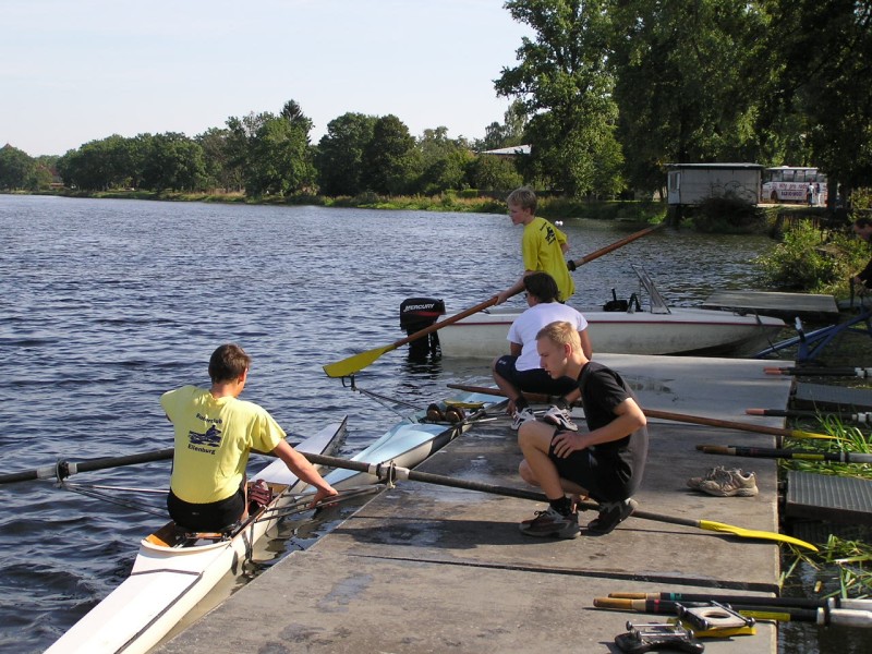 Vor einer Woche hatten die Eilenburger Ruderer die tschechischen Sportler in Eilenburg und Wurzen zu Gast und am vergangenen Wochenende folgten sie der Gegeneinladung ihres Partnervereins ins tschechi-sche Neratovice. Eine Woche vor dem eigenen Saisonhöhepunkt, den Landesmeisterschaften auf der Kies-grube, versuchten sich die Eilenburger Ruderer mit tschechischem Bootsmaterial auf der 1000m Elbe-Strecke ca. 25 km nördlich von Prag. Wie auch in den vergangenen Jahren trat eine leistungsstarke tschechische Konkurrenz auf, so dass die Eilenburger Ruderer ordentlich Druck machen mussten, um vorne dabei zu sein. Gelungen ist es zweimal. Am Siegersteg anlegen konnten nach einem harten Rennen Mario Händler und Hannes Köhler im Doppel-zweier. Den zweiten Sieg schaffte Maria Grigat im Einer. Zusammen mit Elisabeth Budras ruderte sie im Doppelzweier auf Platz zwei, den gleichen Rang erzielte Elisabeth Budras im Einer. Die übrigen Eilenburger Starter konnten sich nicht so erfolgreich behaupten, entweder waren die Gegner zu überlegen oder die Ei-lenburger haderten mit dem Bootsmaterial. Sportlicher Wettkampf bildet die eine Seite der Partnerschaft, die andere ist geprägt durch die interessante, erlebnisreiche und herzliche Atmosphäre in den Gastfamilien. Der kurze Auslandsaufenthalt war nur ein Zwischenspiel nun sind es nur noch wenige Tage bis zu den Lan-desmeisterschaften, wo es auch für die Eilenburger Ruderer hart zur Sache gehen wird.