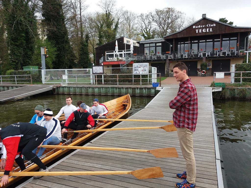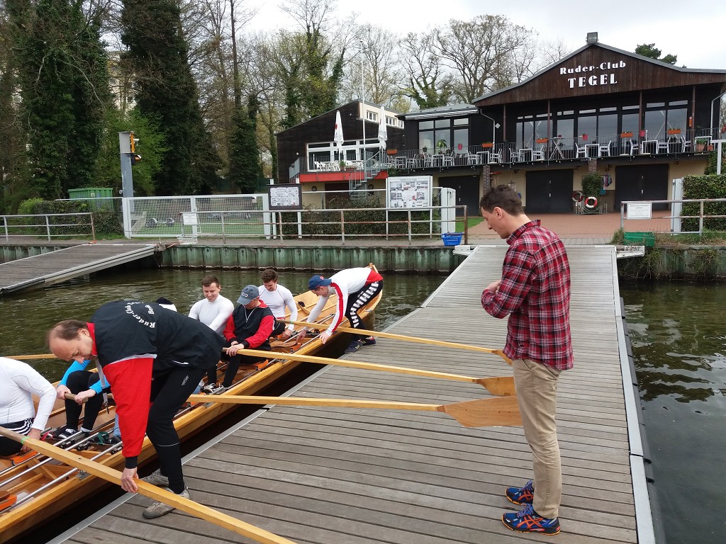 - Beim ersten Frühstück im RC Tegel konnten wir beobachten, wie am Steg ein 10er Kutter startklar gemacht wurde. Da stieg einer ein, der sah genauso aus wie unser Kamerad Belle - unglaublich !!!
