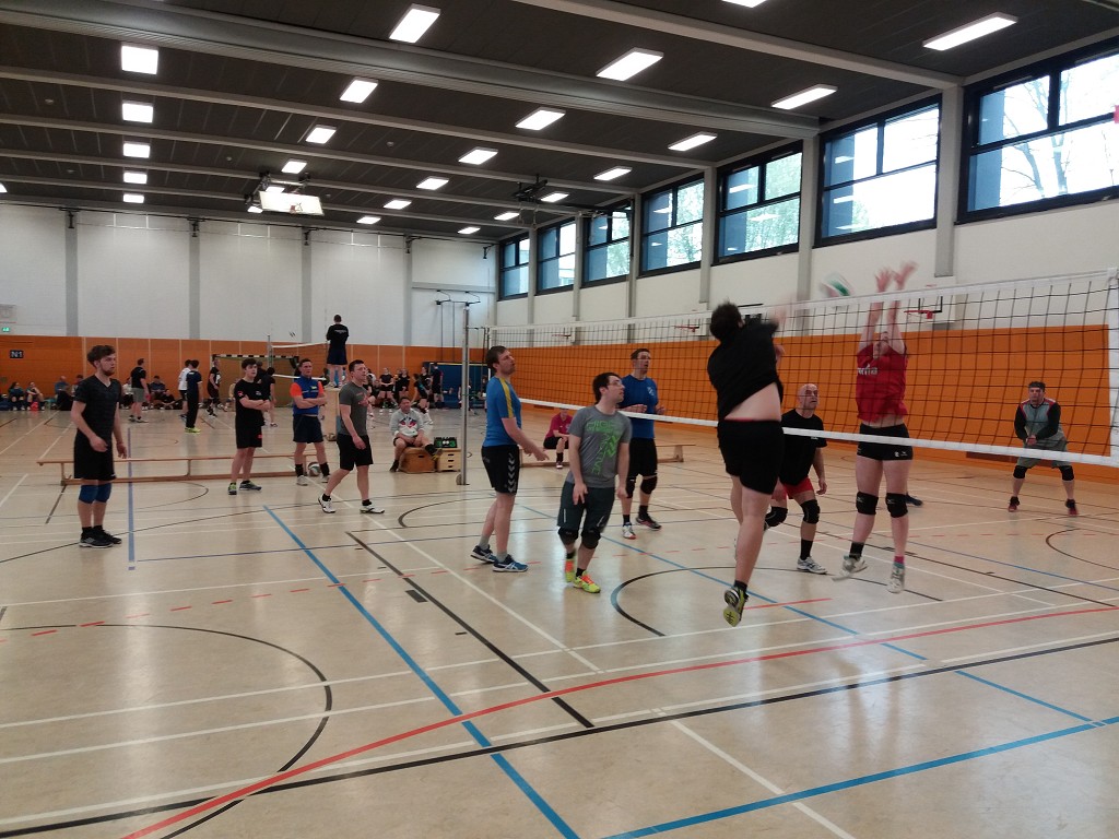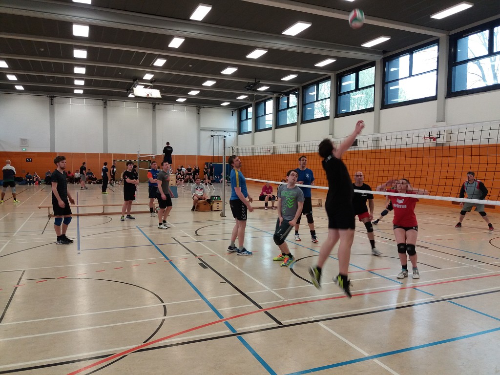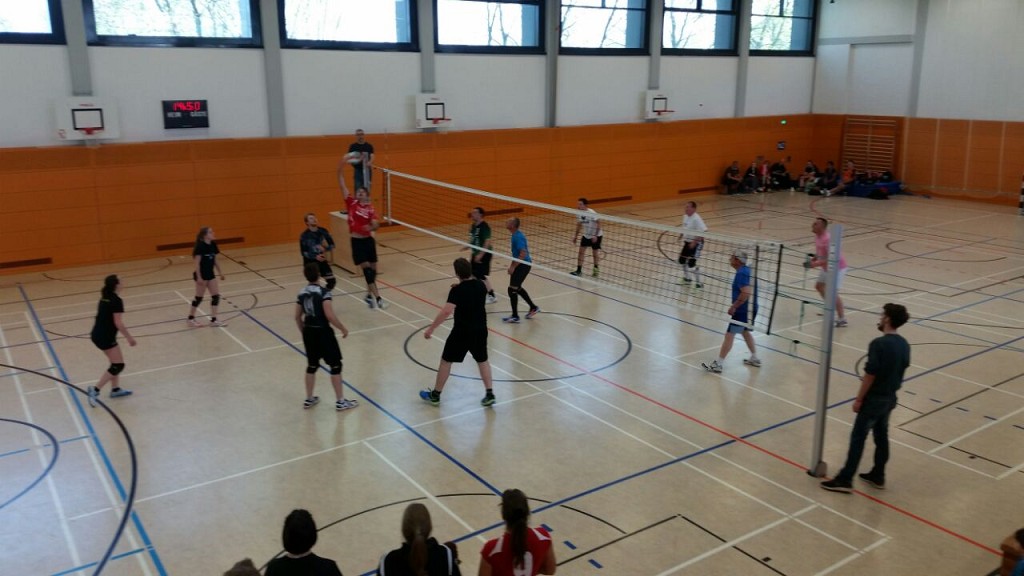 Nach dem Frühstück ging es zur Spielstätte. Dank Roter Welle und langer Parkplatzsuche, waren wir mit Verspätung angekommen. Eilenburg 1 hatte natürlich gleich das 10 Uhr Spiel und war nicht vollzählig. Zum Glück halfen uns drei Kobolde (Stupsi, Vera und Sven) aus, gewannen und sicherten uns die Chance auf einen Podestplatz. Herzlicher Dank an die Drei. Eilenburg 2 durfte dann gegen eben jene Kobolde ran. Da wir durch die Abreise von Rayk und Julius personell geschwächt waren, musste Valentin bei uns mitspielen, so dass wir genau 6 Spieler waren. Der erste Satz ging an die Kobolde, die bis zu diesem Zeitpunkt keinen Satz gewonnen hatten. Im Zweiten konnten wir einmal mehr mit einer überlegenen Moral aufwarten und diesen für uns entscheiden. Dann war wieder die erste im Halbfinale gefragt. Diesmal vollzählig gegen die Mannschaft aus Wulfen (bei Dorsten). Hier merkte man deutlich wer regelmäßig zusammen trainiert. Technisch auf Augenhöhe, gab es bei unseren Jungs immer wieder Abstimmungsprobleme (Angriffs- und Blocksicherung). Zudem muss man ganz klar sagen, dass die Wulfener auf und neben dem Feld ordentlich Stimmung gemacht haben. Das Spiel ging nach kleinen Punkten an Wulfen und die Erste ins Spiel um den Bronzerang. Im letzten Spiel traf die Zweite auf Datteln IV. Schon vor Spielbeginn zeigten einige Eilenburger Nerven, aus Respekt vor dieser jungen Truppe. Wir einigten uns aber darauf nicht zu Schmettern – Fehler? Doch wir erwischten einen guten Start und konnten uns einen deutlichen Vorsprung aufbauen. Leider gab es dann immer mehr individuelle Mängel unsererseits (Angaben, Annahme und Angriff) und der Vorsprung schrumpfte. Die Mädels nutzen gezielt unsere Schwachstellen aus. Mit einem Punkt Vorsprung retteten wir den ersten Satz (16:15). Im Zweiten Satz gab es dann die richtige Klatsche: Bei uns kamen kaum Spielzüge zu Stande, einige Mitspieler standen nur noch körperlich auf dem Feld und auch mit überlegener Moral war hier nichts mehr zu retten. Danach hieß es Wunden lecken und die Erste gegen Neuwied 3 moralisch unterstützen. Diesmal lief es besser, den ersten Satz gewannen sie mit deutlichem Vorsprung (23:13). Im Zweiten war die Luft wieder ein wenig raus, es reichte dennoch für den Sieg nach Punkten – Platz 3. Jetzt duschen, alle sieben Sachen zusammenpacken und sich aufs Endspiel vorbereiten. Einige mussten aufgrund von Verpflichtungen schon eher los, aber wir wollten dem Finale und der Siegerehrung beiwohnen. Das Spiel lief sehr ausgeglichen, wobei Neuwied 1 den etwas besseren Start erwischte und diese kleine Führung bis zum Satzgewinn bewahrte. Im Zweiten war es dann genau umgekehrt. Wulfen hielt eine Zwei-Punkte-Führung bis kurz vor Satzende. Doch Neuwied kam noch ran und hatte bei 24:23 sogar einen Satzball, den sie allerdings nicht verwandeln konnten. Nun ging es immer wieder hin und her, wobei sich Wulfen meist den Satzball holte, diesen aber nicht verwandeln konnte (2x Fehlaufschlag). Letztendlich war es ein Foul der Wulfener, welches zum 32:30 für Neuwied und den Titelgewinn führte. Die Siegerehrung brachte die Turnierleitung recht flott über die Bühne, da die meisten noch eine lange Heimreise vor sich hatten. Auch wir starteten um 16 Uhr. Die vergangenen zwei Tage zeigten Wirkung und so verschliefen viele die Heimreise. Nach kurzem Boxenstopp in Dessau sind wir gegen halb Sieben unfall- und verletzungsfrei am Bootshaus angekommen.