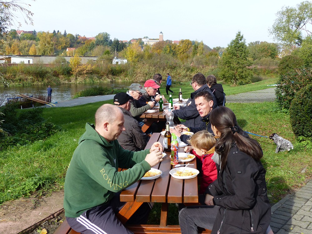 Der Tag begann bei herrlichem Sonnenschein. Die Vereinsmeisterschaften am Morgen wurden im Einer auf dem Mühlgraben ausgetragen. Der ein oder andere musste erfahren, dass dieses Gewässer wegen der Kurven und Strömungen seine ganz eigenen Regeln aufstellt. So siegten bei den Mädchen Leonie Korn, bei den Jungen Konstantin Jentzsch, bei der Jugend weiblich Isabell Krause, männlich Julius Kötter, bei den Frauen Tina Händler und bei den Männern Christoph Krüger.