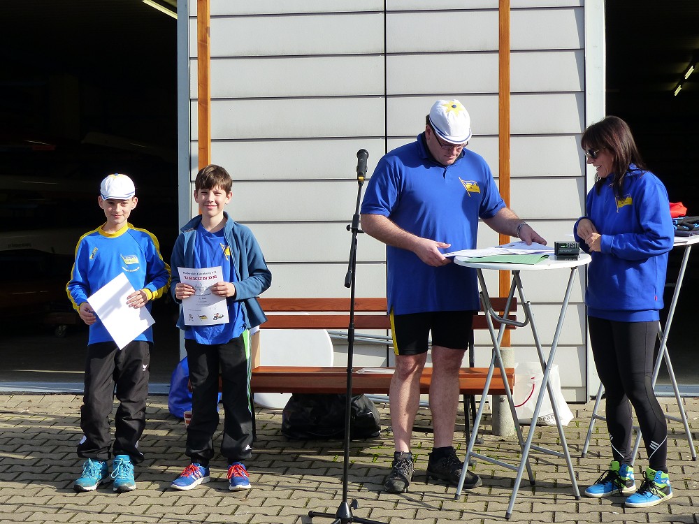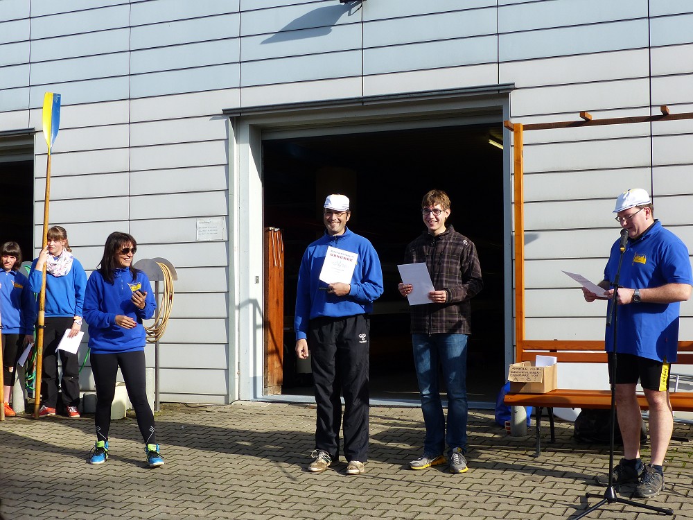 Nach einem leckeren Mittagessen (natürlich Nudeln mit Tomatensoße), geliefert von der Fleischerei Krause, gab es die Ansprache des Vorsitzenden Felix Weiske und die Siegerehrungen. Danach wurden die Vereinsmeister im Gig-Doppelvierer unter den 4 ausgelosten Mannschaften ermittelt. Hier gewann die Mannschaft mit Mathias Groth, Rayk Bremme-Jung, Christoph Krüger, Malte Jung und Steuerfrau Anna Buhle.