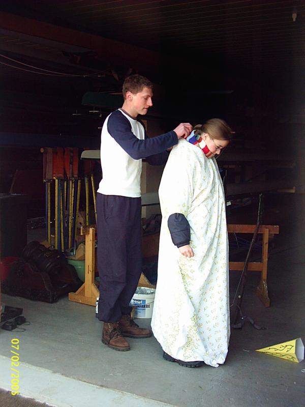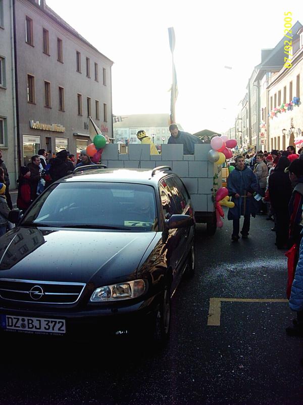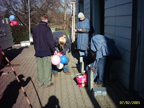 Es war ein sonniger Sonnabendvormittag, an dem wir uns, SEBASTIAN WEIßE, MARIO WINTER, FLORIAN BELLRICH, FLORIANS OPA und ich, im Bootshaus trafen, um den diesjährigen RoMo-Umzugswagen zu bauen. Thema in dieser Saison war: "Karneval am Fuße der Burg". Deshalb ähnelte der Wagen Sonntagnachmittag einer wehrhaften alten Burg mit Zinnen und Standarte des Landesherren (unsere stolze RCEFahne). Natürlich war der Weg zu diesem endgültigen Aussehen genauso steinig wie die Burgmauer selbst. Nach zweistündiger Verspätung rollte der Hänger, der freundlicherweise wieder von JÜRGEN DIETRICH zur Verfügung gestellt wurde, vor die Bootshalle. Grund waren Probleme beim Anbau des Geländers am Wagen – um diese zu beheben, hatte JÜRGEN DIETRICH einige Mühen und wir danken ihm herzlich, dass er auch dafür wieder viel Zeit geopfert hat. Weiterhin bereiteten uns die im Bootshaus vorhandenen Akkuschrauber Probleme, die trotz längerer Ladezeit schnell den Geist wieder aufgaben. Dank HERRN BELLRICH und seinem Werkzeug konnten die Arbeiten dann Sonnabendnachmittag jedoch zügig vorangehen. Am Abend stand das Grundgerüst des Wagens, sodass am darauf folgenden Tag nur noch die Malerarbeiten getätigt werden mussten. Das war dann kein Problem mehr. Am Montag, das Wetter war immer noch so bombastisch wie am Wochenende, ging es für alle Teilnehmer (11 Mannen und 2 Frauen) gegen 12 Uhr im Bootshaus los. Die Kostüme wurden angezogen, letzte Feinheiten am Umzugsgefährt wurden gerichtet und die Rittertruppe strebte gen Bürgerhaus, wo traditionell der Umzug begann. Bis dahin zog TILO PALM mit seinem Auto unseren Wagen, er wurde später MATTHIAS GROTH abgelöst. Nach ziemlich langer Wartezeit, welche unserer Startnummer zu verdanken war (der Nummer 78), rollten wir dann gemächlich über Anger und Leipziger Strasse Richtung Markt, wo die Menschenmassen am Strassenrand dem Umzug begeistert zujubelten. Die Atmosphäre brachte riesigen Spaß. Die Leute riefen mit uns zusammen den RCE Schlachtruf (Wer ihn noch nicht kennt: "RCE Jucheee!!!"). Als Dank gab es von uns einen kräftigen Kamelleregen. Durch das MDR-Bild sind wir wieder einmal gerade noch so durchgerollt - aber trotzdem war es ein gelungner Tag. Recht herzlichen Dank allen Teil17 nehmern, meiner Schwester ANDREA für die leckere Verpflegung und natürlich noch einmal allen Helfern. Auf ein Neues im nächsten, unserem Jubiläumsjahr, wo wir dem Umzug selbstverständlich nicht fern bleiben wollen. Ich wünsche mir, dass ein paar Mitglieder mehr mitmachen und darunter auch einige erwachsene Ruderer sind (Termin schon mal vormerken: 27.02.2006).