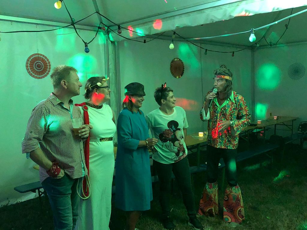 Trotz magerer Resonanz im Vorfeld ist unserer Veranstaltungswärtin Anne und ihren Helfern eine wunderbare Feier gelungen. Unter Anwendung radikaler Improvisationstechniken wurden terminlich-gastronomische Widrigkeiten in kürzester Frist in ihr Gegenteil verwandelt. Nicht umsonst lautete das Motto „HELDEN DEINER KINDHEIT". Und es waren einige erschienen: Darth Vader, Minnie Mouse, Tank Wart, Eigene Omma, Bob Meister, Janis Joplin, deren Lover und viele mehr. Ein paar begeisterte Überraschungsgäste rundeten das Gesamtbild ab. Vielen Dank an alle, die Bilder sprechen für sich und sorgen hoffentlich beim nächsten Mal wieder für ordentlich Andrang. (RBJ)