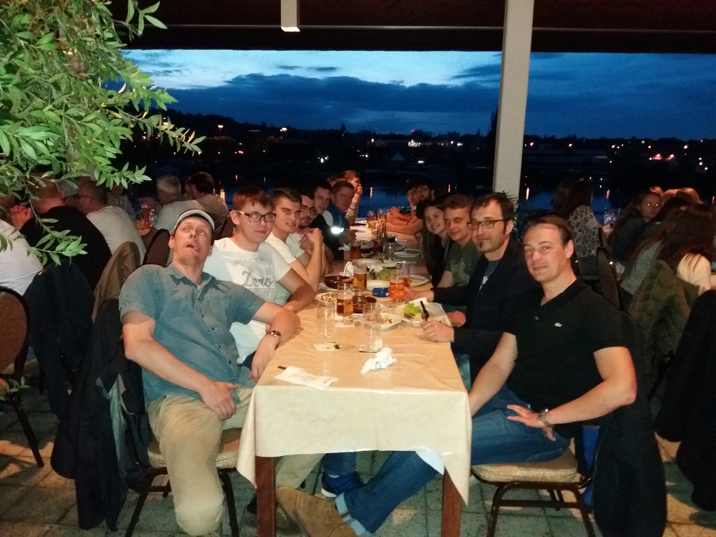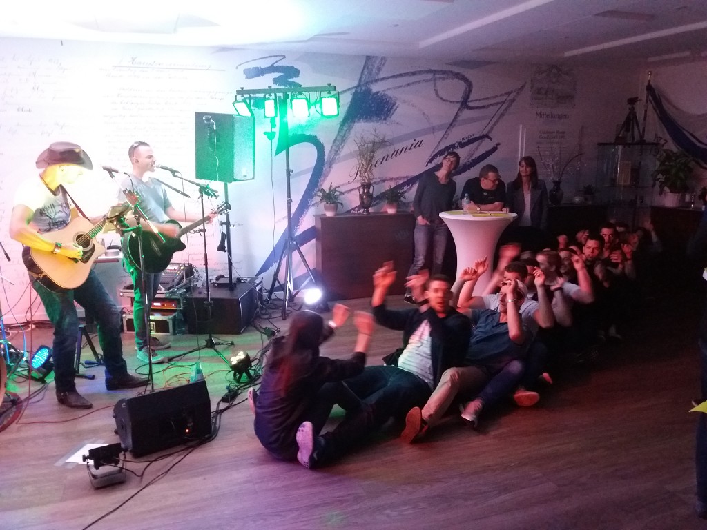 Selbstverständlich kam das Feiern in Koblenz nicht zu kurz. Das opulente Abendmahl fand am Samstag incl. Moselblick in großer geselliger Runde auf der Freiterrasse des Bootshausgriechen statt. Danach spielte sich die Band „Whitsuntide“ die Finger wund. Sohlen glühten auf dem Parkett, mehrfach auch Hinterteile zum „Aloha He“. Nach Mitternacht erhielt der Wirt anlässlich seines Geburtstags ein Liedchen „gesungen“ und bedankte sich mit reichlich Ouzo-Runden.