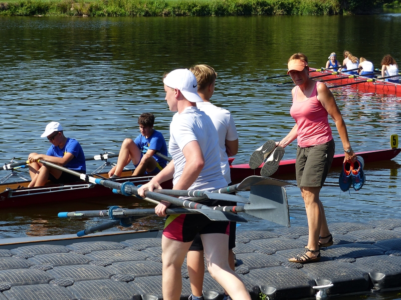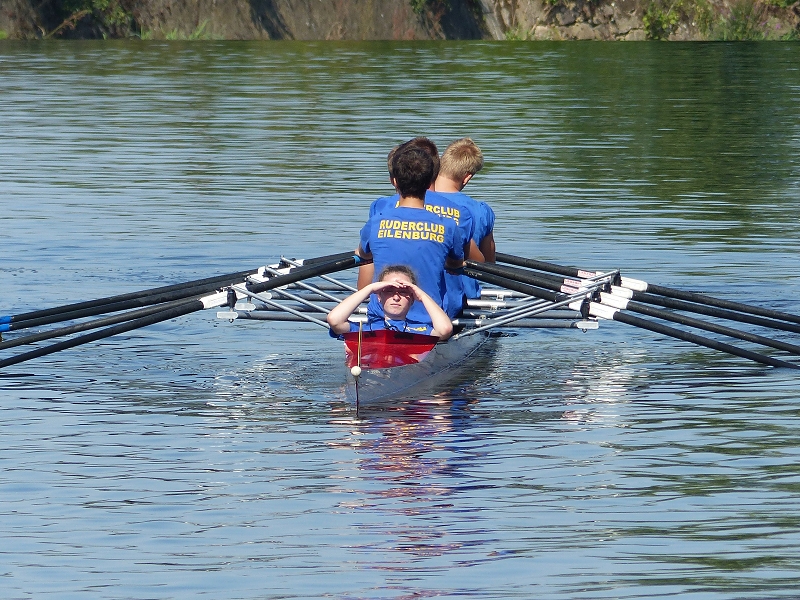 Ein Rudertrainingslager ist eine personalaufwändige Sache . Zwei Übungsleiter und zwei Motorbootfahrer mussten immer dabei sein. Auch die Verpflegung am Morgen und am Abend übernahmen die Eltern. Leider drangen in der Nacht zu Mittwoch dreiste Diebe in das Bootshausgelände ein und entwendeten viele Fahrräder und Fahrradteile. Eine schnelle Transporthilfe durch die Eltern ermöglichte eine Weiterführung des Trainingslagers. Vielen Dank an die Familien Palm, Korn, Kötter, Jung, L. Schulz, K. Winkler, S. Buschmann, S. Gans, D. Weinert, C. Röhr und V. Krause. Am Sonnabend fanden sich noch die Junioren zusammen, um in Leipzig auf dem Elsterflutbecken die zum ersten Mal dort ausgetragene Ruderbundesliga – ein Sprintrennen der Achter über 350m zu verfolgen.
