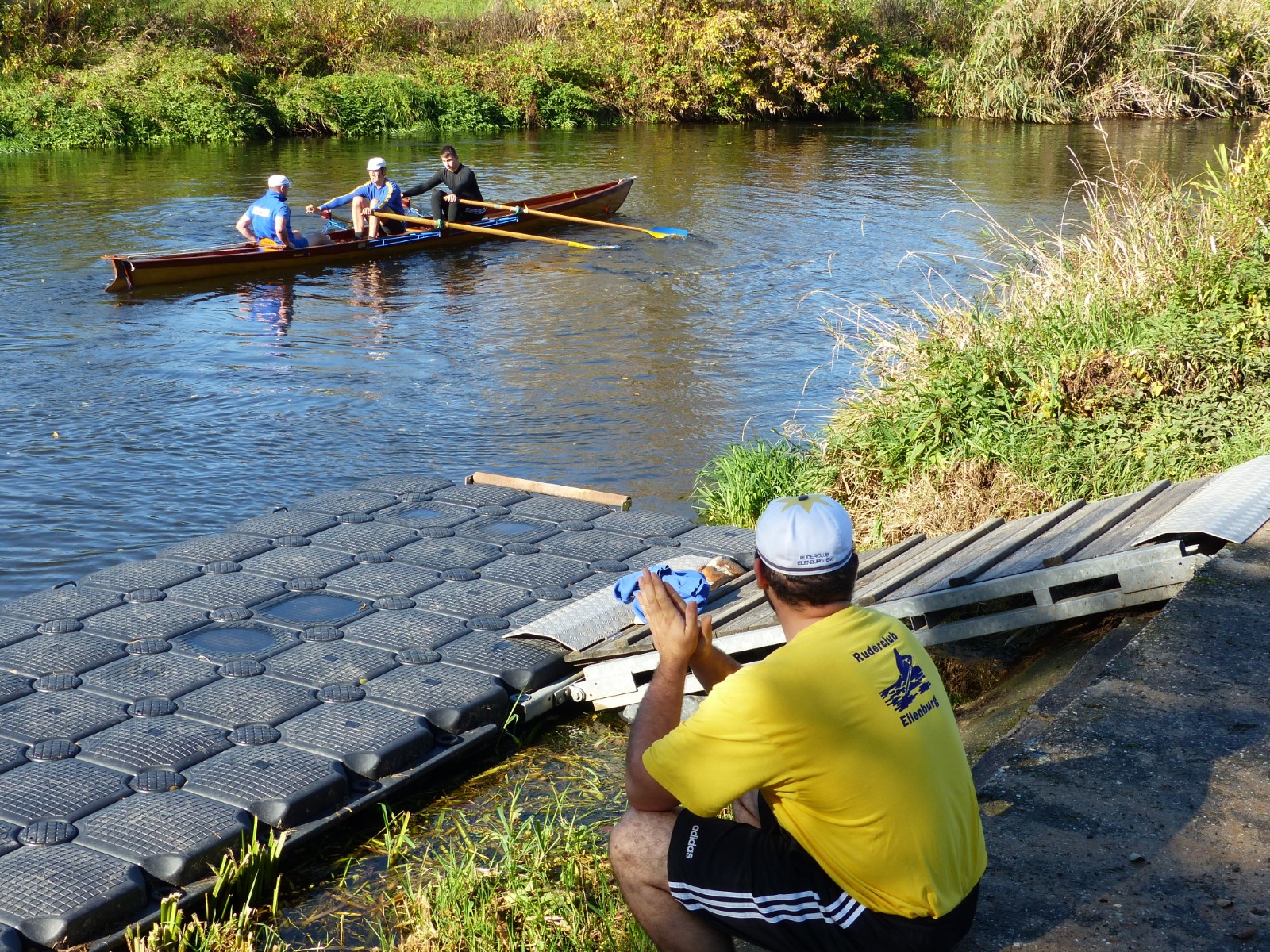 Noch kurz vorher hatte es einige Wetterkapriolen gegeben. Am jenem Samstag aber präsentierte sich der Oktober mitten in den Herbstferien überraschend mild und heiter. Das Abrudern begann mit einem Novum: Die Gig-Vereinsmeisterschaft wurde wegen der Teilnehmerzahl im Doppelzweier ausgetragen. Schön, dass sich neben Alt und Jung und auch Ruderinnen dieser Herausforderung stellten. Der Sportwart übernahm das Steuern aller Mannschaften. Das Rennergebnis blieb spannenderweise bis zur Ansprache des Vorsitzenden geheim. Nach einem kurzen Resümee zur Saison und dem Ausblick auf nächste Termine im Winterhalbjahr würdigte man die Erfolge des Bundeswettbewerbes und der Landesmeisterschaft. Zum Clubmeister im Gig-Boot wurden Max Böhme und Rayk Bremme-Jung gekürt. Jüngster (15) und Ältester (51) setzten sich damit gegen Julius Kötter/Max Bauer sowie Helene Weist/Maxi Kröckel durch. Nachdem das geklärt war, konnten endlich „die Boote zu Wasser und die Ruder zur Hand" gehen. Auf zur letzten offiziellen Ausfahrt des Jahres! Alternativ waren Kaffee und Kuchen angesagt, Drahtesel gingen in Startposition. Auf der Mühlgrabenwiese bei Kilometer Zweieinviertel gab es das traditionelle Knäckerchen für die Wurst, diverse Getränke, Gespräche sowie Gitarren- und Gesangseinlagen. Pünktlich zum Sonnenuntergang trudelten die Boote wieder am Steg ein, wo der Abend zwischen Fackelschein, Ausschank und Feuertonne seinen Ausklang nahm. Vielen Dank allen Beteiligten für diesen gelungenen Tag. Nächstes Jahr soll der Abrudertermin wieder am Ferienende liegen, gern auch mit etwas mehr Publikum. RBJ