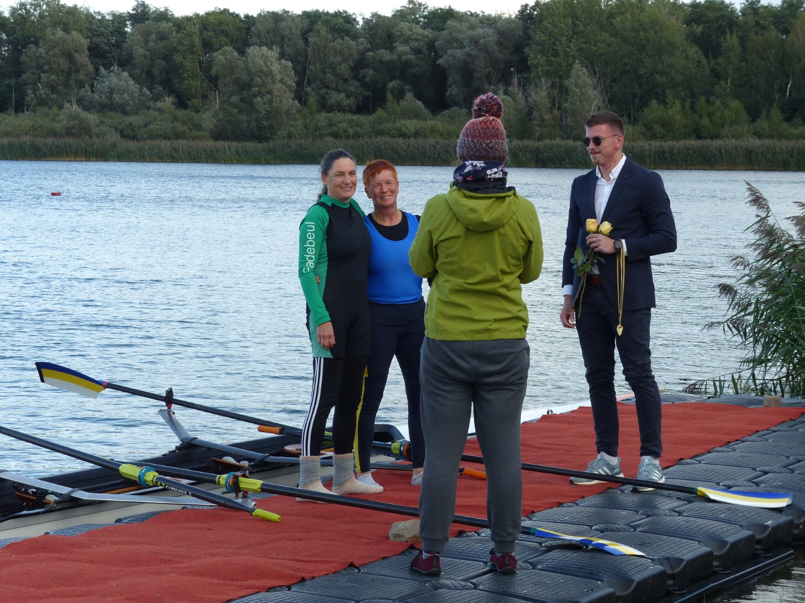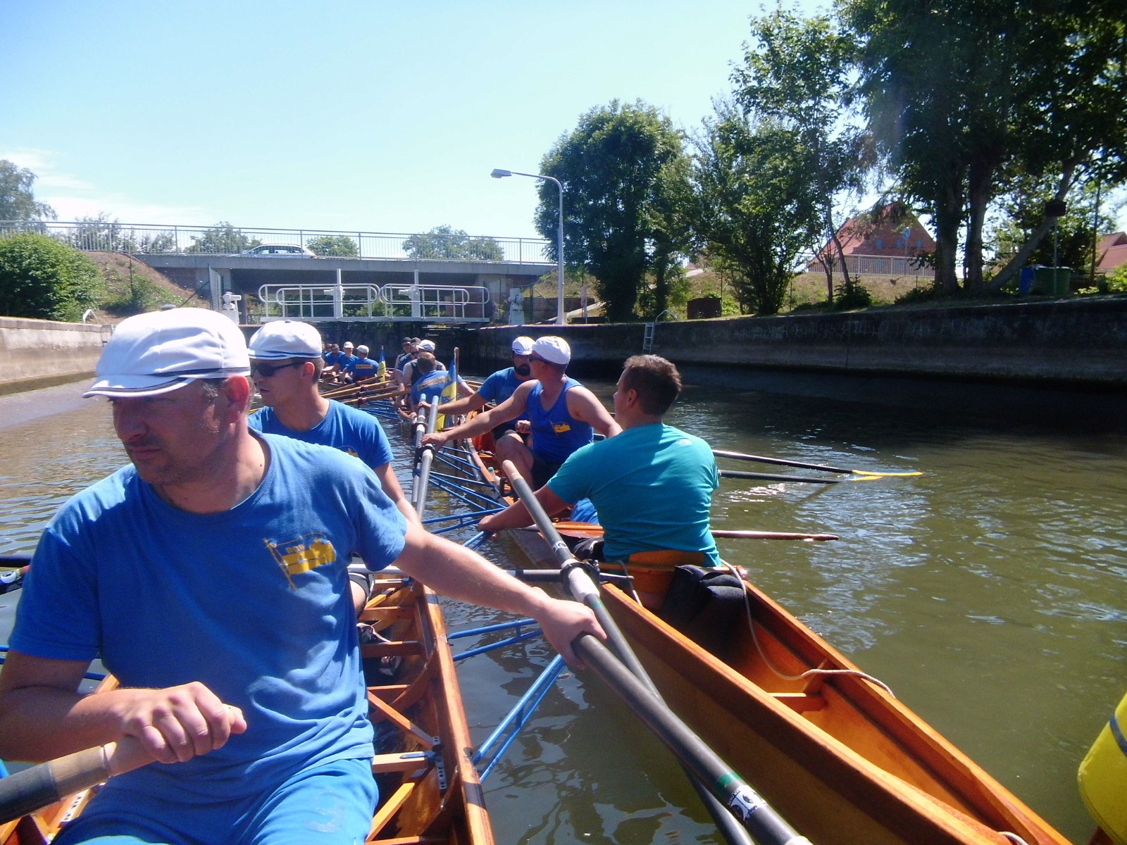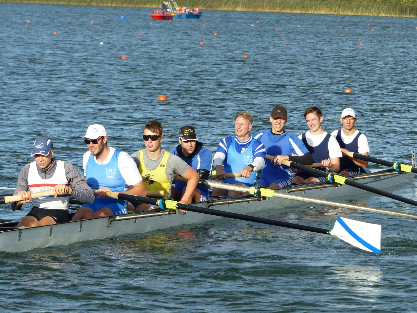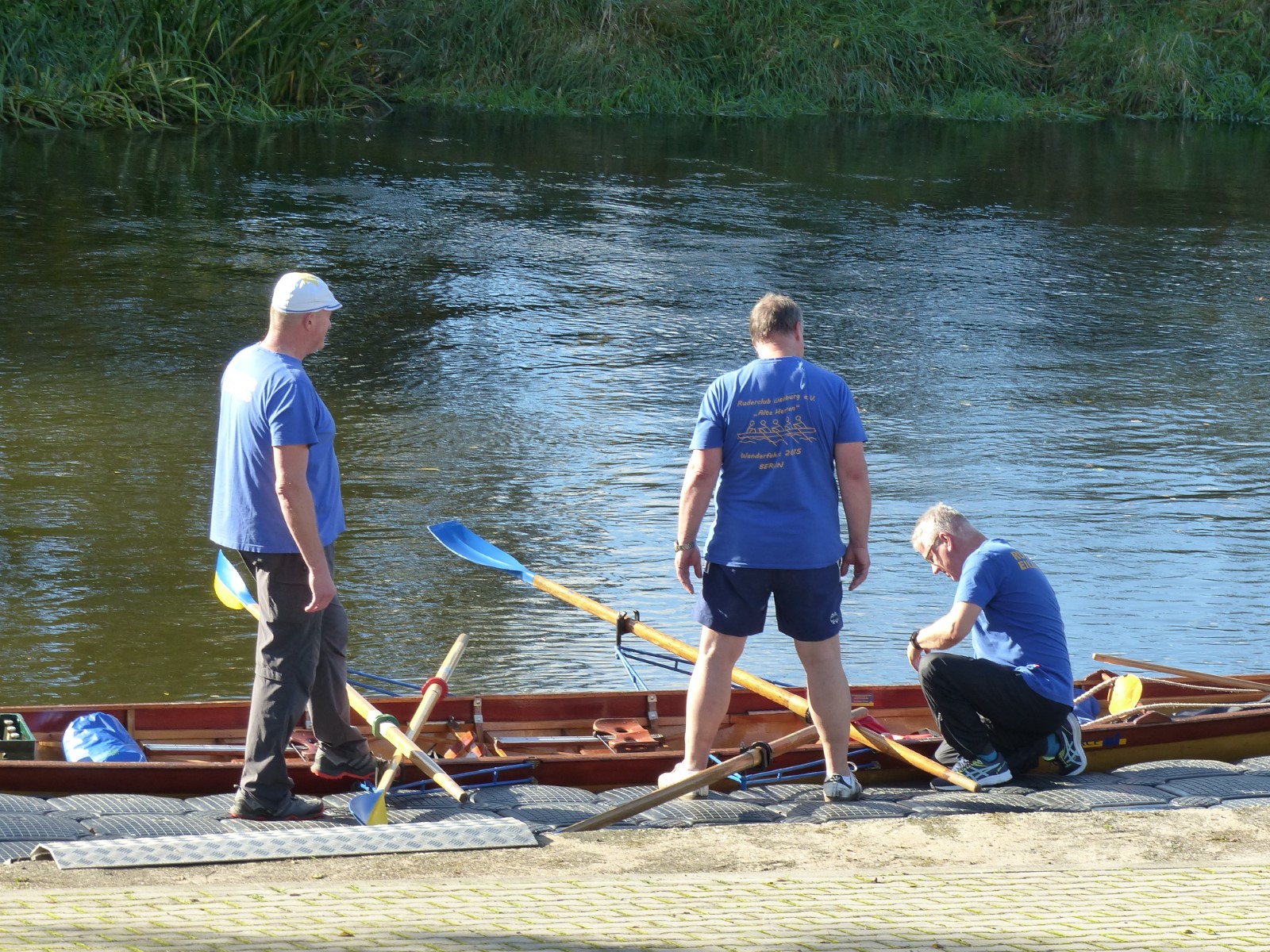 Dieses Sprintrennen war Teil eines Rahmenprogramms für Mastersruderer am Samstagabend, bei dem auch Sportler aus anderen Bundesländern antreten durften. Es waren beeindruckende Bilder, als vollbesetzte Achterrennen auf kurzer Distanz am Ziel anlangten. Schön, dass wir unsere lieben Ruderfreunde aus Berlin-Richtershorn dazu begrüßen durften. Auch wäre ohne sie das 4er-Gig-Rennen nicht zu Stande gekommen.