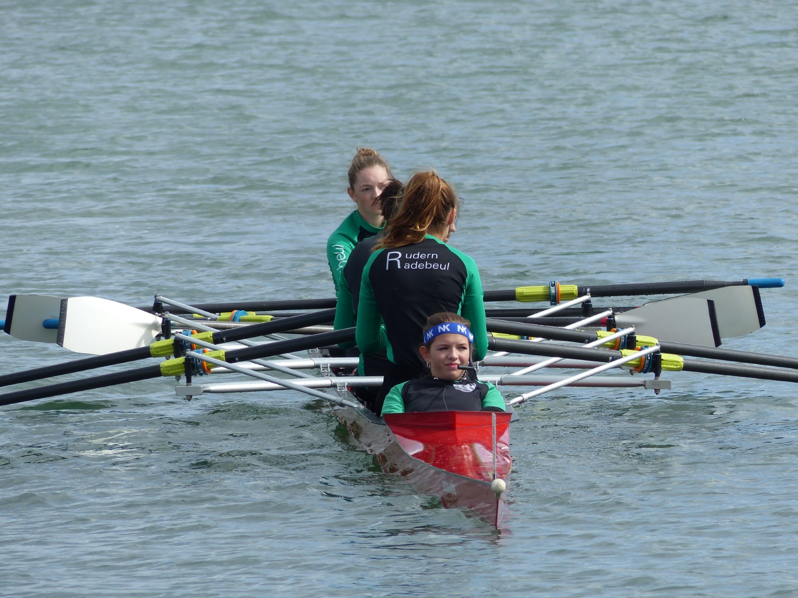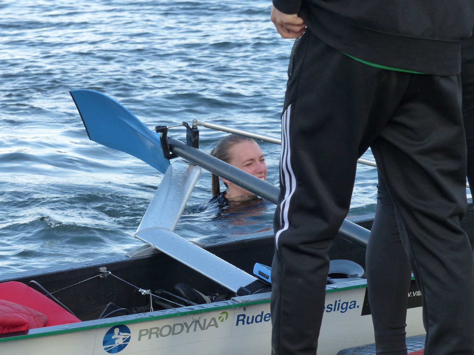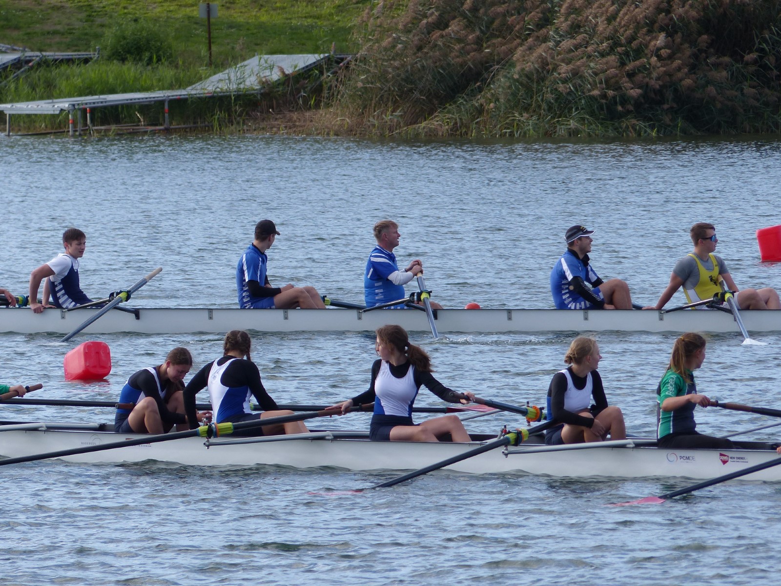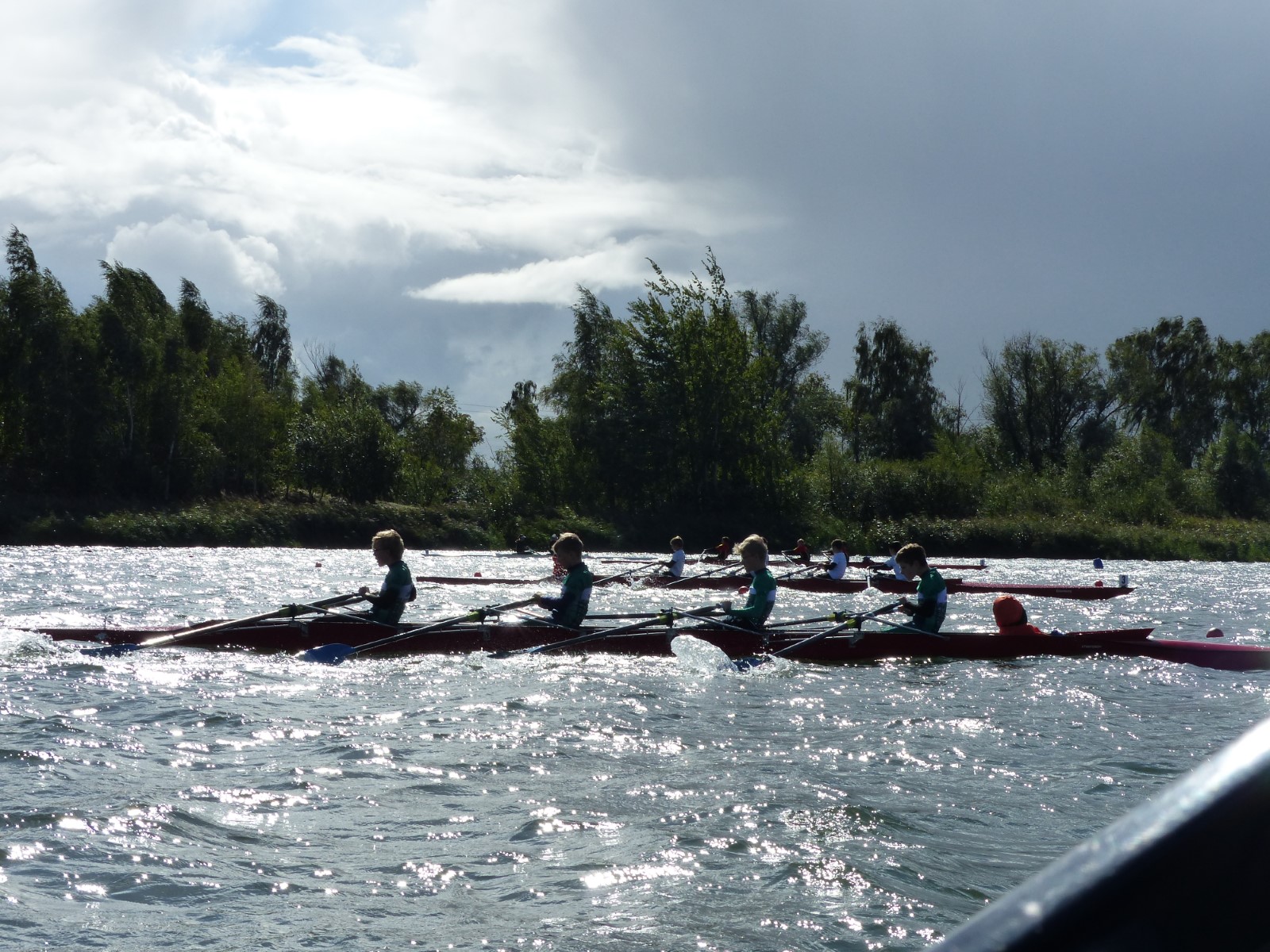 Leon ging im Einer als erstes an den Start und erkämpfte sich den 3. Platz. Das Rennen darauf absolvierte Friedrich im Einer als Dritter. Für die beiden Jungs war diese Regatta eine Prämiere. Eine Stunde später holten sich die B-Juniorinnen Helene und Maxi im Doppelzweier Platz 2. Clemens und Tilmann fuhren im Einer gegeneinander, Clemens siegte, Tilmann ergatterte den 4. Rang. Ben und Colin starteten ebenfalls im Einer gegeneinander, Colin erkämpfte sich ebenfalls den Sieg und Ben den 4. Platz. Zum ersten Mal ging es für Helene, Hannes, Max, Maxi und Steuermann Ole im Mix-Doppelvierer auf das Wasser. Sie ruderten sich auf Platz 3. Einige Rennen später startete der Jungen-Doppelvierer mit Clemens, Ben, Joris, Colin und Ole am Steuer. Dieser holte sich ebenfalls den 3. Platz. Im Junioren B Doppelzweier hatten Max und Hannes einige Schwierigkeiten, denn sie mussten den Start wiederholen. Trotz allem holte der Doppelzweier den 2. Rang. Celine startete ebenfalls zum ersten Mal auf einer Regatta und belegte Platz 4. Im Jungen-Doppelzweier starteten Leon und Friedrich ein Rennen später und durften sich über den 3. Platz freuen. Für Hannes und Max ging es gleich im Anschluss auf das Wasser. Beide starteten im Einer gegeneinander. Hannes ruderte auf den 3. und Max auf den 4. Rang. Ein paar Rennen später, ging es auch für Daya im Einer auf die Strecke, welche sich Platz 2 holte. Im Jungen-Doppelzweier starteten nun Clemens und Colin sowie Timo und Joris. Beide Boote ergatterten Platz 2 in unterschiedlichen Abteilungen. Das darauf folgende Rennen war sehr spannend, denn unsere Trainer Annemarie und Robert starteten im Gig-Doppelzweier. Sie fuhren unter großem Jubel auf dem 2. Platz durchs Ziel. Zum Schluss ging es für Maxi und Helene im Einer auf die Bahn. Trotz mehreren Zusammenstößen in diesem Rennen erkämpfte sich Helene den 2. und Maxi den 3. Rang.