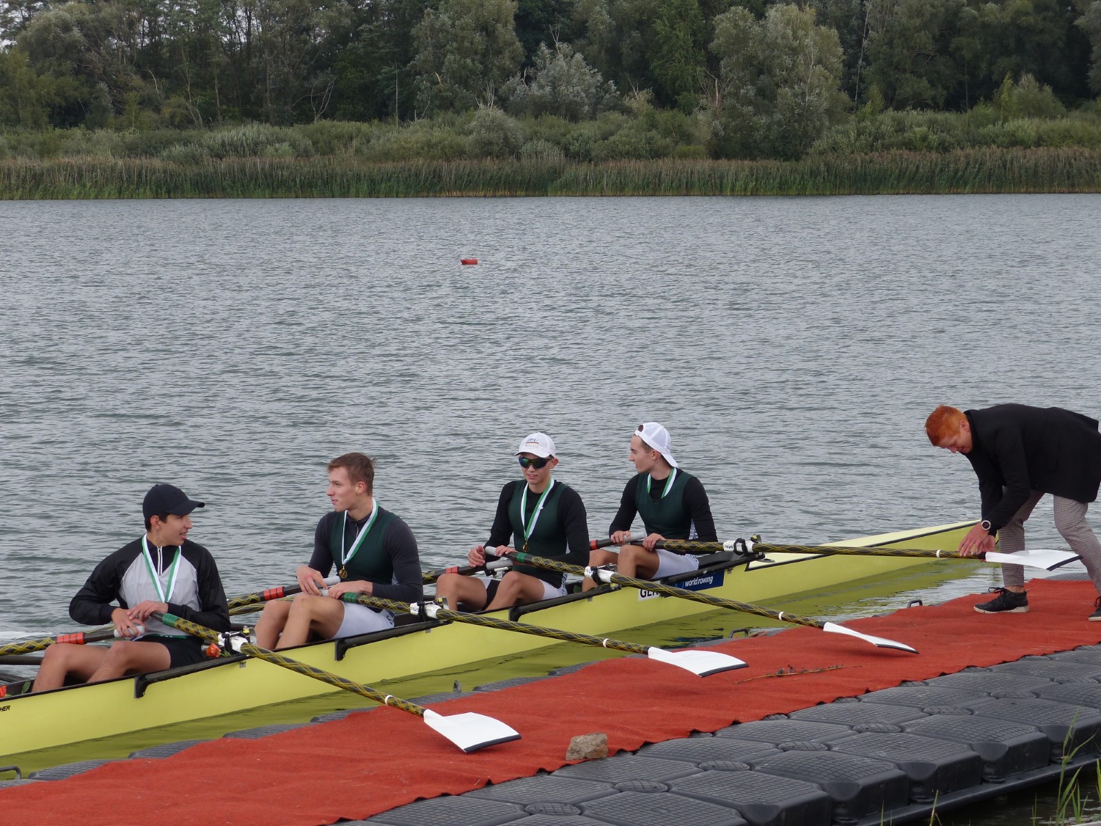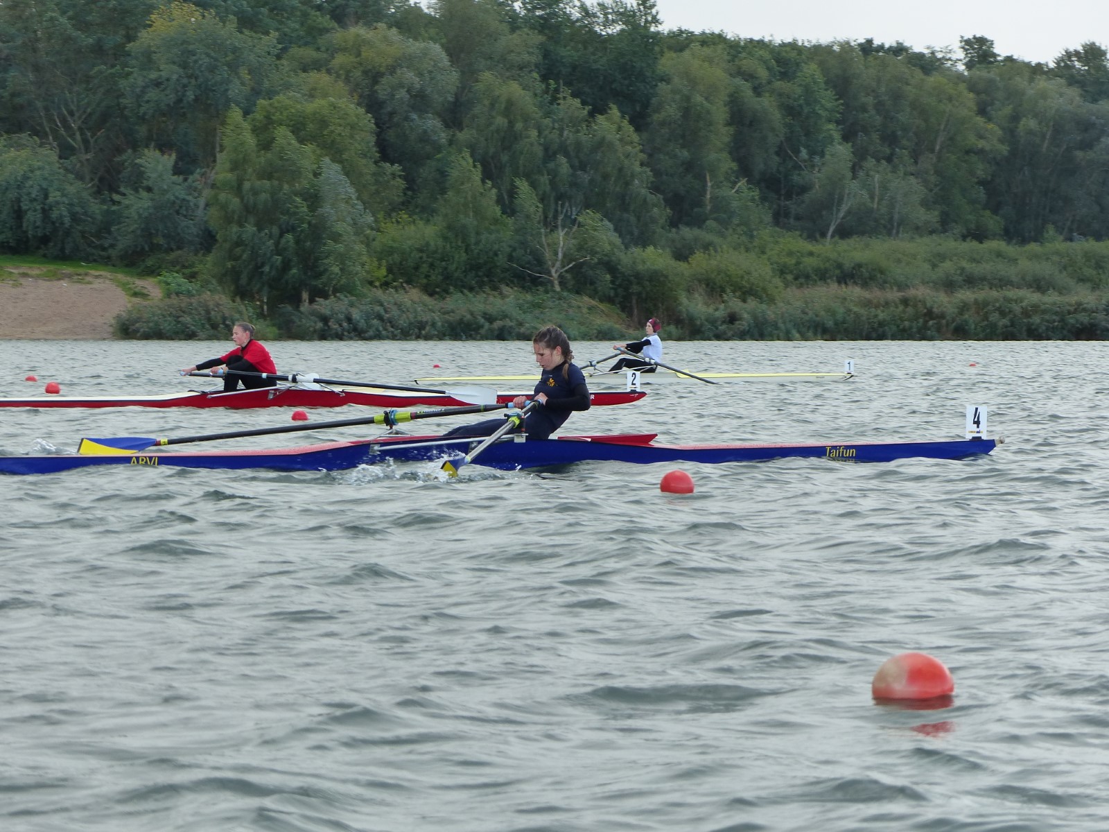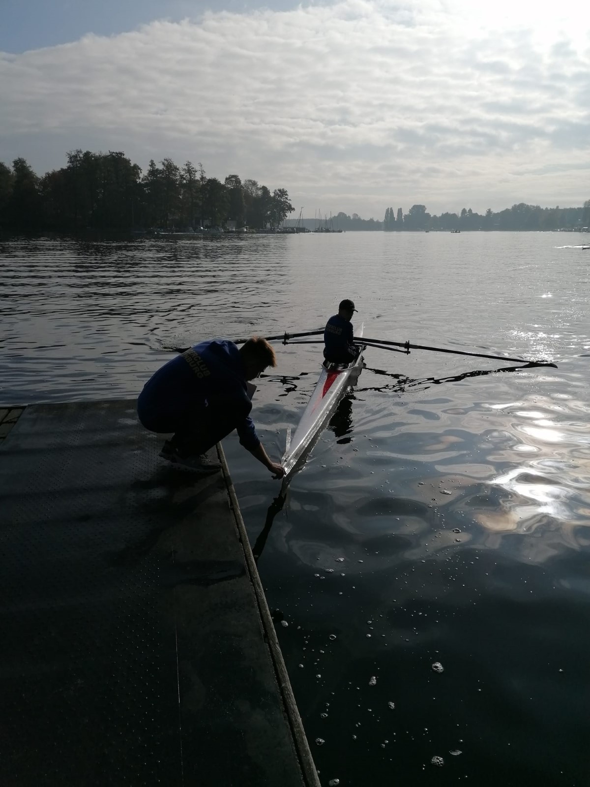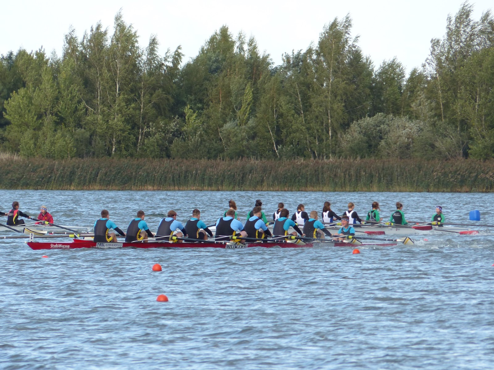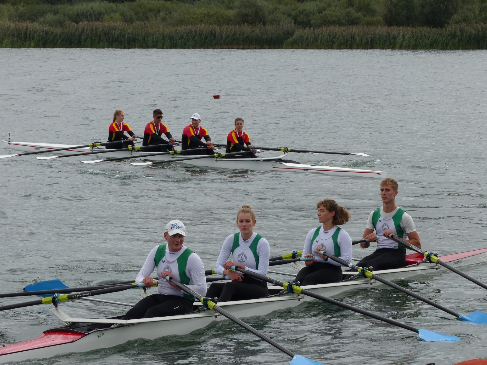 Leon ging im Einer als erstes an den Start und erkämpfte sich den 3. Platz. Das Rennen darauf absolvierte Friedrich im Einer als Dritter. Für die beiden Jungs war diese Regatta eine Prämiere. Eine Stunde später holten sich die B-Juniorinnen Helene und Maxi im Doppelzweier Platz 2. Clemens und Tilmann fuhren im Einer gegeneinander, Clemens siegte, Tilmann ergatterte den 4. Rang. Ben und Colin starteten ebenfalls im Einer gegeneinander, Colin erkämpfte sich ebenfalls den Sieg und Ben den 4. Platz. Zum ersten Mal ging es für Helene, Hannes, Max, Maxi und Steuermann Ole im Mix-Doppelvierer auf das Wasser. Sie ruderten sich auf Platz 3. Einige Rennen später startete der Jungen-Doppelvierer mit Clemens, Ben, Joris, Colin und Ole am Steuer. Dieser holte sich ebenfalls den 3. Platz. Im Junioren B Doppelzweier hatten Max und Hannes einige Schwierigkeiten, denn sie mussten den Start wiederholen. Trotz allem holte der Doppelzweier den 2. Rang. Celine startete ebenfalls zum ersten Mal auf einer Regatta und belegte Platz 4. Im Jungen-Doppelzweier starteten Leon und Friedrich ein Rennen später und durften sich über den 3. Platz freuen. Für Hannes und Max ging es gleich im Anschluss auf das Wasser. Beide starteten im Einer gegeneinander. Hannes ruderte auf den 3. und Max auf den 4. Rang. Ein paar Rennen später, ging es auch für Daya im Einer auf die Strecke, welche sich Platz 2 holte. Im Jungen-Doppelzweier starteten nun Clemens und Colin sowie Timo und Joris. Beide Boote ergatterten Platz 2 in unterschiedlichen Abteilungen. Das darauf folgende Rennen war sehr spannend, denn unsere Trainer Annemarie und Robert starteten im Gig-Doppelzweier. Sie fuhren unter großem Jubel auf dem 2. Platz durchs Ziel. Zum Schluss ging es für Maxi und Helene im Einer auf die Bahn. Trotz mehreren Zusammenstößen in diesem Rennen erkämpfte sich Helene den 2. und Maxi den 3. Rang.