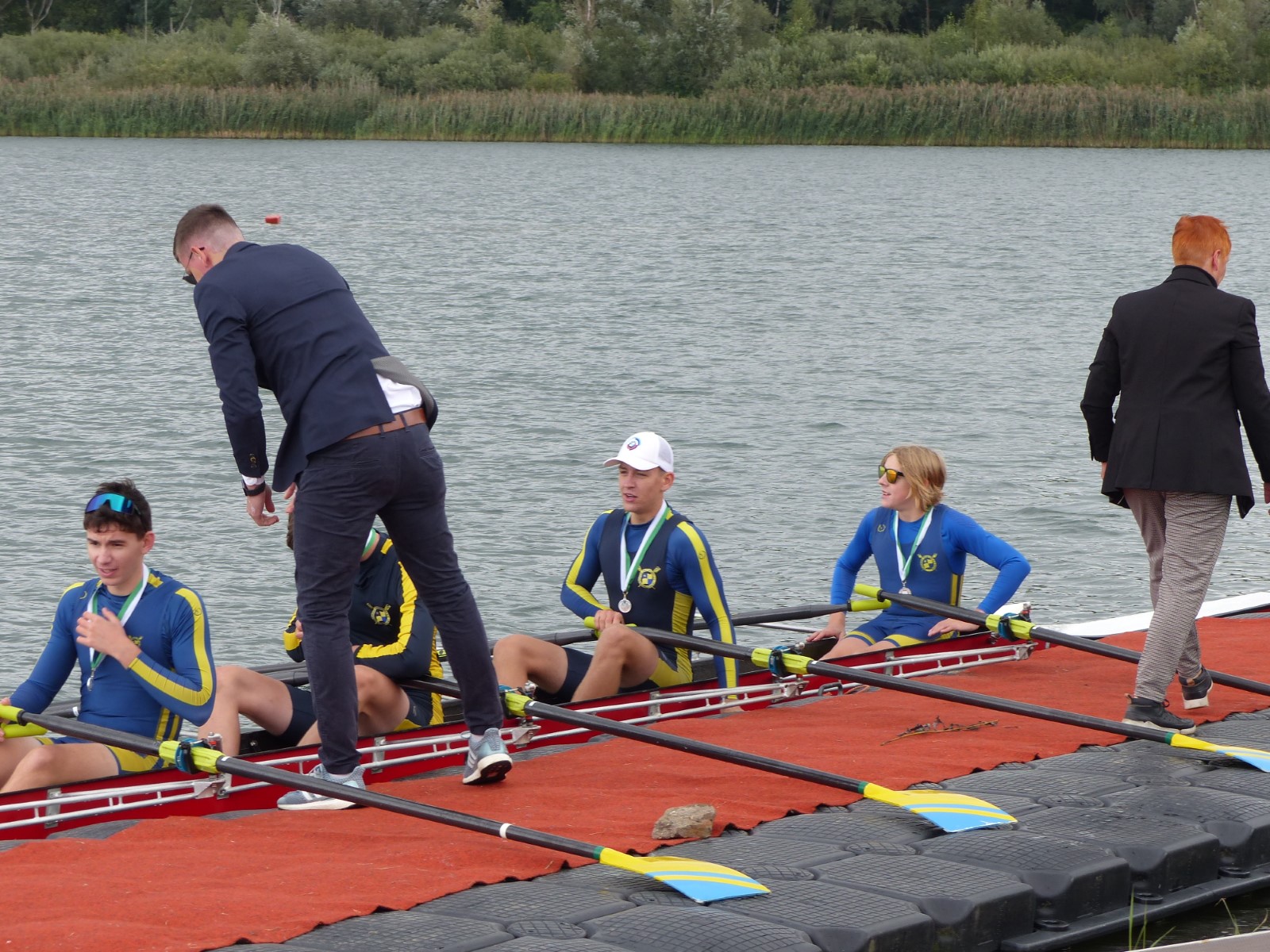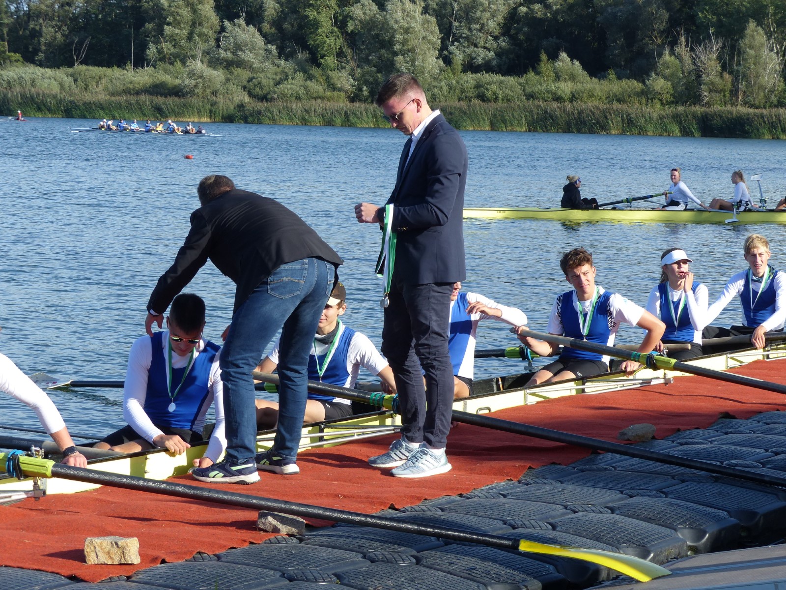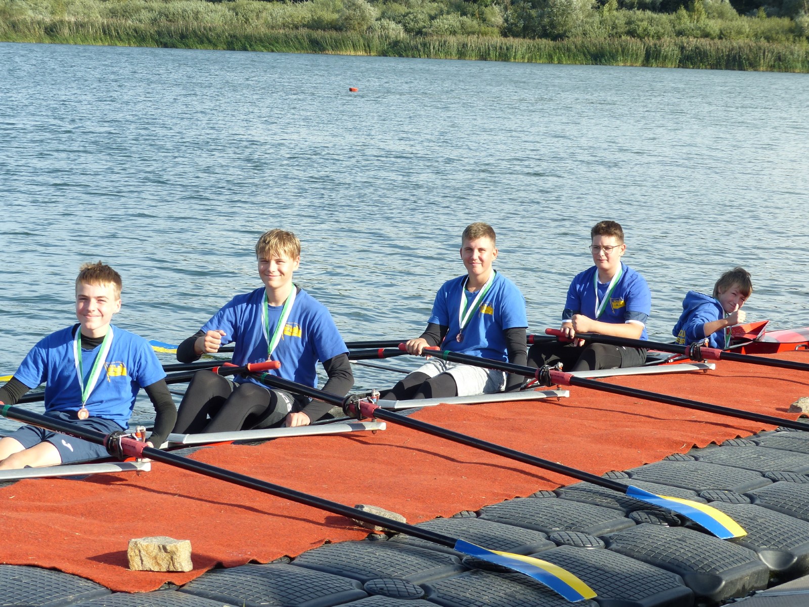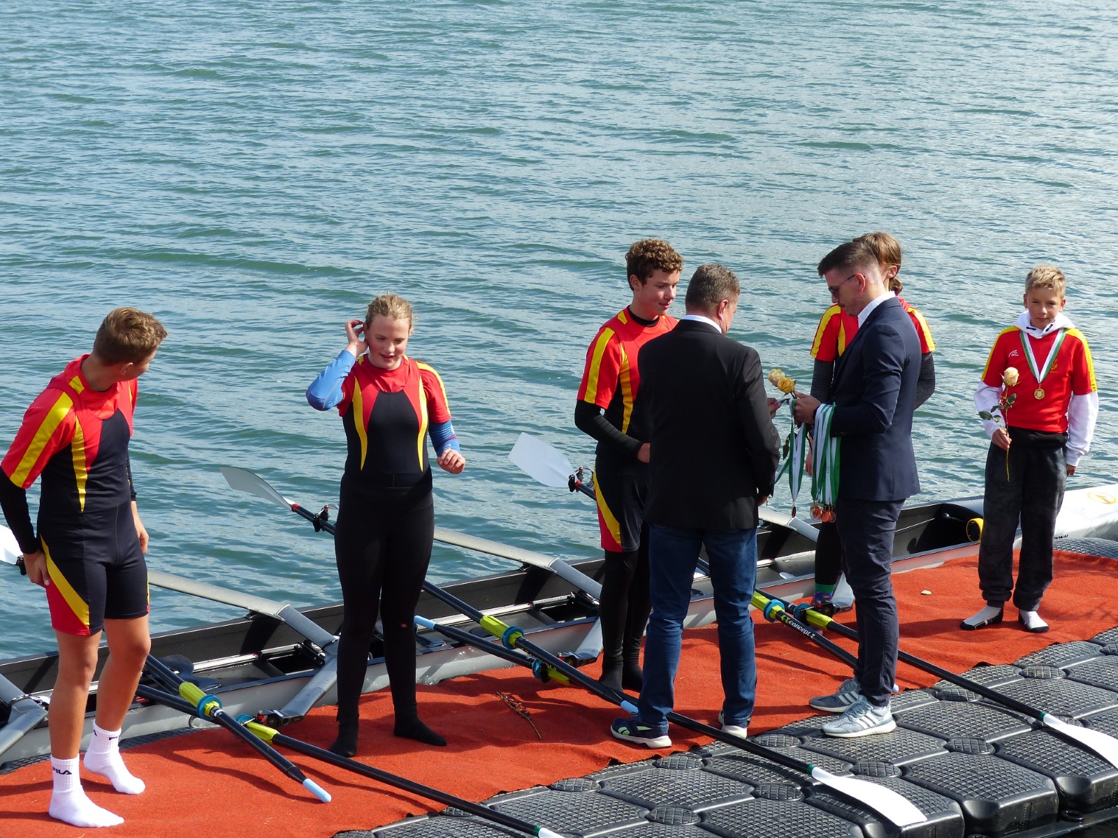 Leon ging im Einer als erstes an den Start und erkämpfte sich den 3. Platz. Das Rennen darauf absolvierte Friedrich im Einer als Dritter. Für die beiden Jungs war diese Regatta eine Prämiere. Eine Stunde später holten sich die B-Juniorinnen Helene und Maxi im Doppelzweier Platz 2. Clemens und Tilmann fuhren im Einer gegeneinander, Clemens siegte, Tilmann ergatterte den 4. Rang. Ben und Colin starteten ebenfalls im Einer gegeneinander, Colin erkämpfte sich ebenfalls den Sieg und Ben den 4. Platz. Zum ersten Mal ging es für Helene, Hannes, Max, Maxi und Steuermann Ole im Mix-Doppelvierer auf das Wasser. Sie ruderten sich auf Platz 3. Einige Rennen später startete der Jungen-Doppelvierer mit Clemens, Ben, Joris, Colin und Ole am Steuer. Dieser holte sich ebenfalls den 3. Platz. Im Junioren B Doppelzweier hatten Max und Hannes einige Schwierigkeiten, denn sie mussten den Start wiederholen. Trotz allem holte der Doppelzweier den 2. Rang. Celine startete ebenfalls zum ersten Mal auf einer Regatta und belegte Platz 4. Im Jungen-Doppelzweier starteten Leon und Friedrich ein Rennen später und durften sich über den 3. Platz freuen. Für Hannes und Max ging es gleich im Anschluss auf das Wasser. Beide starteten im Einer gegeneinander. Hannes ruderte auf den 3. und Max auf den 4. Rang. Ein paar Rennen später, ging es auch für Daya im Einer auf die Strecke, welche sich Platz 2 holte. Im Jungen-Doppelzweier starteten nun Clemens und Colin sowie Timo und Joris. Beide Boote ergatterten Platz 2 in unterschiedlichen Abteilungen. Das darauf folgende Rennen war sehr spannend, denn unsere Trainer Annemarie und Robert starteten im Gig-Doppelzweier. Sie fuhren unter großem Jubel auf dem 2. Platz durchs Ziel. Zum Schluss ging es für Maxi und Helene im Einer auf die Bahn. Trotz mehreren Zusammenstößen in diesem Rennen erkämpfte sich Helene den 2. und Maxi den 3. Rang.