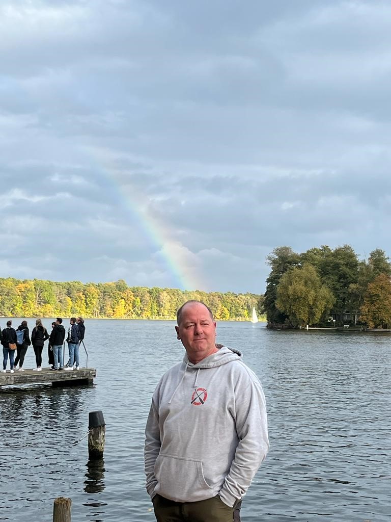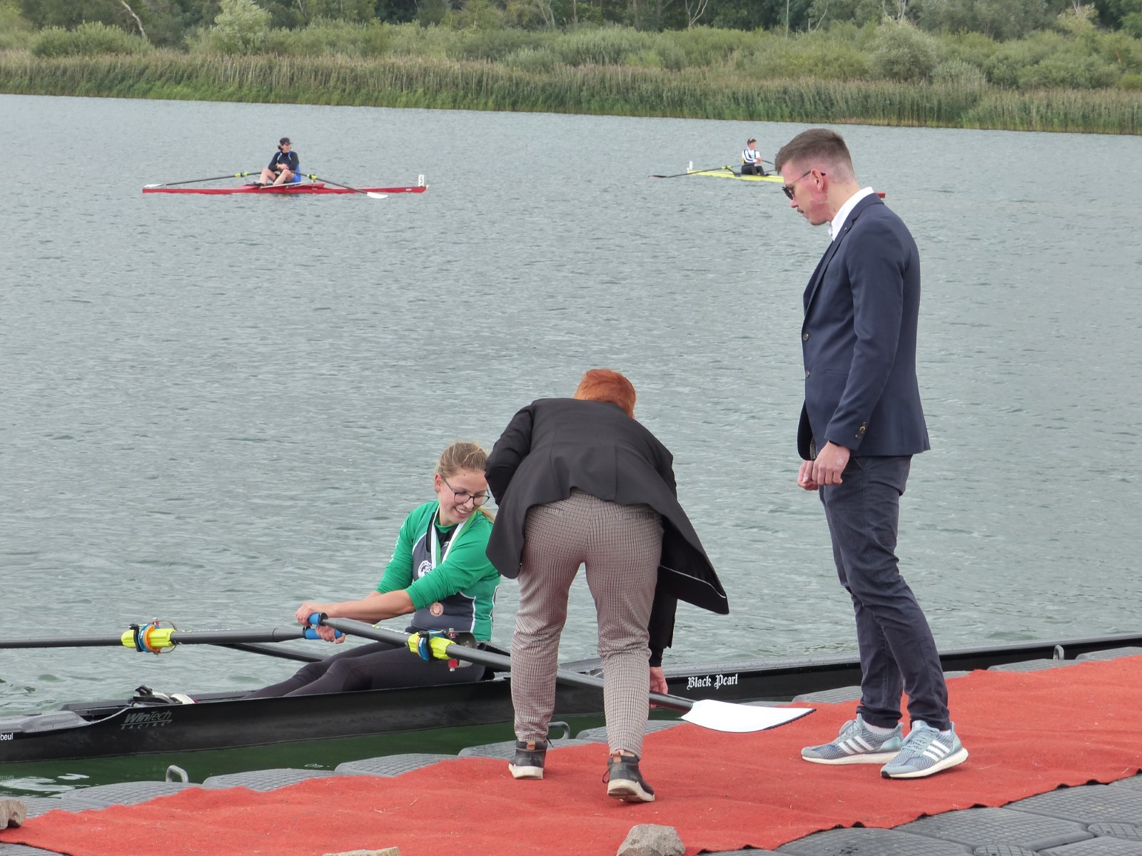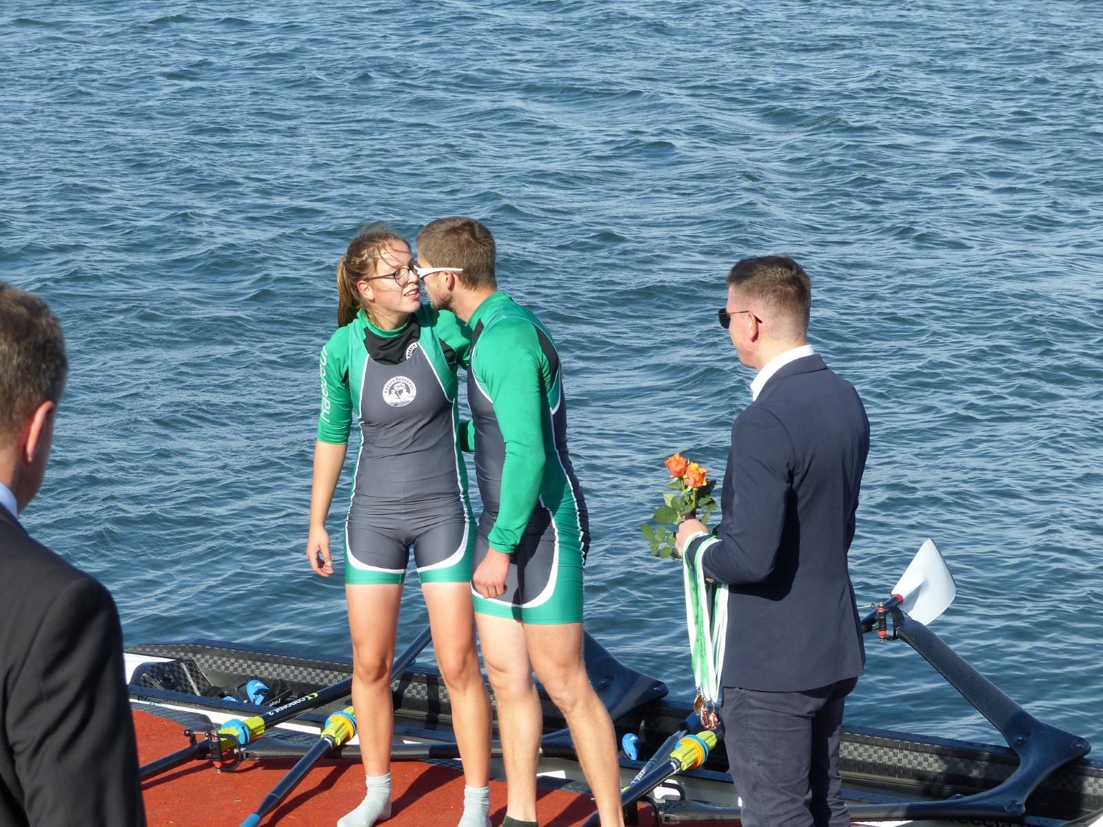 Warten vor dem Siegersteg: Unser Steuermann freut sich schon auf die Bronzemedaille.