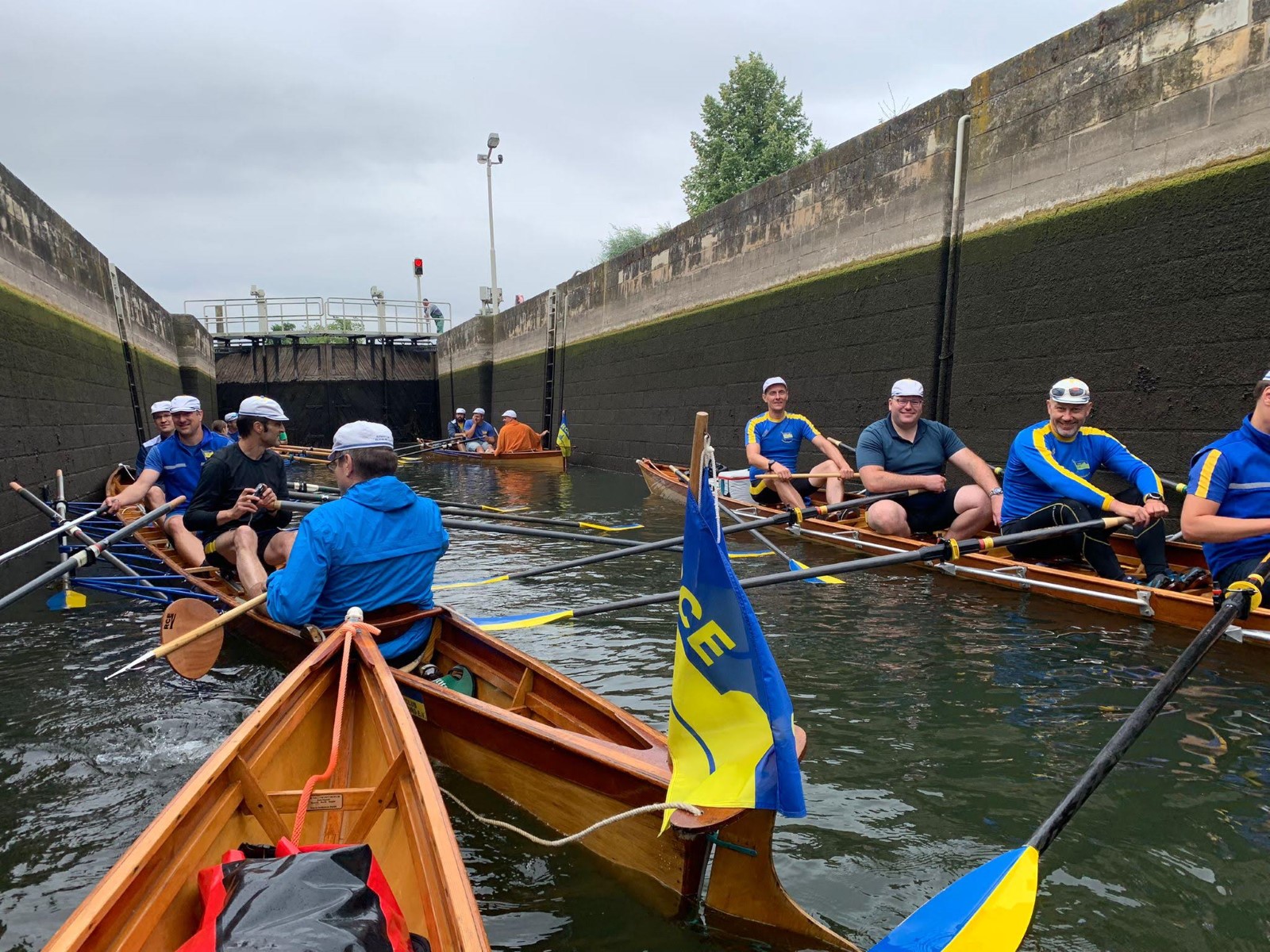 Die Tradition der Eierfahrt wurde in den Nuller Jahren wiederbelebt und hat immer ein spezielles Geschmäckle, das aber nicht nur wegen des Eierlikörs. Nach durchzechter Silvesternacht um 10 Uhr schon wieder auf der Matte zu stehen, ein Boot an der steglosen Mühlgrabenböschung ins Wasser zu bringen, geschmeidig über den einzig möglichen Tritt einzusteigen und sich auf die vorhandenen Ruder- und Steuerplätze zu verteilen...