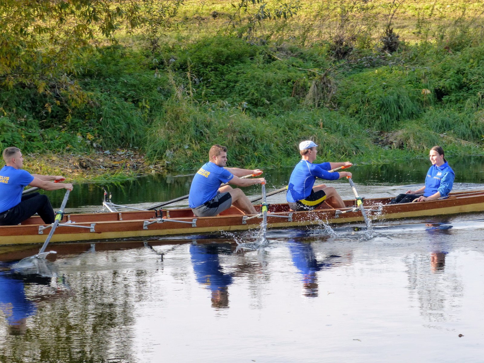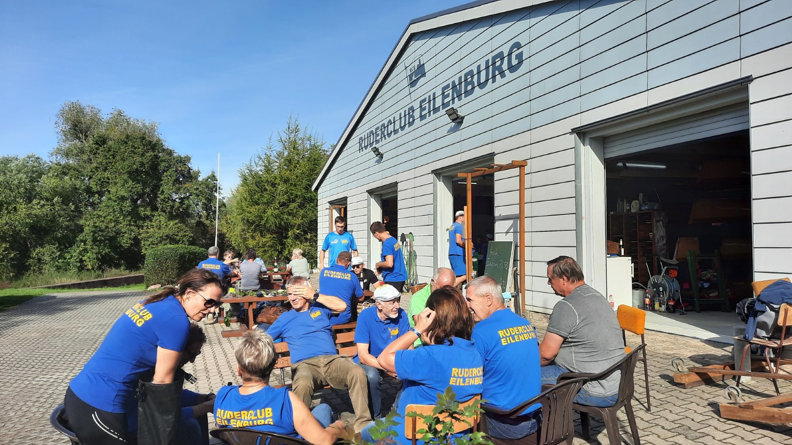 Letztes Jahr war diese schöne Tradition leider ausgefallen. Heuer ging es zum Glück wieder los und zwar am Samstag, den 2.10., gegen 10.30 Uhr. Tilo "und sein Trupp" waren schon bei der Vorbereitung von Bootshalle und Freisitz zu Gange. Derweil machten sich drei vollbesetzte Gig-Vierer auf die (Eisbein-) Fahrt. Sie führte mit kurzen Unterbrechungen bis mind. Kilometer 3 bzw. 4, denn man wollte ja pünktlich um 13 Uhr zurück sein. Bei herrlichstem Wetter wurde auch mal der Ausstieg auf Neuland, linke Mühlgrabenseite im Brennnesselrevier gewagt. Flußabwärts gab es noch eine Ersti-Einführung in das Ruderhandwerk, was hervorragend gelang. So erreichte man den Heimsteg sicher und gesellte sich endlich zur versammelten großen Runde. Das opulente und leckere Mahl wurde ausgiebig genossen. Wer sich entsprechend vorbereitet hatte, konnte noch Tage darauf davon zehren. Vielen Dank an Fleischerei Volker Krause sowie dem Organisator und seinen Helfern. RBJ