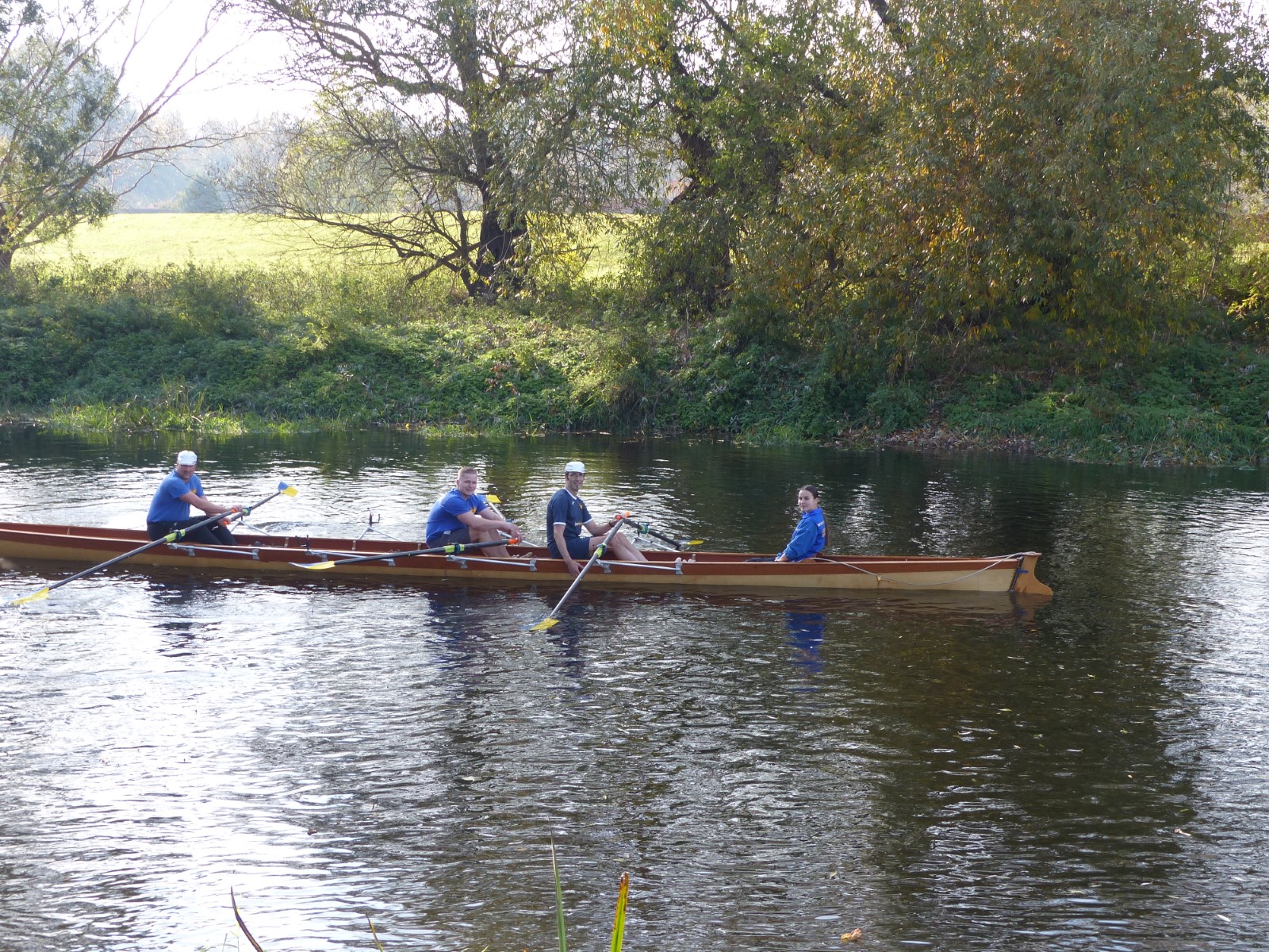 Danach gingen die Boote zu Wasser, die Ruder zur Hand bzw. Kaffee und Kuchen dorthin, wo selbst die fleißige Herbstsonne niemals scheint. Auf der Mühlgrabenwiese versammelten sich Ruderer und Wanderer wie eh und je am Feuerchen zu anregender Konversation mit Würstchen, Bierchen und Gitarre.