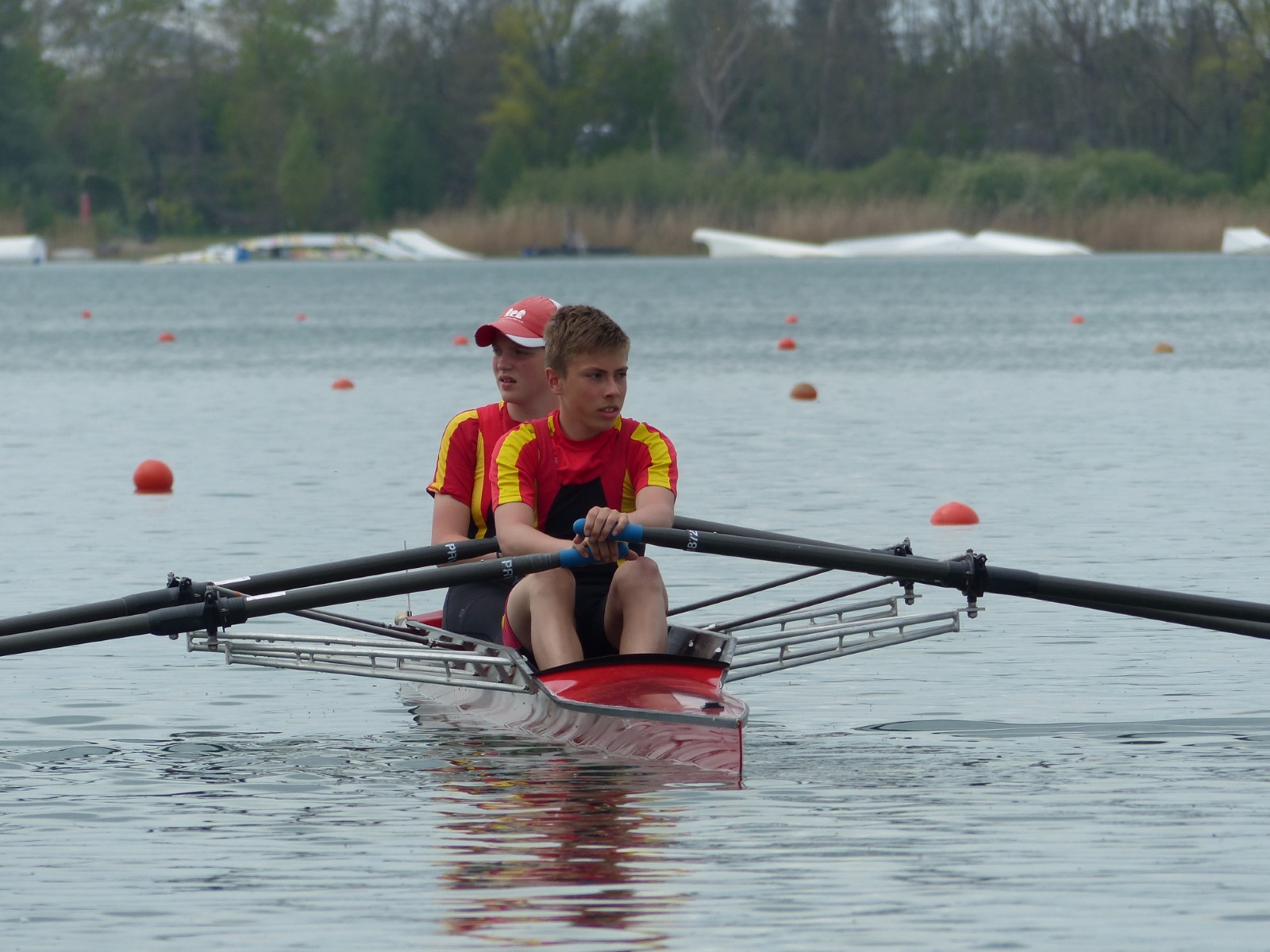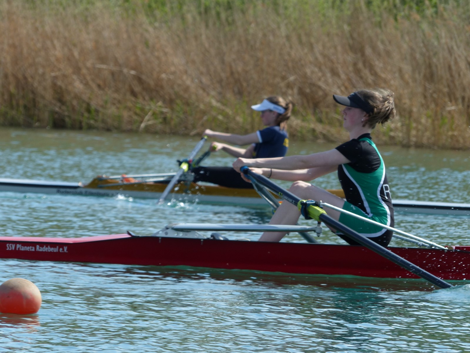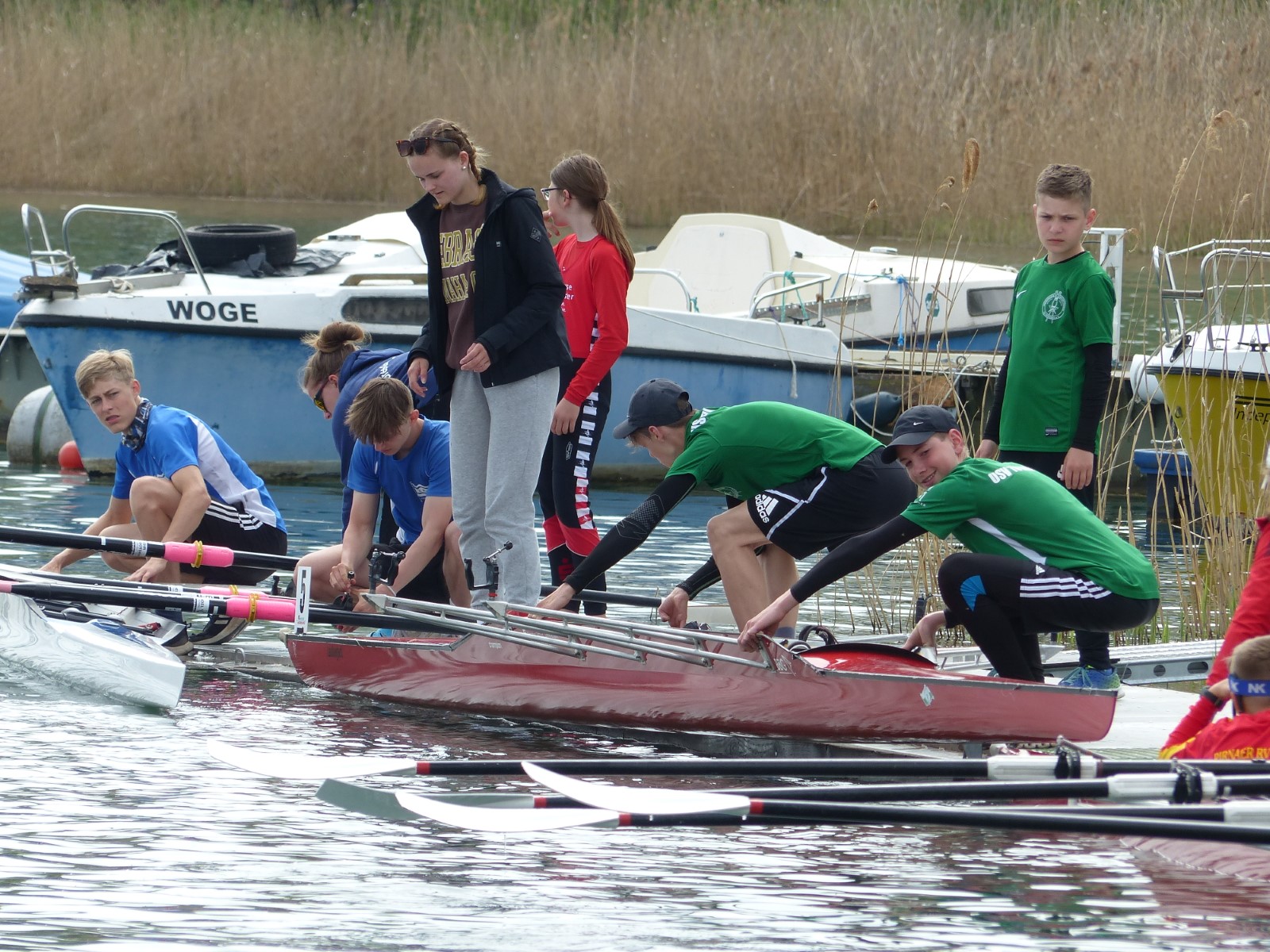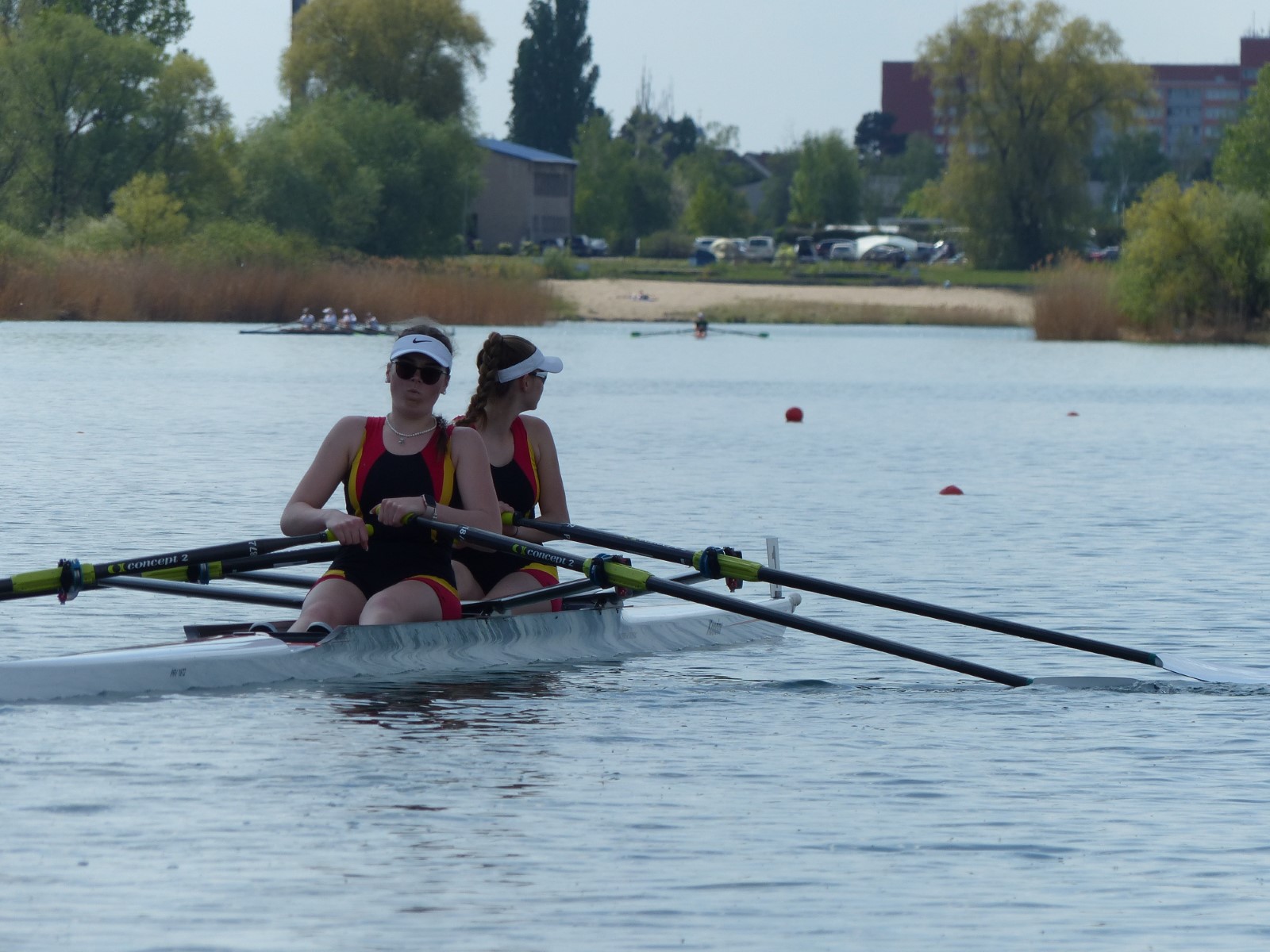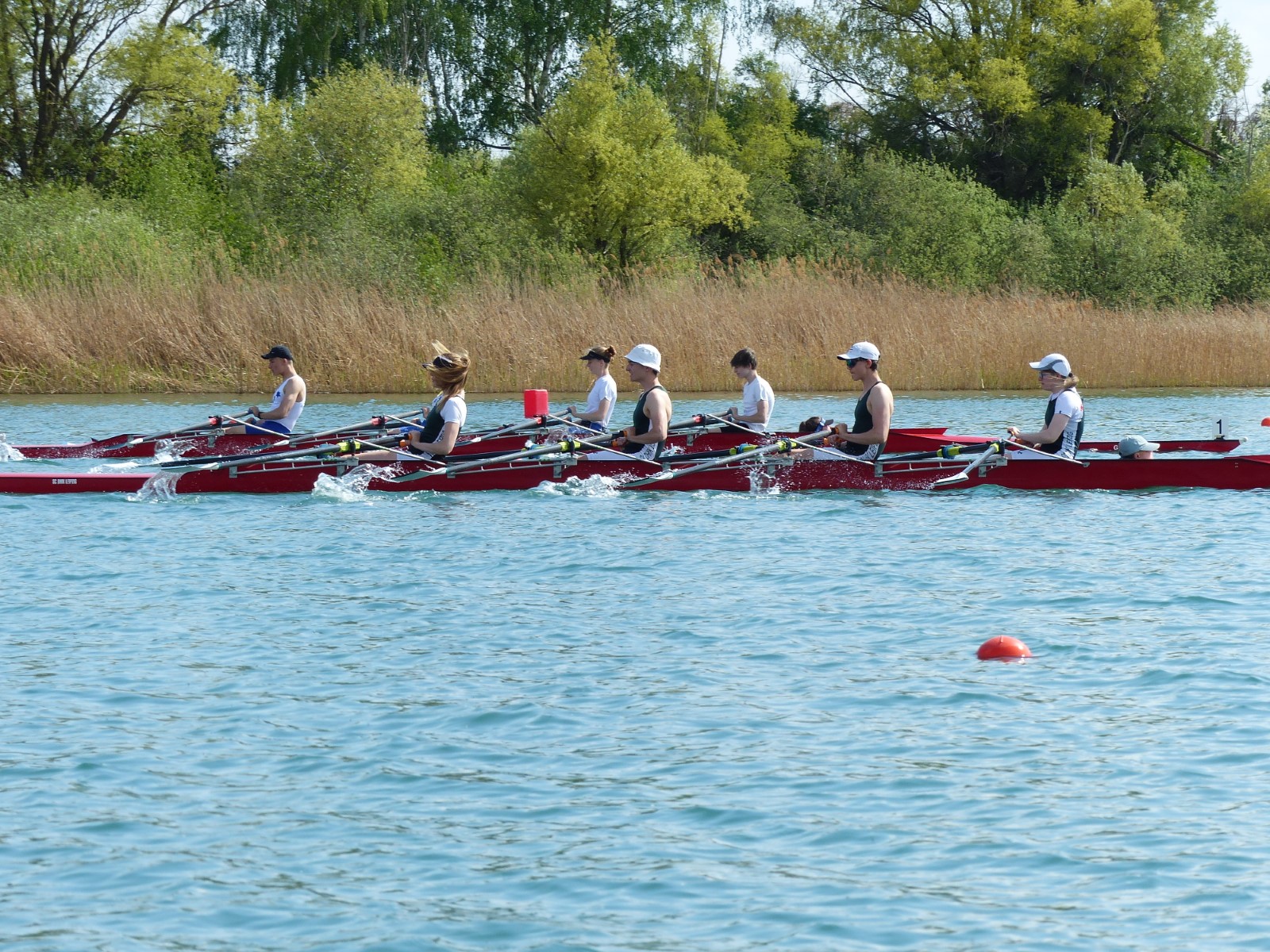 Nach wenigen Monaten Übung im Ruderboot startete Maxi Kröckel (14) ihre Ruderkarriere als B-Juniorin über 1000m im Einer. Sie qualifizierte sich nicht für das Finale, zeigte jedoch eine für die Ausgangslage achtbare Leistung auf der Strecke. Moralische Unterstützung erhielt sie dabei von Kameradin Helene Weist, die einer Verletzung wegen leider nicht antreten konnte.