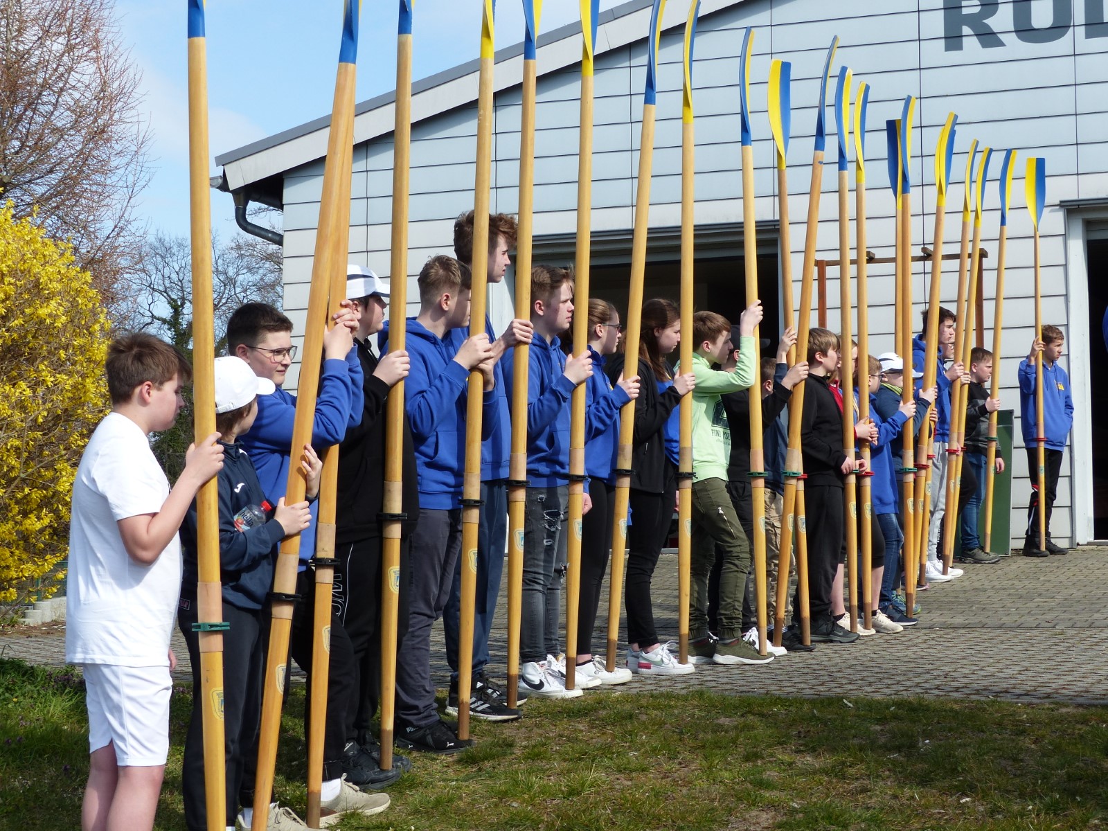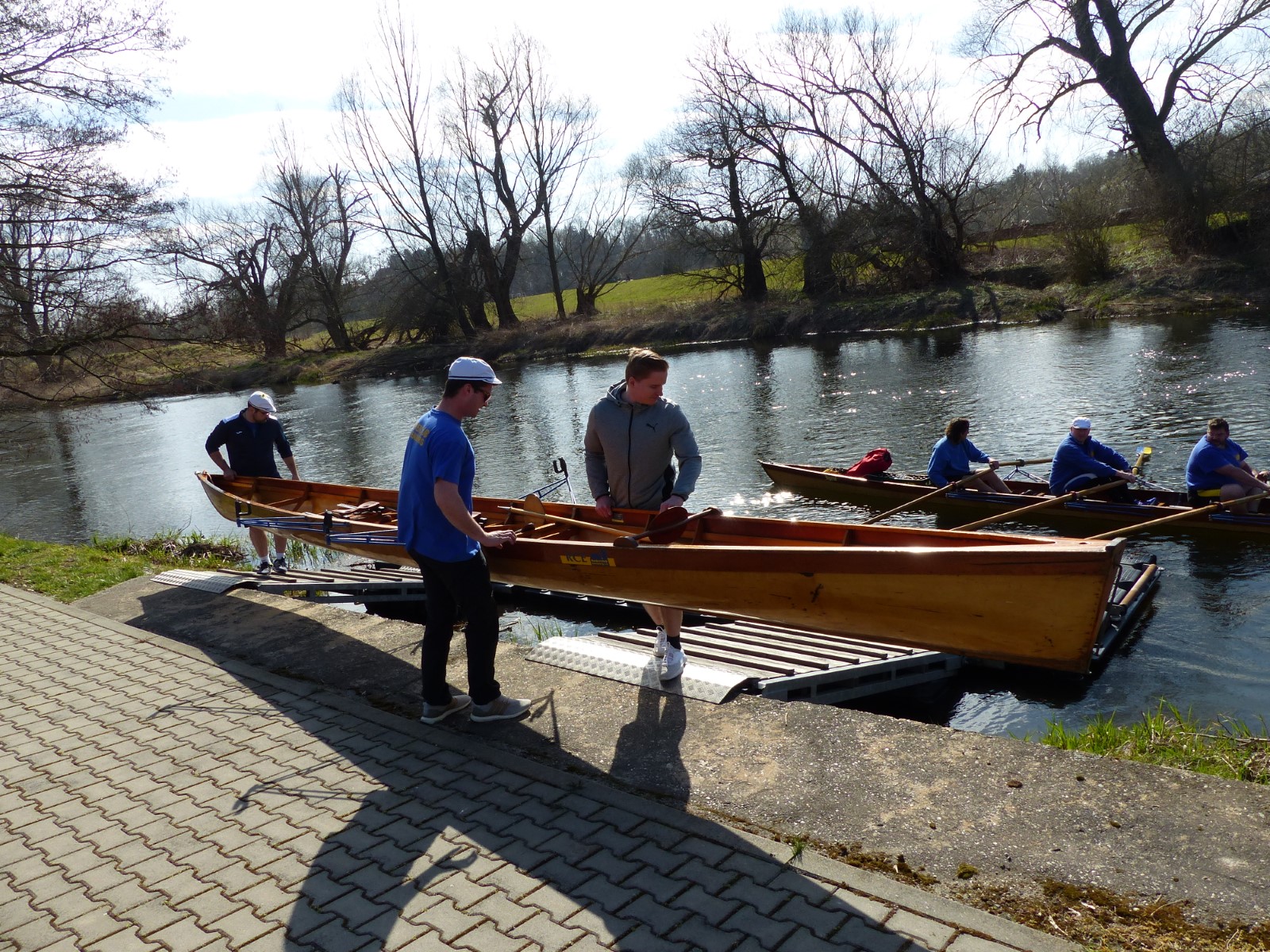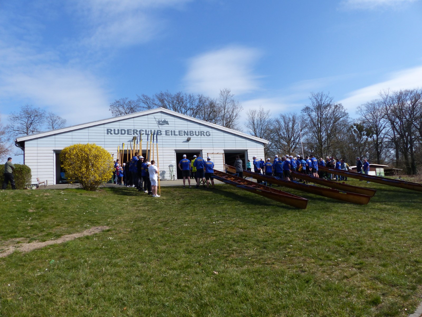 Endlich mal wieder ein pünktliches Anrudern. Nachdem man in den letzten beiden Jahren pandemiebedingt quasi erst kurz vor Sommer starten konnte, durfte es nun ganz traditionell der letzte Märzsamstag sein. Unter heiterem Himmel hatte sich etliches Rudervolk vor der offenen Bootshalle versammelt. Ganz vollständig war man jedoch nicht. Nach Ansprache und Belehrung musste der Vorsitzende Felix unsere neuen Mitglieder in Eigenregie begrüßen. Die Auszeichnung der Ergometermeister übernahm die Veranstaltungswärtin Anne. Stellvertretreterin und Sportwart waren nicht die einzigen, die sich für heute entschuldigen mussten. Allen ganz liebe Genesungswünsche an dieser Stelle. Nichtsdestotrotz gingen wie üblich die "Riemen" zur Hand und Boote zu Wasser. Nebenbei fanden Kaffee und Kuchen begeisterten Zuspruch. Auf der Mühlgrabenwiese ging es mit 4G zünftig weiter: Getränke, Gespräche, Gebrutzeltes und Gesang. Es dauerte bis weit in den Abend hinein, dass sich alle wohlbehalten wieder einfanden. Der gemütliche Ausklang im Saal rundete diesen schönen Tag ab. Vielen Dank denen, die dazu beigetragen haben. Nun kann die Wassersaison kommen. RBJ