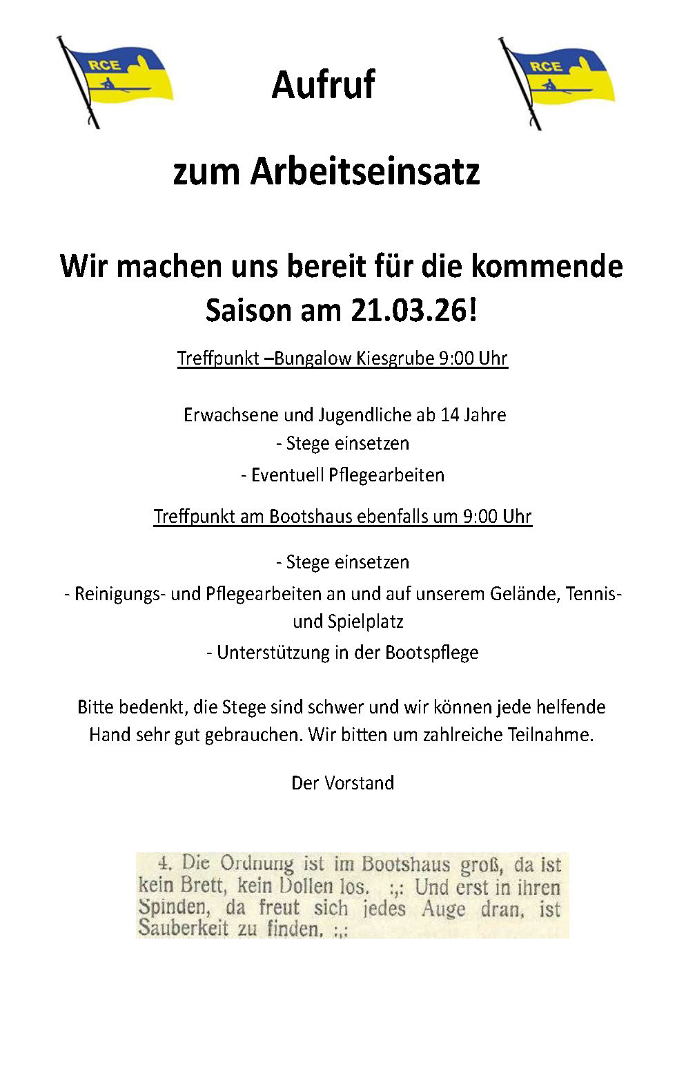 | Schulungstermine im Bootshaus: | Sa.,14.03.2026 + Sa.,11.04.2026 |