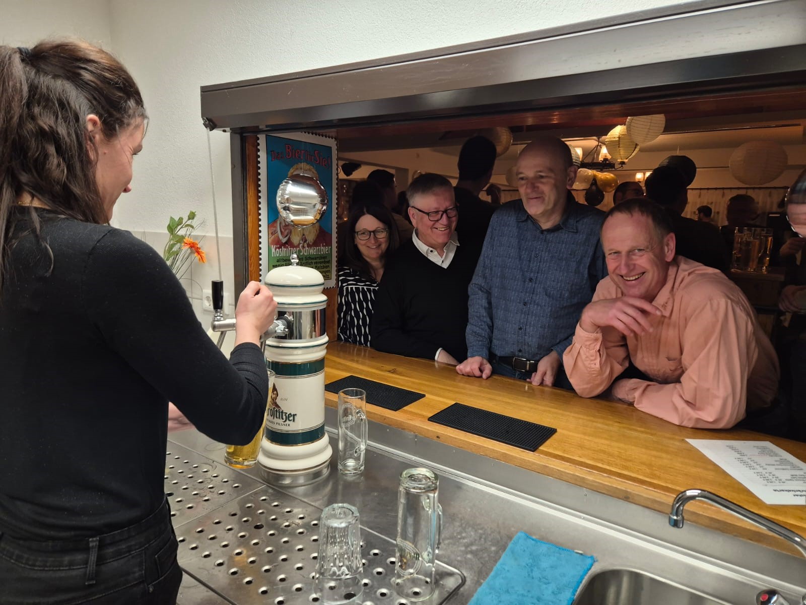 Die Tanzfläche war nicht zu knapp bemessen, denn sie füllte sich nur sehr zögerlich. Rita und Paule beendeten diese Durststrecke mit einem spontanen Line-Dance-Kurs für Jederman und vor allem -Frau. Prinzipiell war die Stimmung sehr gut. Zur nachhaltigen Erbauung und Dokumentation war im Tischtennisraum Mio’s Fotobox samt Requisiten installiert.