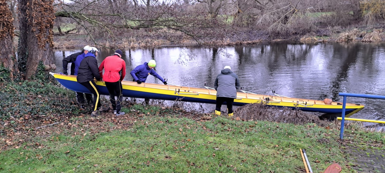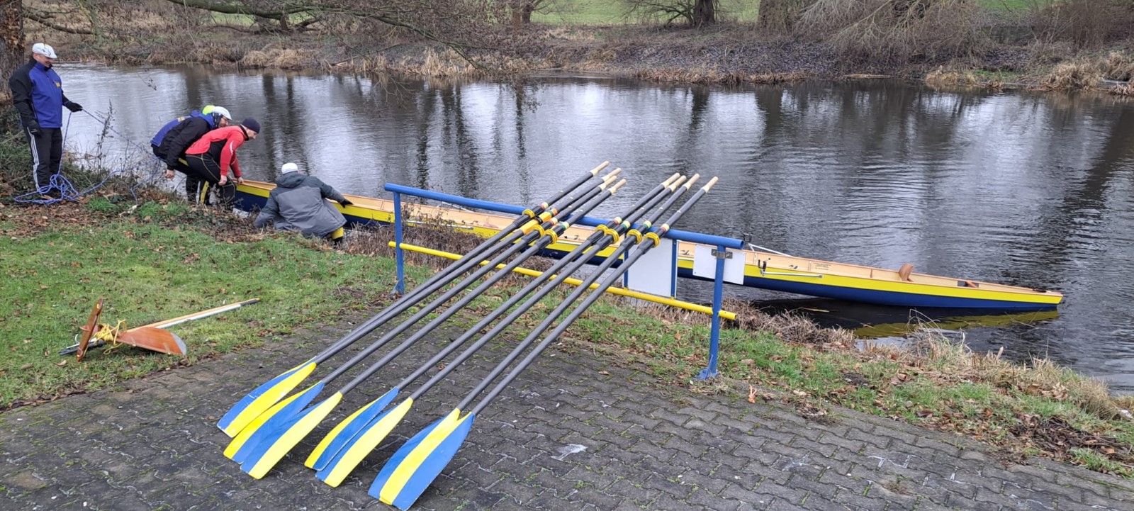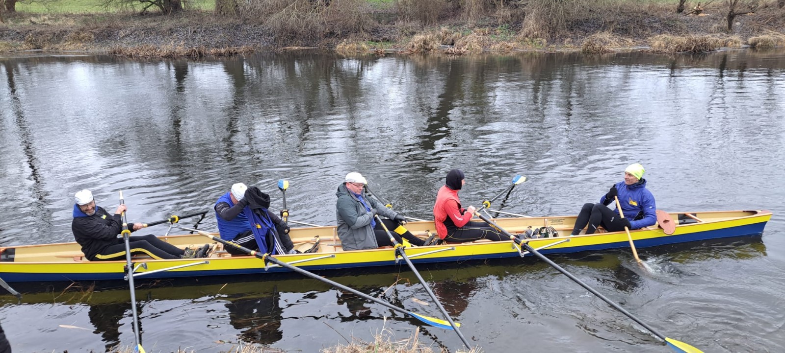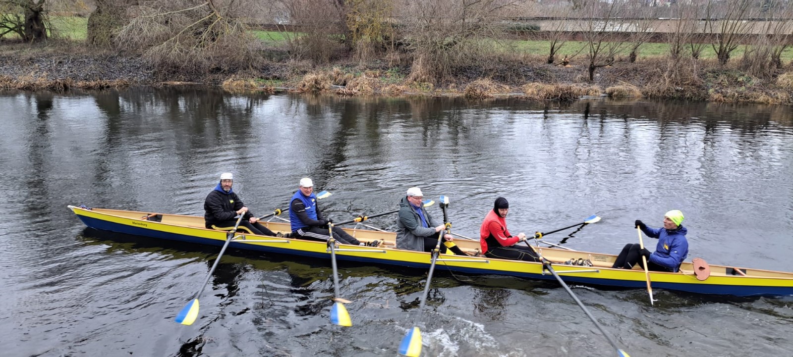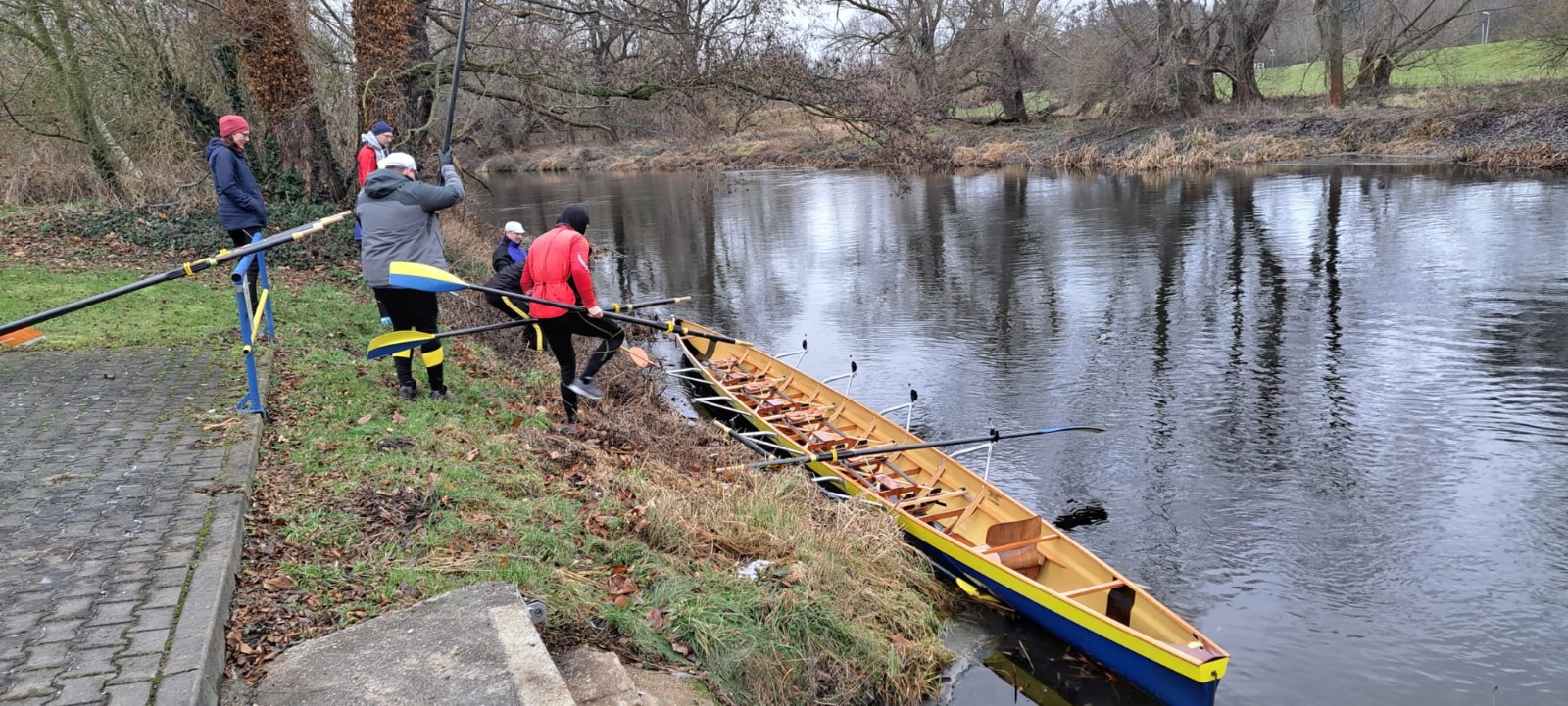 Am Neujahrstag hatten sich gegen 10 Uhr ‚vorschriftsmäßig’ die 'frühesten Vögel' versammelt. Als Tradition ist das Ganze vor einigen Jahren erst nach langer Pause wieder auferstanden. Ursprünglich wurde flussaufaufwärts bis Kollau gerudert, um die ersten Eier des Jahres direkt beim Bauern abzugreifen. Neuzeitlich ist die Eierbeschaffung in jedweder Form nicht mehr das große Thema. Es sind vor allem die ersten Ruderschläge auf dem Mühlgraben. Drumherum noch etwas für Leib und Seele, als da wären: Was zu trinken, was zu essen, was zu besprechen, ein Instrument und eine Liedersammlung zum Singen und bei Bedarf eine Wärmequelle. Das ist auch in diesem Neuen Jahr wieder hervorragend gelungen. Ein Vierer wurde zu Wasser gelassen und hat nach einem Mannschaftswechsel sogar ein zweites Mal die Runde gemacht. Vielen Dank Allen, die dazu beigetragen haben.