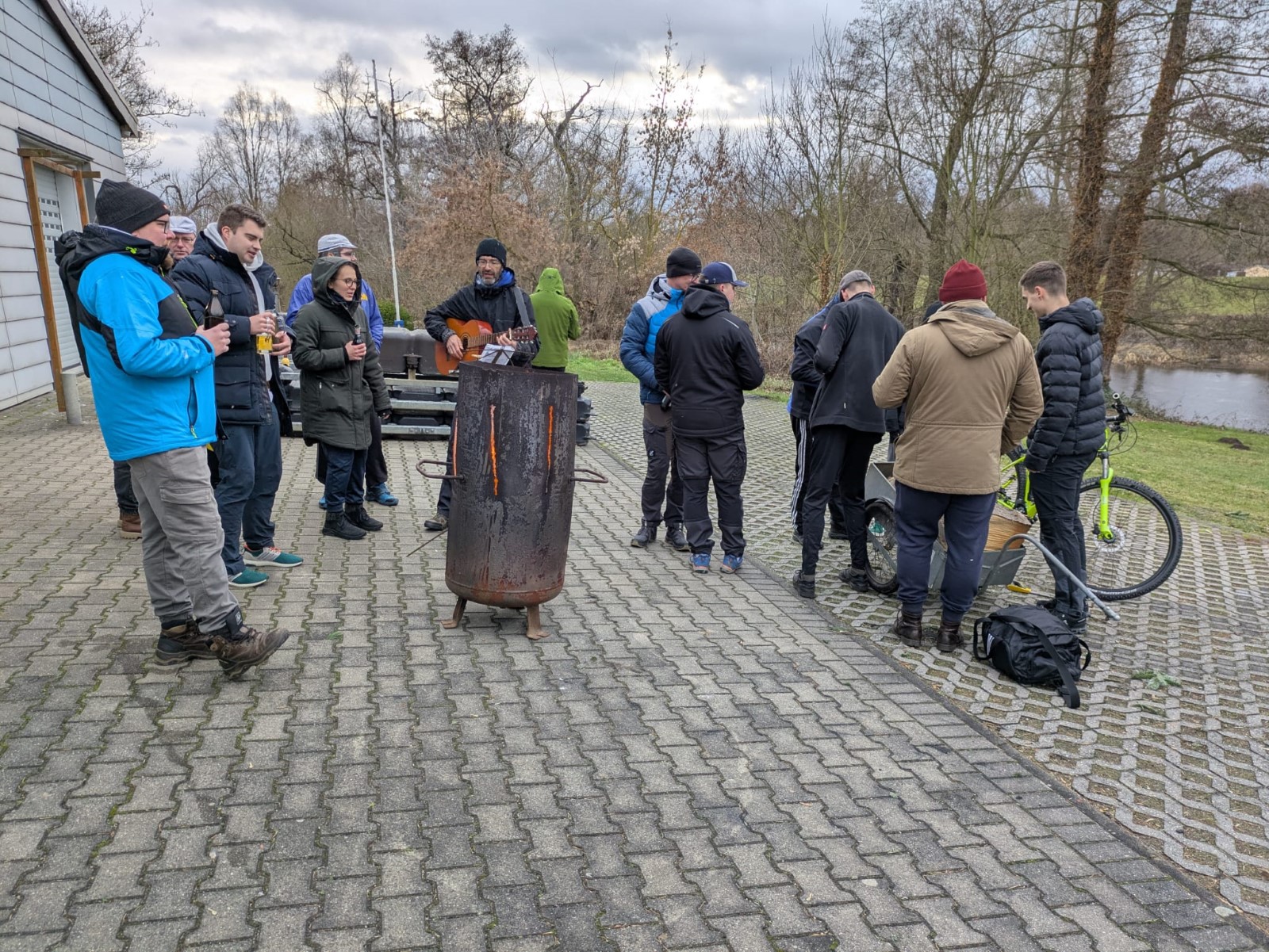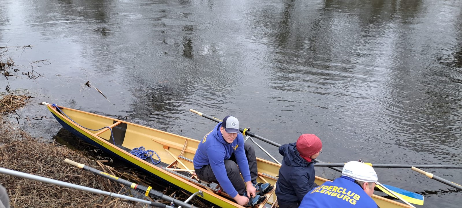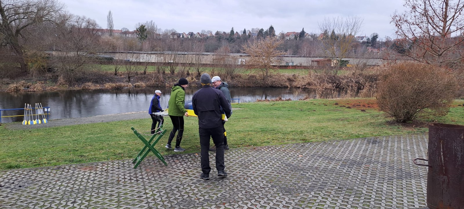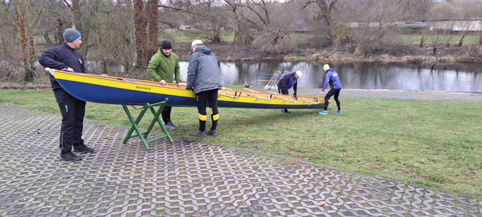 Am Neujahrstag hatten sich gegen 10 Uhr ‚vorschriftsmäßig’ die 'frühesten Vögel' versammelt. Als Tradition ist das Ganze vor einigen Jahren erst nach langer Pause wieder auferstanden. Ursprünglich wurde flussaufaufwärts bis Kollau gerudert, um die ersten Eier des Jahres direkt beim Bauern abzugreifen. Neuzeitlich ist die Eierbeschaffung in jedweder Form nicht mehr das große Thema. Es sind vor allem die ersten Ruderschläge auf dem Mühlgraben. Drumherum noch etwas für Leib und Seele, als da wären: Was zu trinken, was zu essen, was zu besprechen, ein Instrument und eine Liedersammlung zum Singen und bei Bedarf eine Wärmequelle. Das ist auch in diesem Neuen Jahr wieder hervorragend gelungen. Ein Vierer wurde zu Wasser gelassen und hat nach einem Mannschaftswechsel sogar ein zweites Mal die Runde gemacht. Vielen Dank Allen, die dazu beigetragen haben.