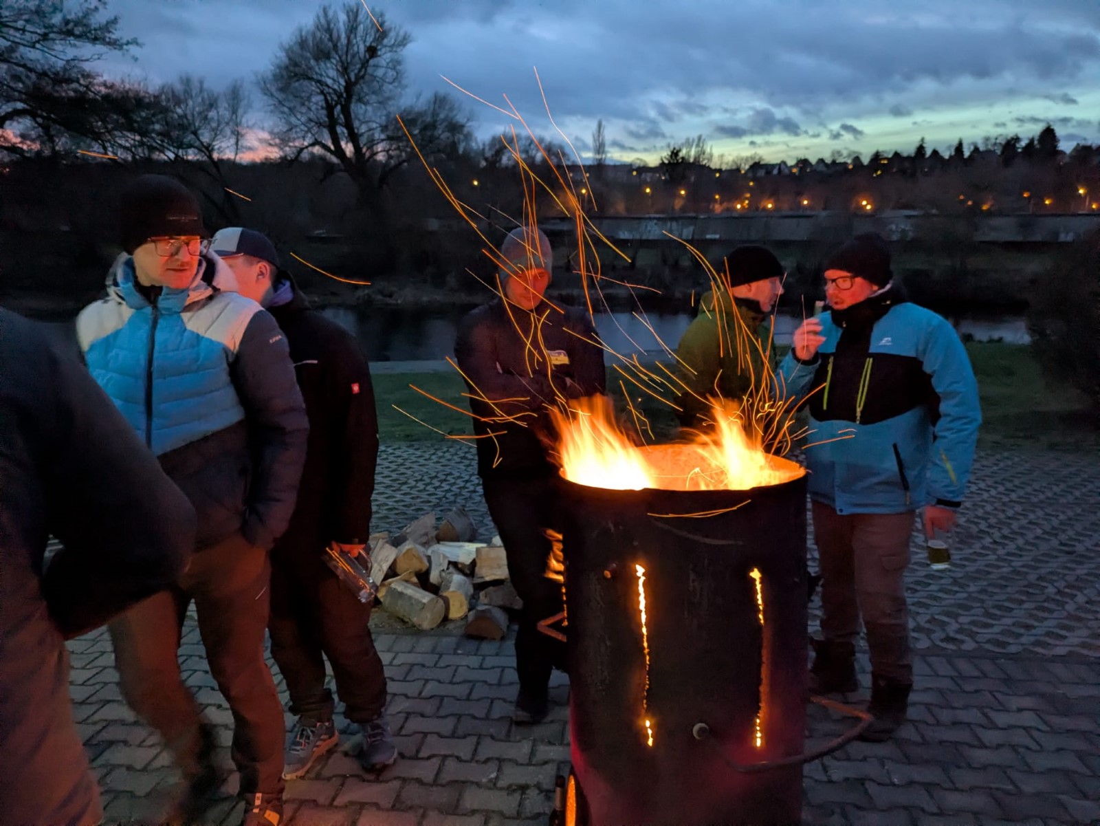Kurz vor Mitternacht stand für Jede(n) ein Gläschen Sekt bereit. Unsere Vorsitzende Silke lud alle zum Anstoßen auf das kommende 120er- RCE- Jubiläumsjahr ein. Aufgrund des Blitzeises war es gar nicht so ungefährlich, den Saal zügig zu verlassen. Das Feuerwerk über der Eilenburger Bergsilhouette war wie immer eindrucksvoll. Auch vor der Bootshalle wurde einiges gezündet. Drinnen jedoch hatte man eine ganz andere Sorge. Aufgrund der Glätte war jemand so heftig gestürzt, dass ein Notarzt gerufen wurde. Nach angemessener Unterbrechung ging die Feier weiter.