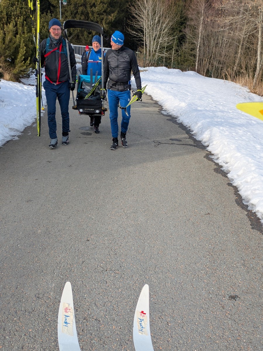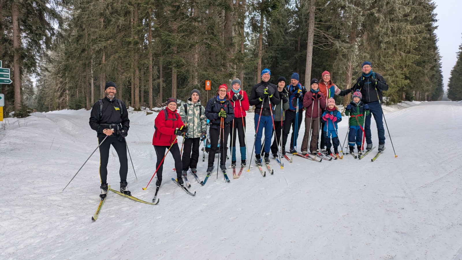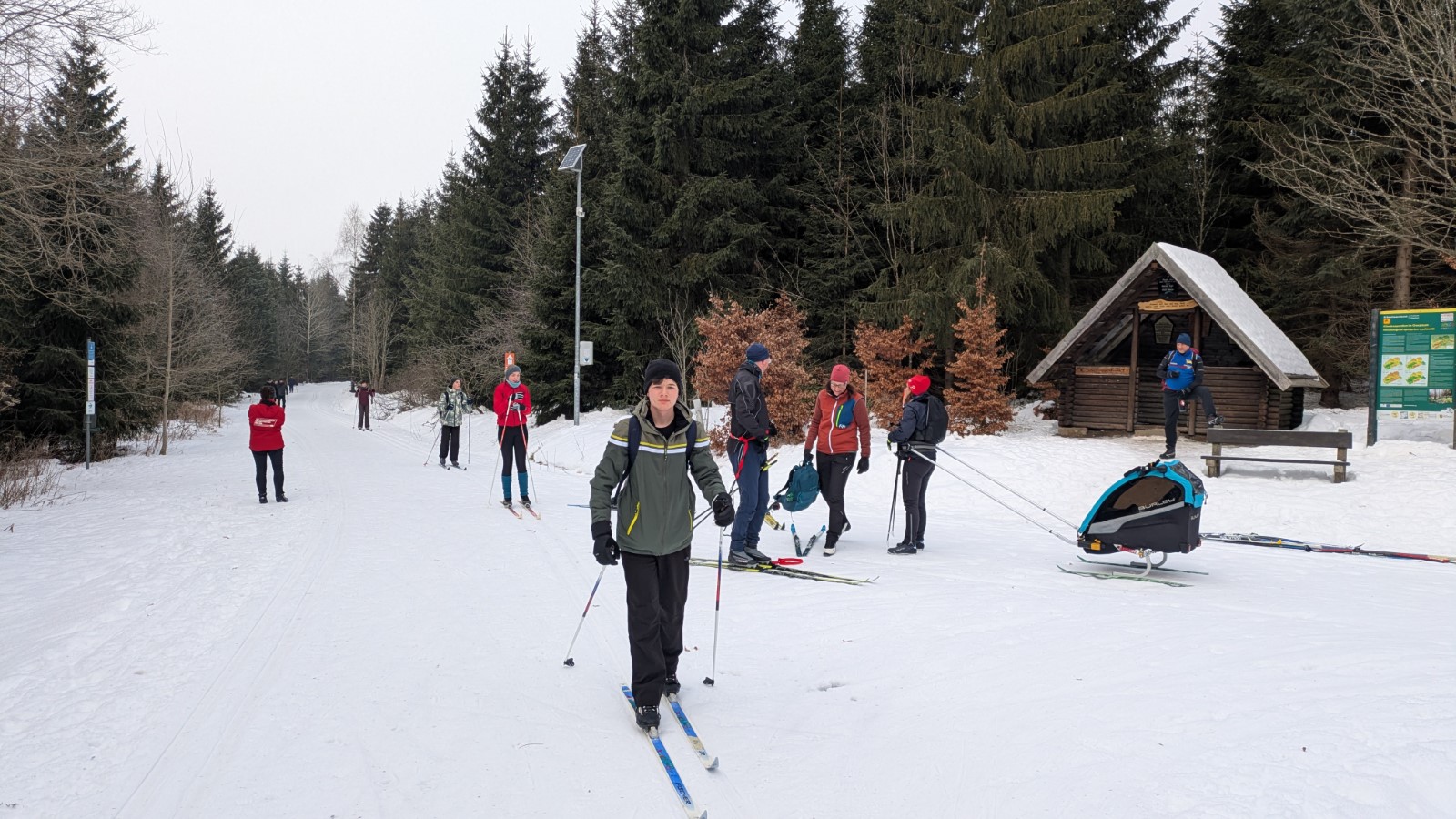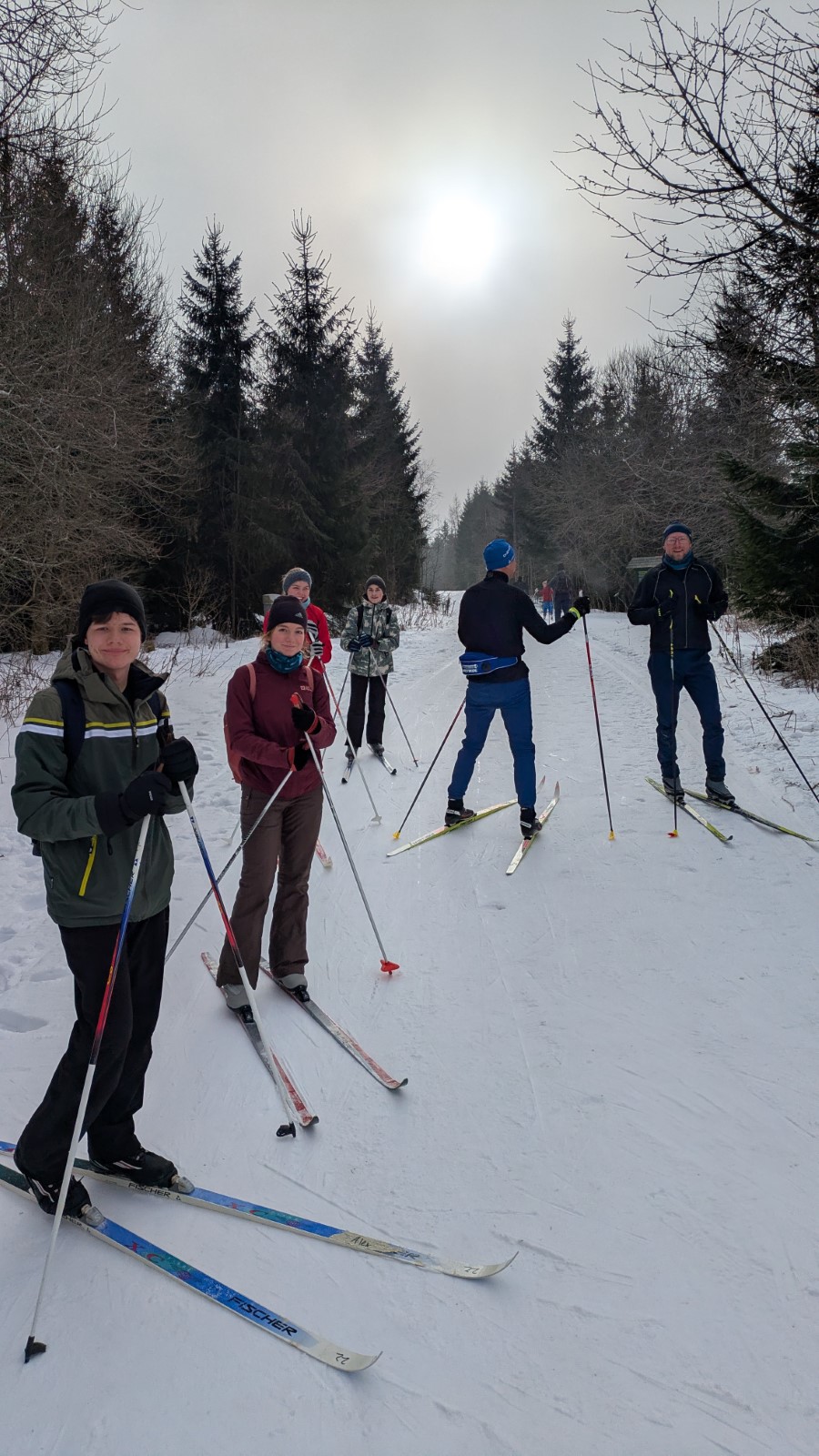 Johanngeorgenstadt. Die Eilenburger Kernbesatzung bestand in diesem Jahr aus Josi, Jasper, André, Rayk und den SportlerInnen Flavia, Luise, Niels und Clemens. Entscheidende Verstärkung kam mit Klaus aus Berlin, der Britta dabei hatte. In letzter Sekunde gesellte sich mit Robert, Carla, Georg und Klara noch eine ganze RCE-Familie dazu. Die gemütliche Jugendherberge in der Hospitalstraße erwies sich wieder einmal als perfekter Gastgeber. Der letztlich vorhandene Schnee lag schon ein paar Wochen auf den Loipen. Zwischendurch angetaut und nun überfroren, waren die Verhältnisse schwierig, aber halbwegs kontrollierbar. Man musste sich was einfallen lassen.