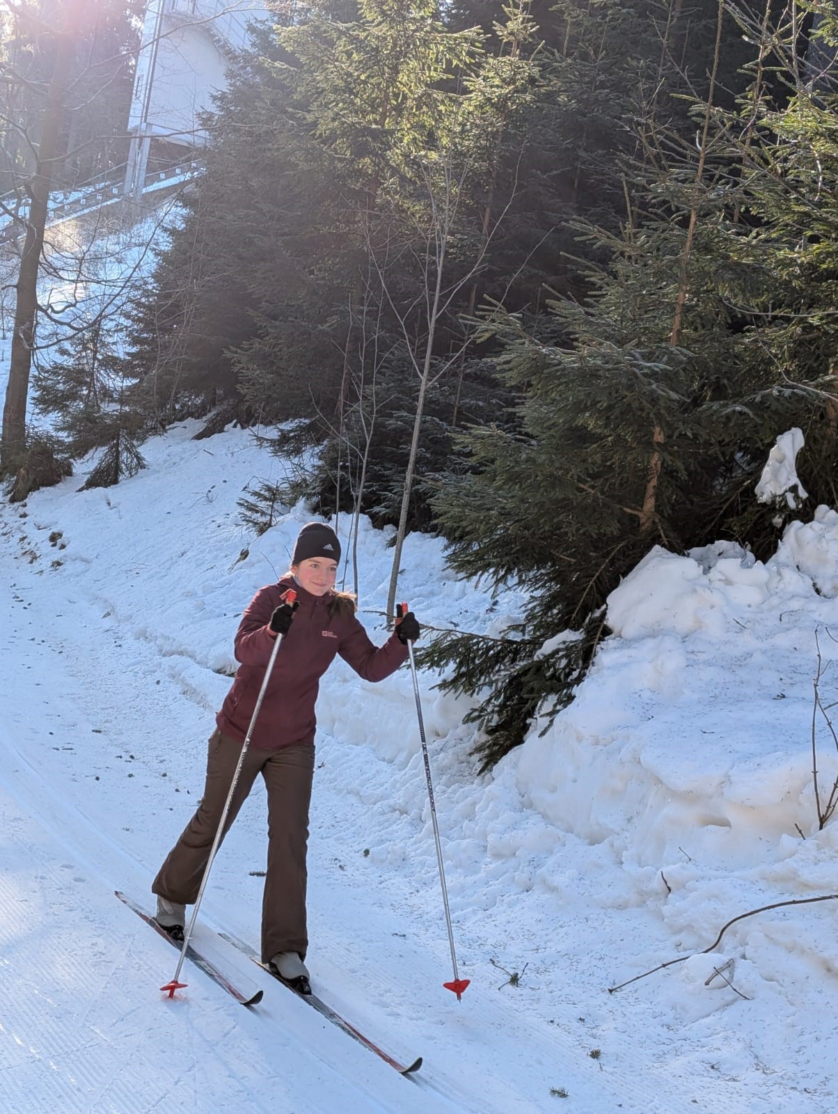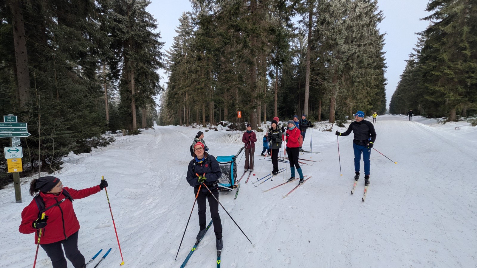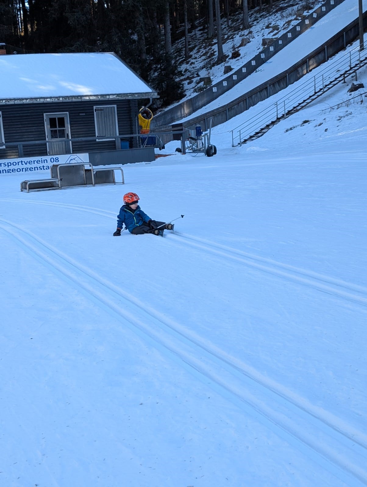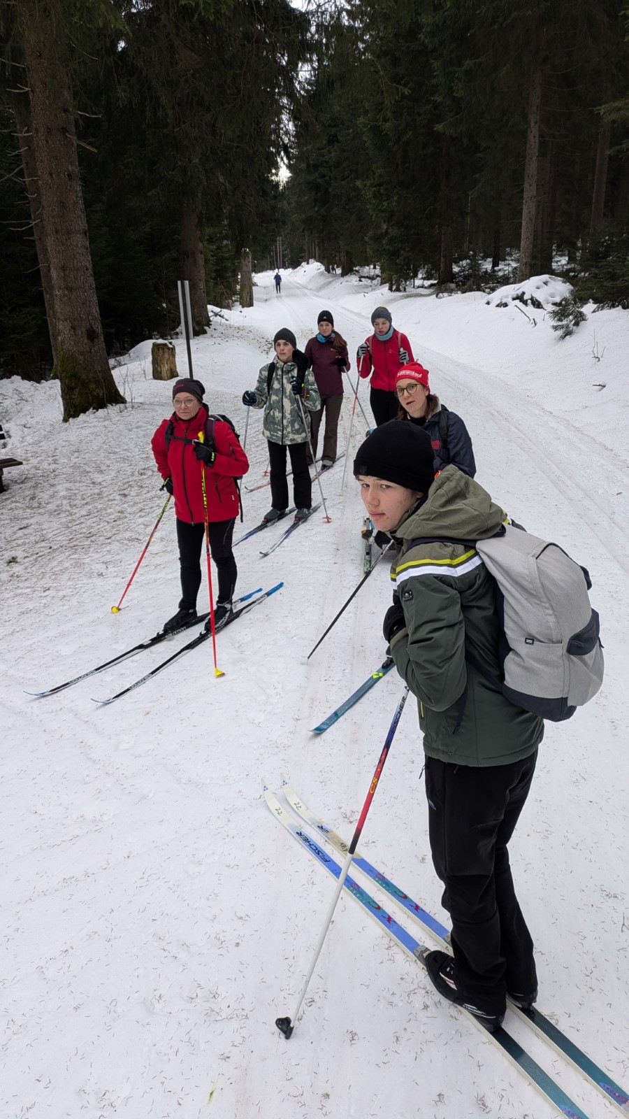 Johanngeorgenstadt. Die Eilenburger Kernbesatzung bestand in diesem Jahr aus Josi, Jasper, André, Rayk und den SportlerInnen Flavia, Luise, Niels und Clemens. Entscheidende Verstärkung kam mit Klaus aus Berlin, der Britta dabei hatte. In letzter Sekunde gesellte sich mit Robert, Carla, Georg und Klara noch eine ganze RCE-Familie dazu. Die gemütliche Jugendherberge in der Hospitalstraße erwies sich wieder einmal als perfekter Gastgeber. Der letztlich vorhandene Schnee lag schon ein paar Wochen auf den Loipen. Zwischendurch angetaut und nun überfroren, waren die Verhältnisse schwierig, aber halbwegs kontrollierbar. Man musste sich was einfallen lassen.