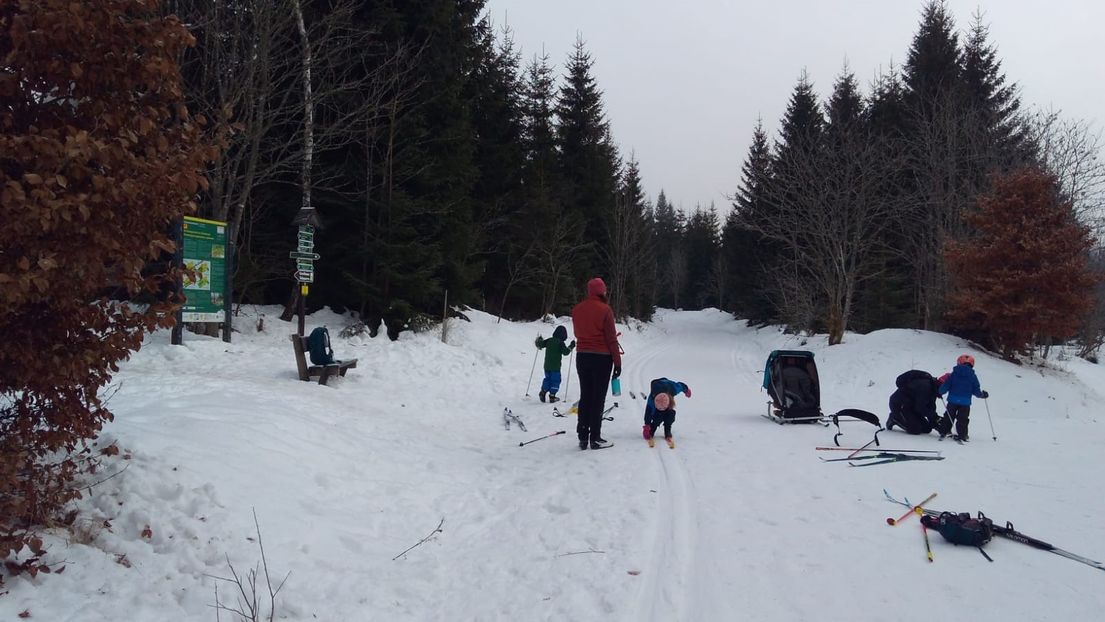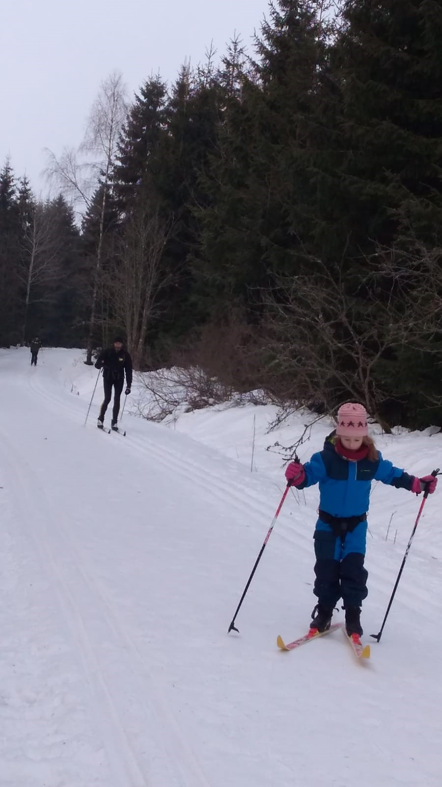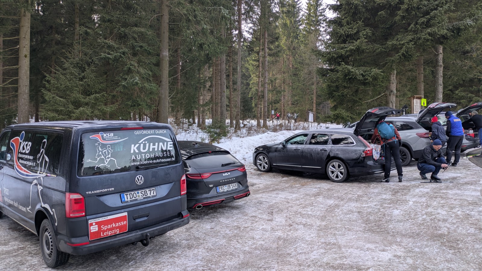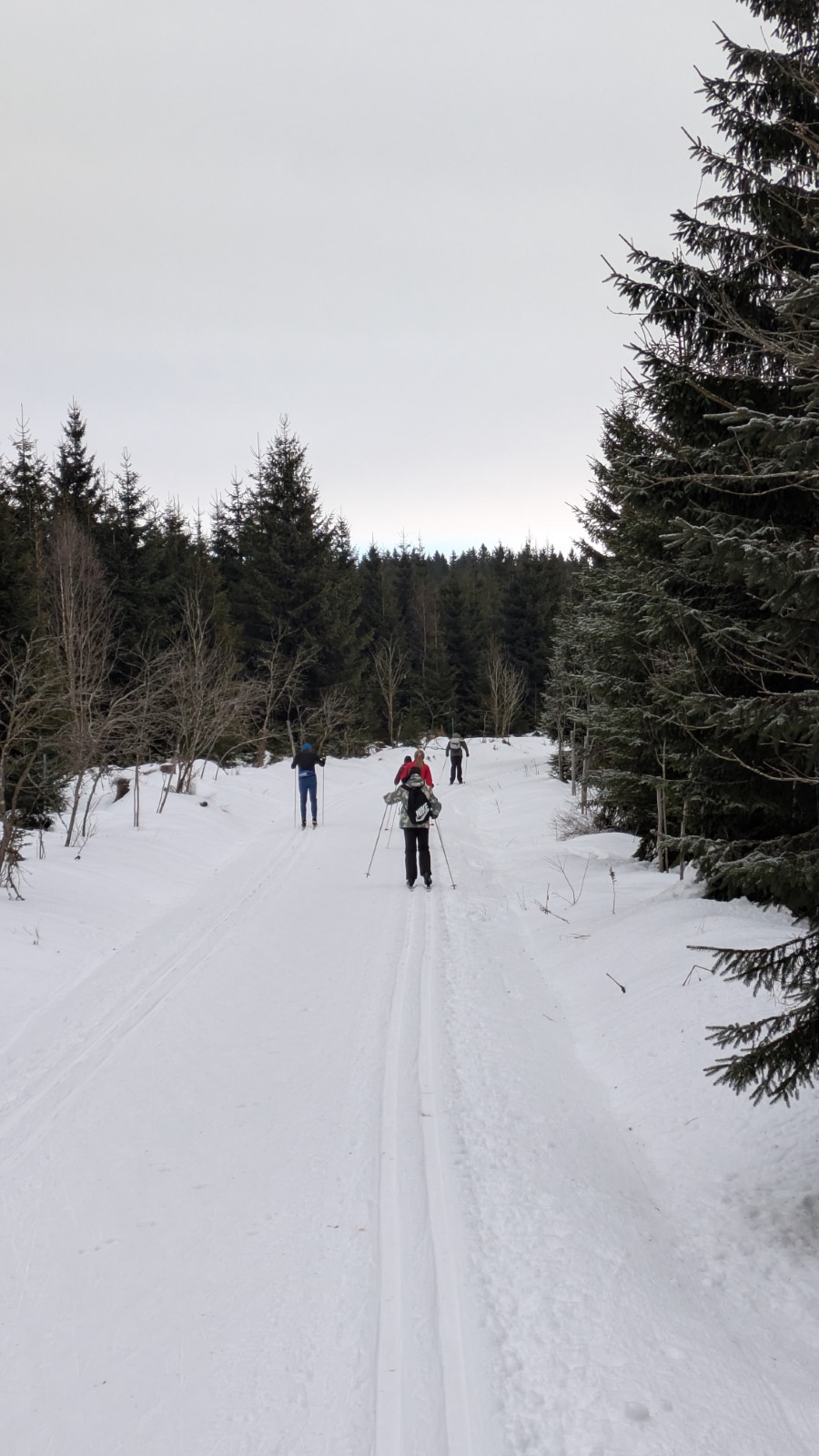 Johanngeorgenstadt. Die Eilenburger Kernbesatzung bestand in diesem Jahr aus Josi, Jasper, André, Rayk und den SportlerInnen Flavia, Luise, Niels und Clemens. Entscheidende Verstärkung kam mit Klaus aus Berlin, der Britta dabei hatte. In letzter Sekunde gesellte sich mit Robert, Carla, Georg und Klara noch eine ganze RCE-Familie dazu. Die gemütliche Jugendherberge in der Hospitalstraße erwies sich wieder einmal als perfekter Gastgeber. Der letztlich vorhandene Schnee lag schon ein paar Wochen auf den Loipen. Zwischendurch angetaut und nun überfroren, waren die Verhältnisse schwierig, aber halbwegs kontrollierbar. Man musste sich was einfallen lassen.