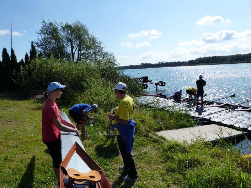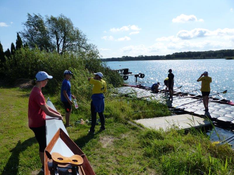 Von Montag, den 18. bis zum Freitag, den 22. August fand das Rudertrainingslager der Jugend statt. Die neun angemeldeten Jugendlichen zelteten diesmal in der Kiesgrube. Neben dem Wassertraining gab es wetterbedingt eine Nachmittagseinheit im Bootshaus. Ein weiterer Nachmittag war zum Klettern in der Leipziger Boulderhalle eingeplant und durchgeführt worden. Frühstück und Mittagessen gab es in der Strandklause. Zum Abendbrot luden netterweise abwechselnd unsere Sportlereltern zu sich ein. Nachfolgend sind Fotos der ersten 3 Tage zu sehen.
