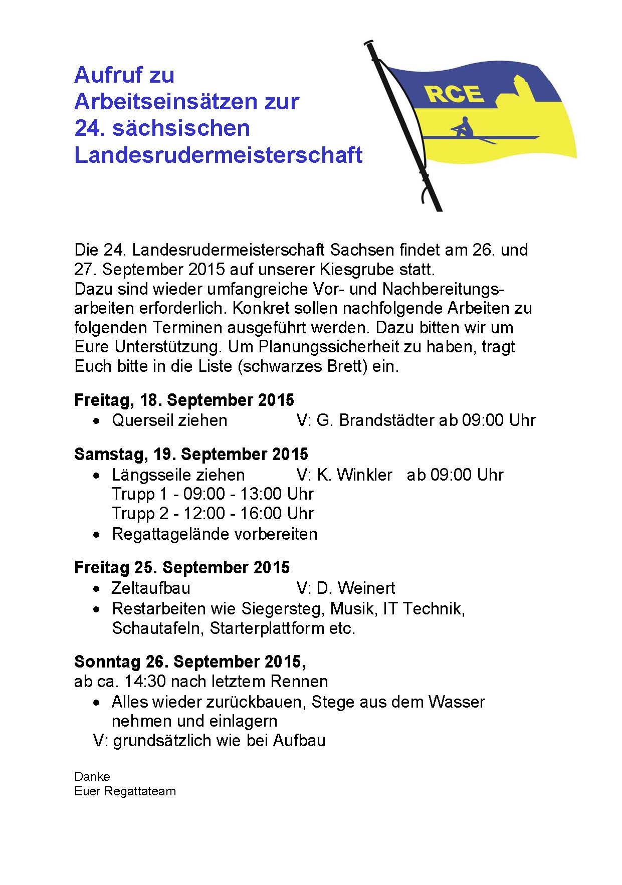 2015 Aufruf Arbeitseinsatz Landesrudermeisterschaft