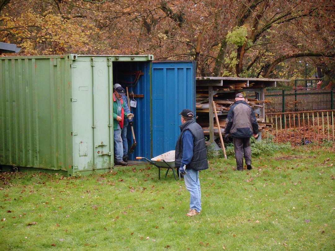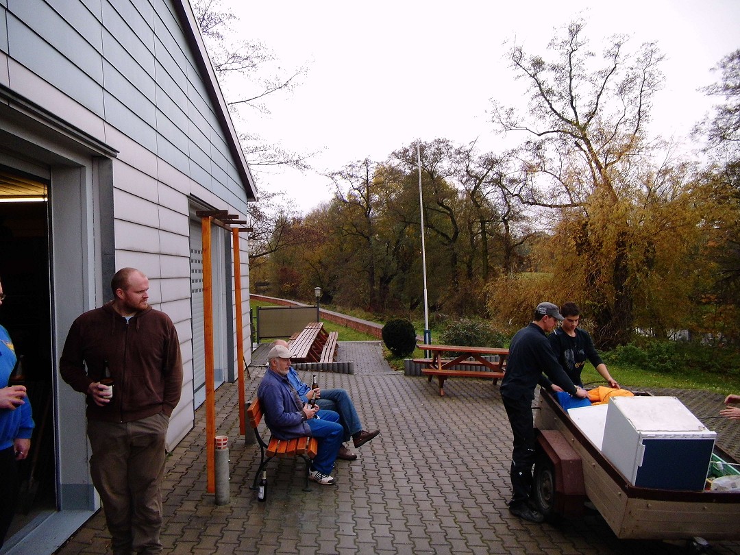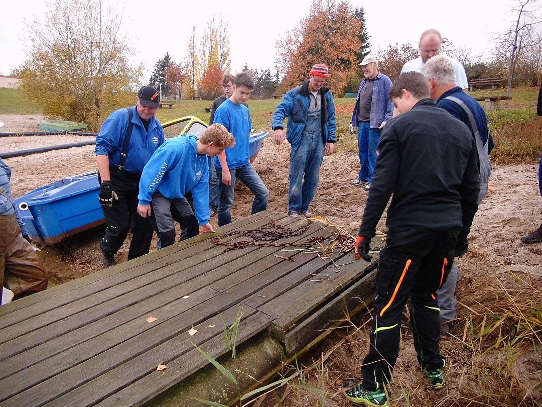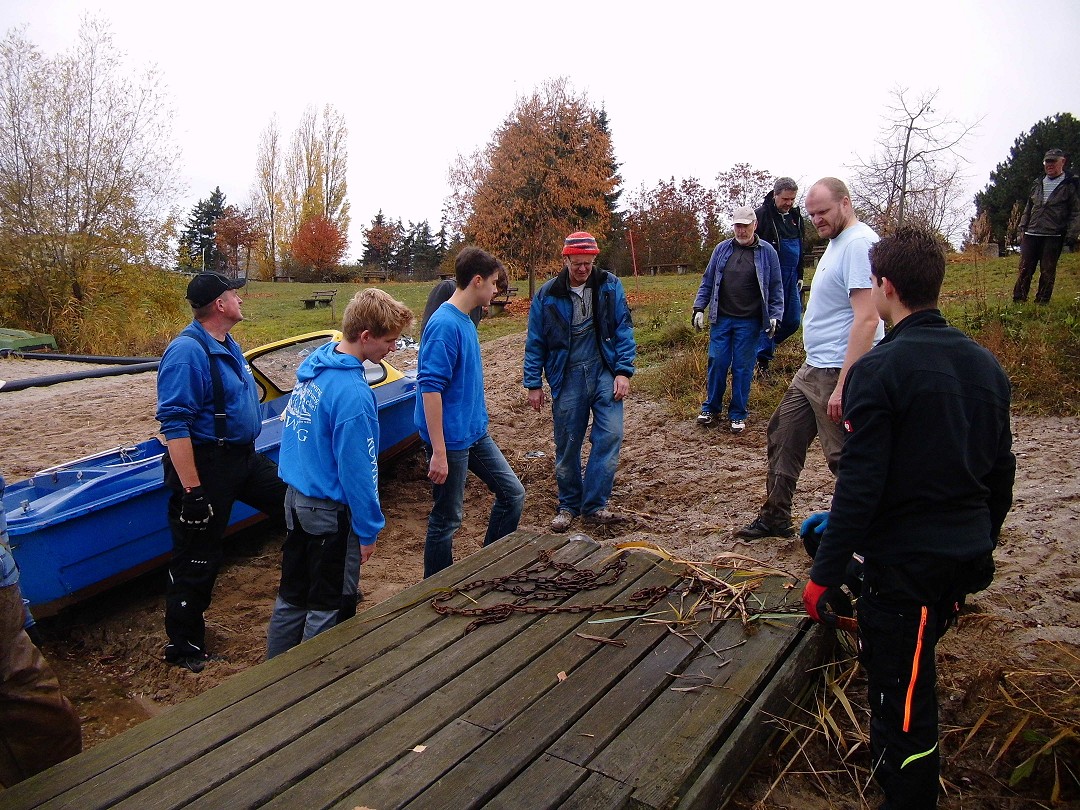 Bei hinreichend reger Beteiligung wurden die Stege winterfest verstaut, der Bungalow aufgeräumt, die Außenanlagen entlaubt, die Bänke eingebracht und viele nötige Kleinigkeiten erledigt.