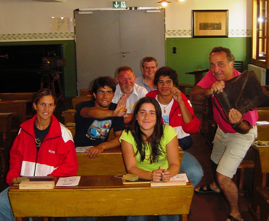 Gesagt, getan – Frau Gruber empfing die Gäste und führte sie in einem kurzweiligen Vortrag durch die Ausstellungen ihres Hauses. Bei allem Respekt vor den alten historischen Zeugnissen und den wundervollen Puppen in der neuen Sammlung: Tief bewegt saßen unsere jungen Gäste aus Paraguay vor den Filmaufnahmen, die die schreckliche Zerstörung der Stadt im April 1945 dokumentierten. Genug Spaß gab es im alten Klassenzimmer, Trainer Ruben konnte wohl nur deshalb über die Stränge schlagen, weil der allseits gefürchtete Schulmeister Flegel nicht im Hause war.