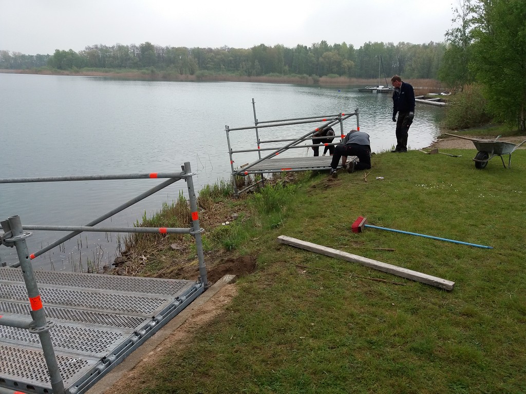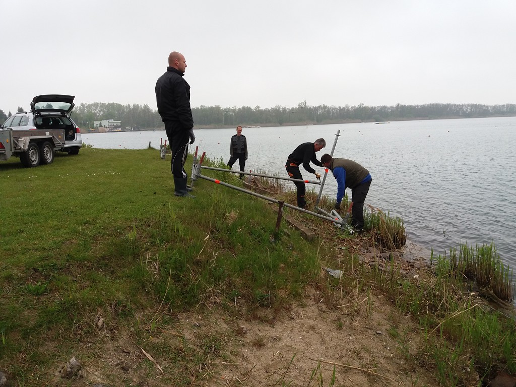 Die Regattavorbereitungen laufen wie am Schnürchen. Am Samstag, dem 6. Mai kümmerte sich die Jugend um die Bojen, ältere Semester brachten die Steganlagen zu Wasser. Das Querseil war bereits durch unsere erfahrensten Kräfte hergerichtet worden. Diesmal gab es einige Neuerungen im Konzept. Zum einen wurden die Seile gleichzeitig mit zwei Motorbooten gezogen, so daß die 6-Bahnen-Strecke gegen Mittag schon fix und fertig war. Gespannt sein darf man außerdem auf die neuen Zugänge zum Siegersteg in Gerüstbauweise. Nach dem Mittagssüppchen ließen sich unsere Sportler auch noch zu "Energiebündeln" küren, dank Eilenburger Stadtwerke. Weitere Infos auf unserer Jugendseite (LINK).