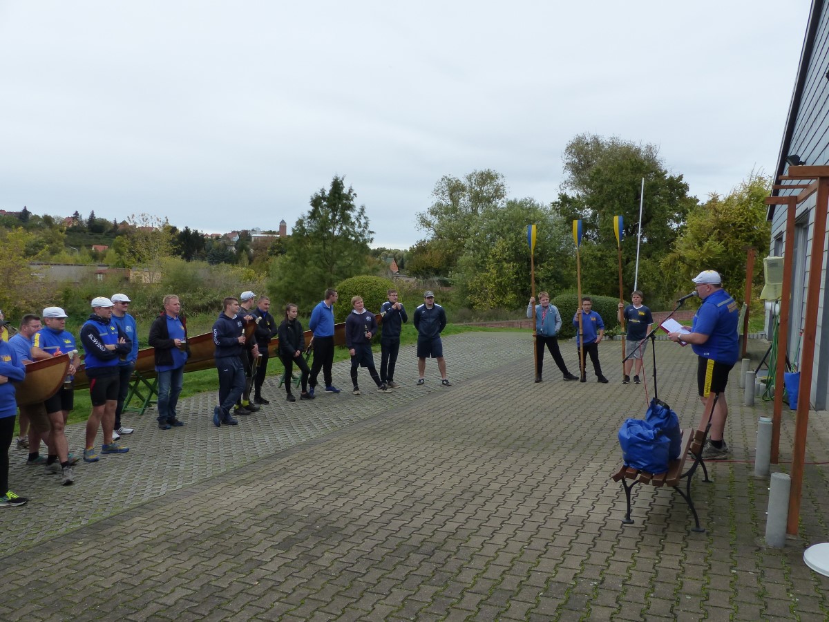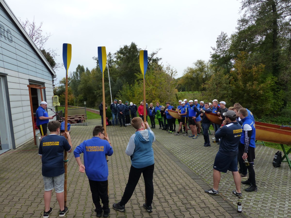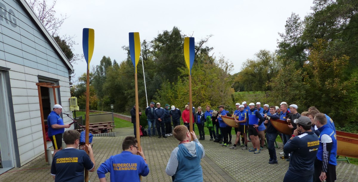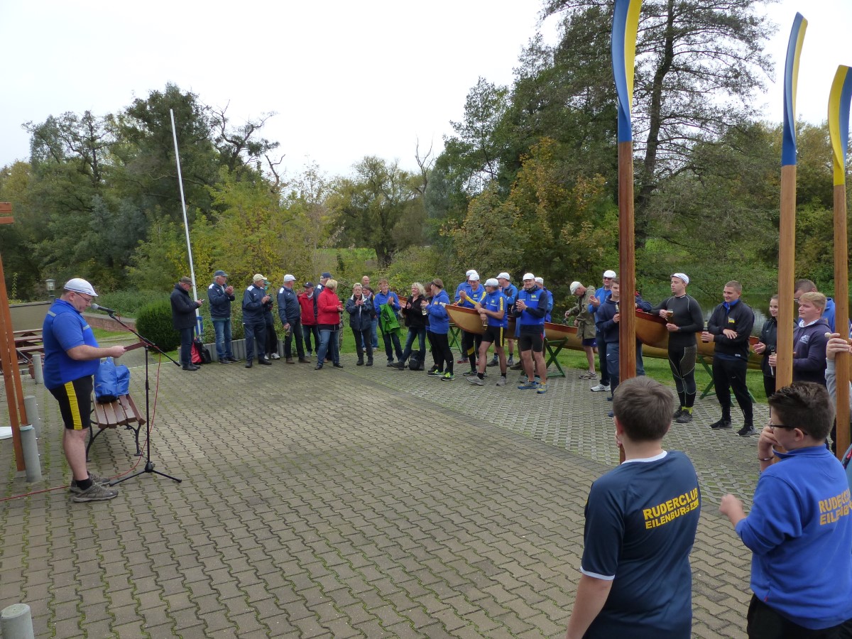 Kurz vor der Ansprache fanden sich noch zwei vollständige Vierermannschaften, die für das nachfolgende Gig-Rennen zusammengelost wurden. Der Vorsitzende Felix Weiske begrüßte alle Anwesenden aufs herzlichste, verabschiedete die offizielle Rudersaison 2019, ehrte die Sieger und schickte „die Boote zu Wasser, die Ruder zur Hand".