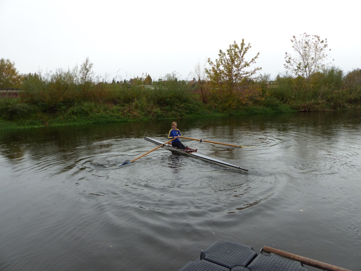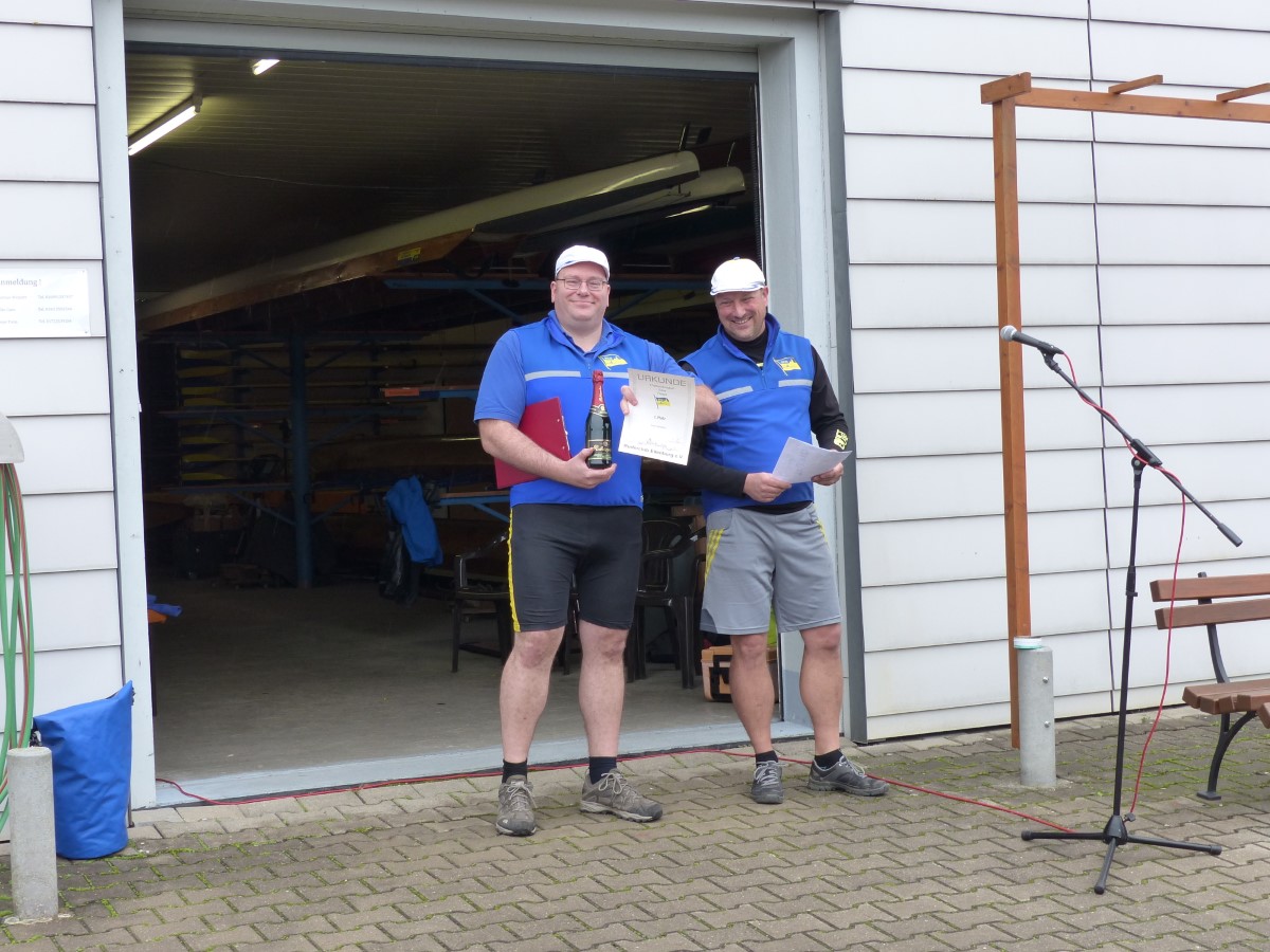 Trotz durchwachsenen Wetters gab es auch Erwachsene, die sich im Einer auf das Wasser wagten. Tina Händler holte sich den Titel bei den Frauen (später stellvertretend durch Felix entgegen genommen). Vereinsmeister bei den Männern wurde Rayk Bremme-Jung. Zum Mittag trudelten noch einige Ruderfreunde ein, die sich das traditionelle Nudelgericht ebenso wie die Sportler schmecken ließen. Diesmal hatte sich Familie Parchwitz liebevoll darum gekümmert.