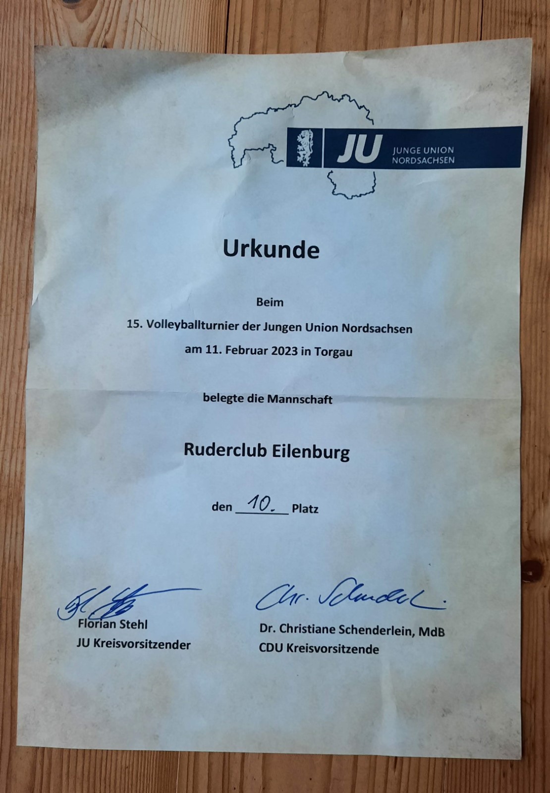 Platz 10 von 12 Mannschaften - das klingt erstmal ernüchternd, aber... Immerhin haben sich hier Ruderer unter reinen Volleyballteams behauptet.