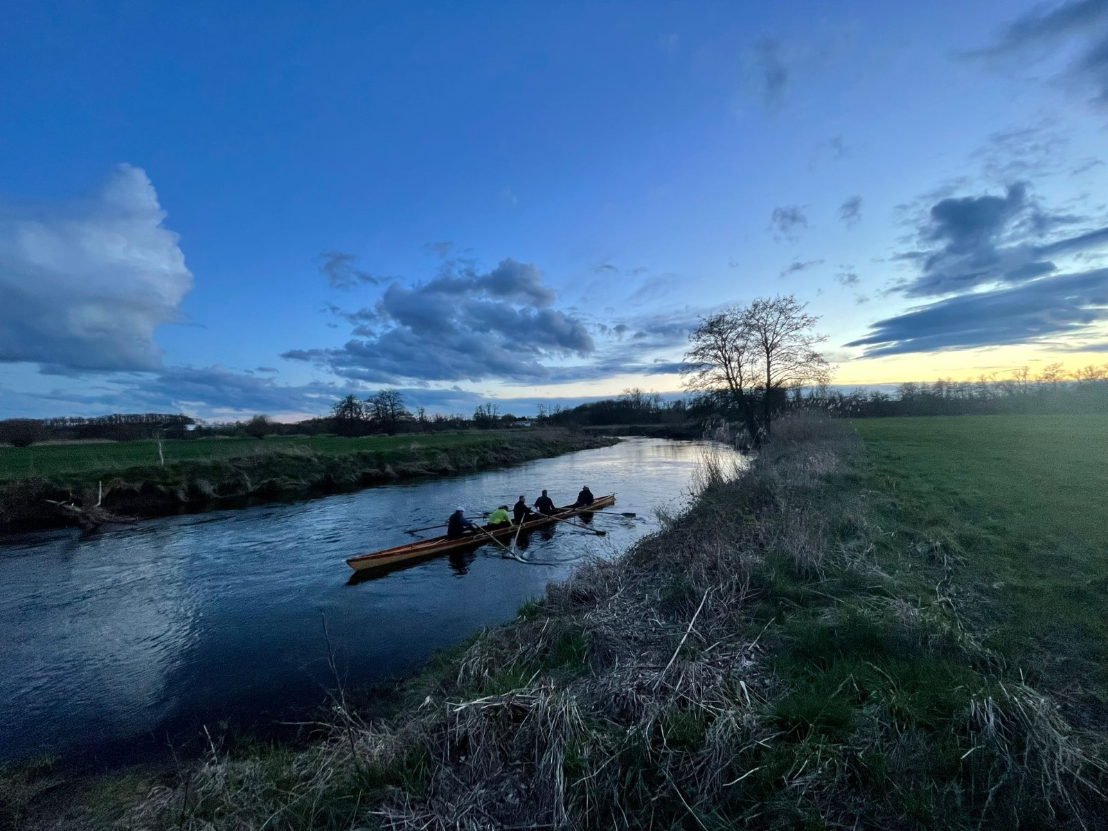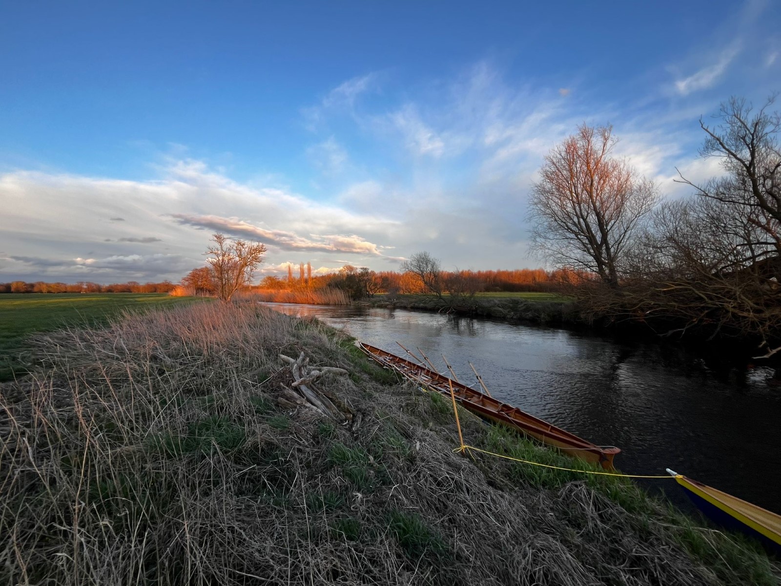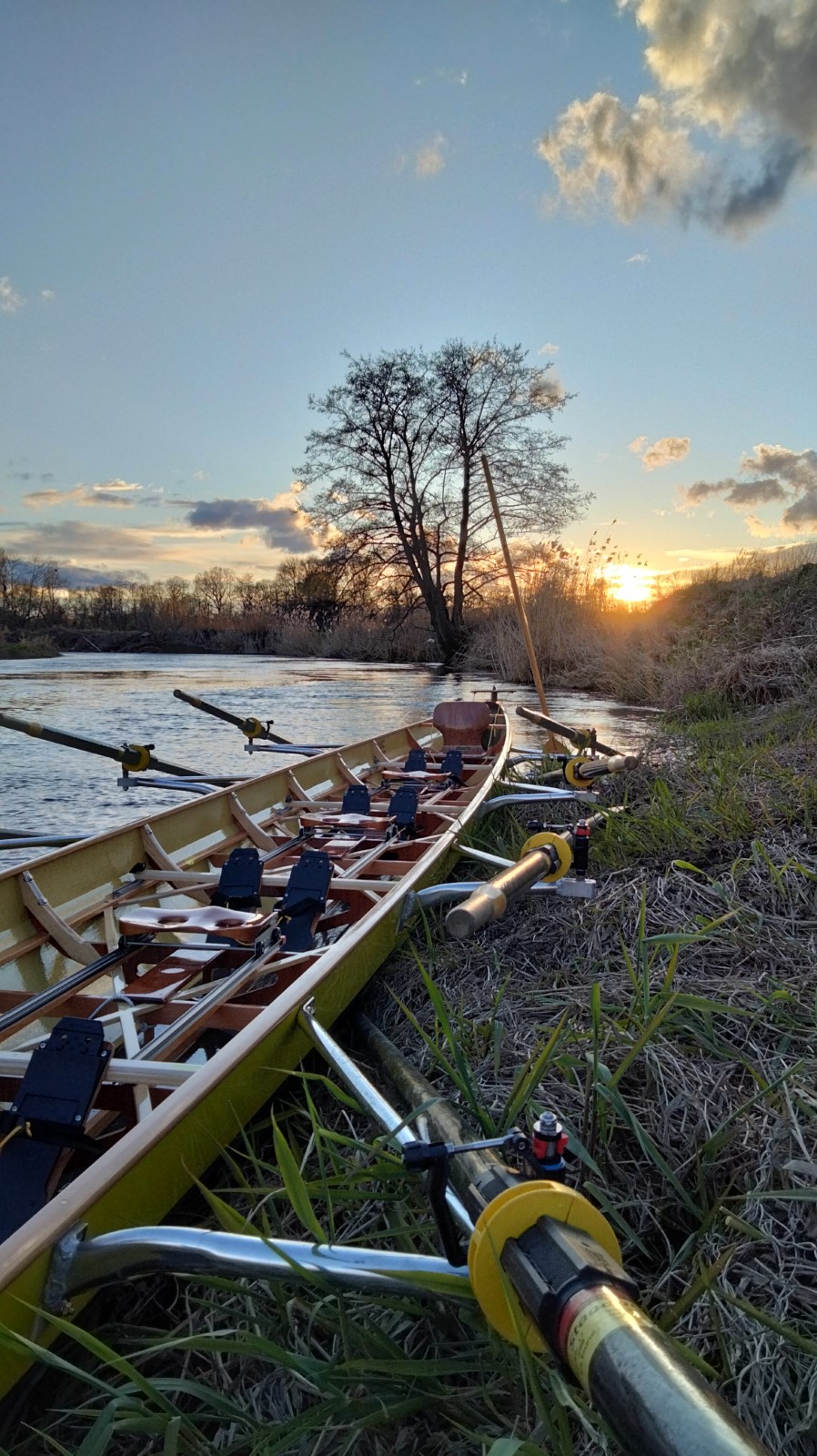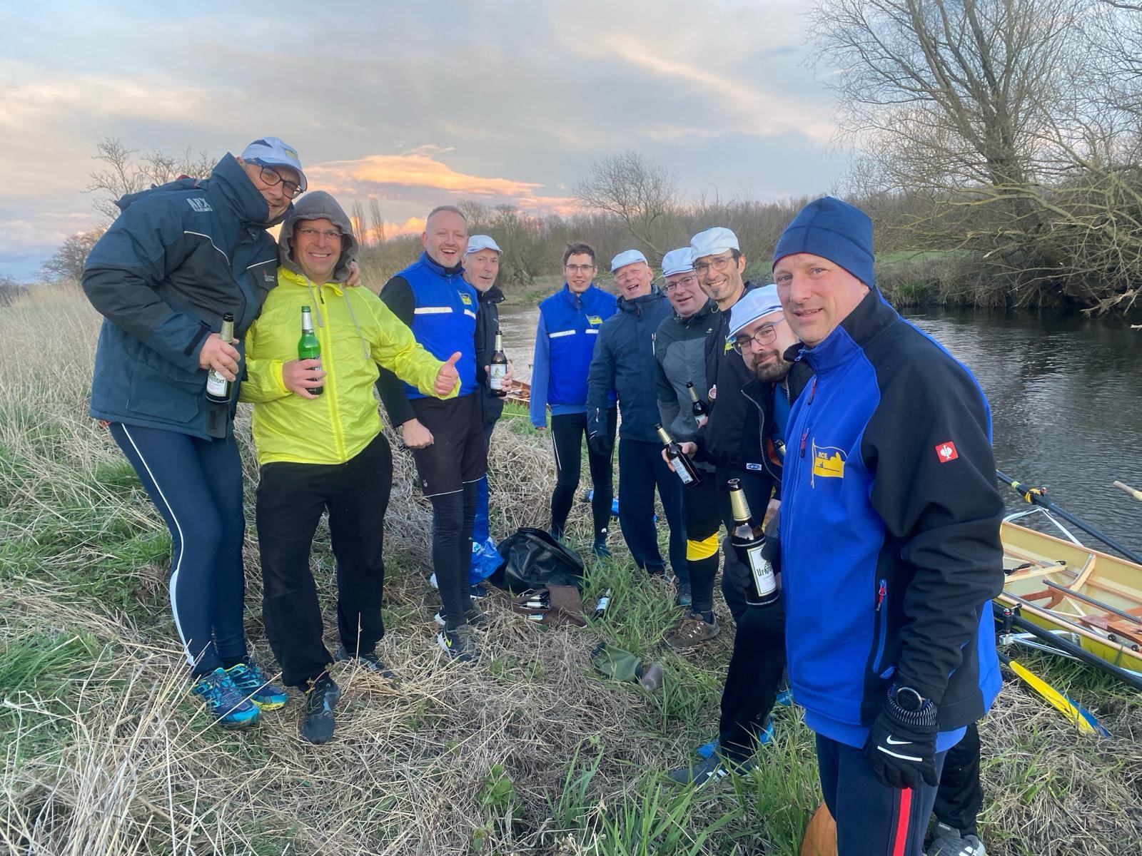 Extra zeitig, nämlich 17 Uhr, sollte es auf die traditionelle Gründonnerstagsausfahrt gehen. Zwei Doppelvierer und ein Radfahrer waren am Start. Mehr oder weniger schnell kamen alle in die Pötte. Mit dem Abendrot wurde es zunehmend frisch in der Mühlgrabenaue, was eine zügige Heimkehr begünstigte.