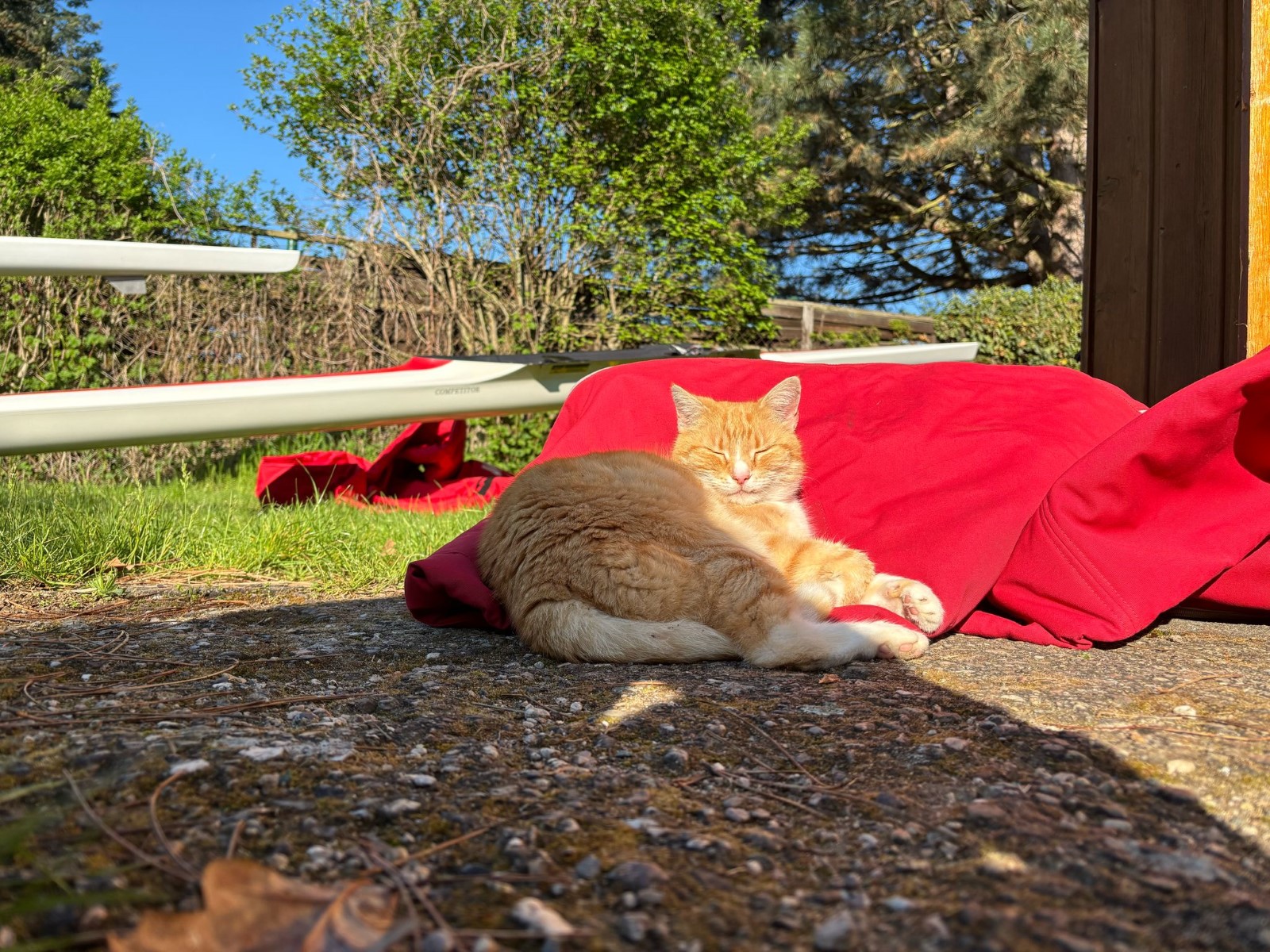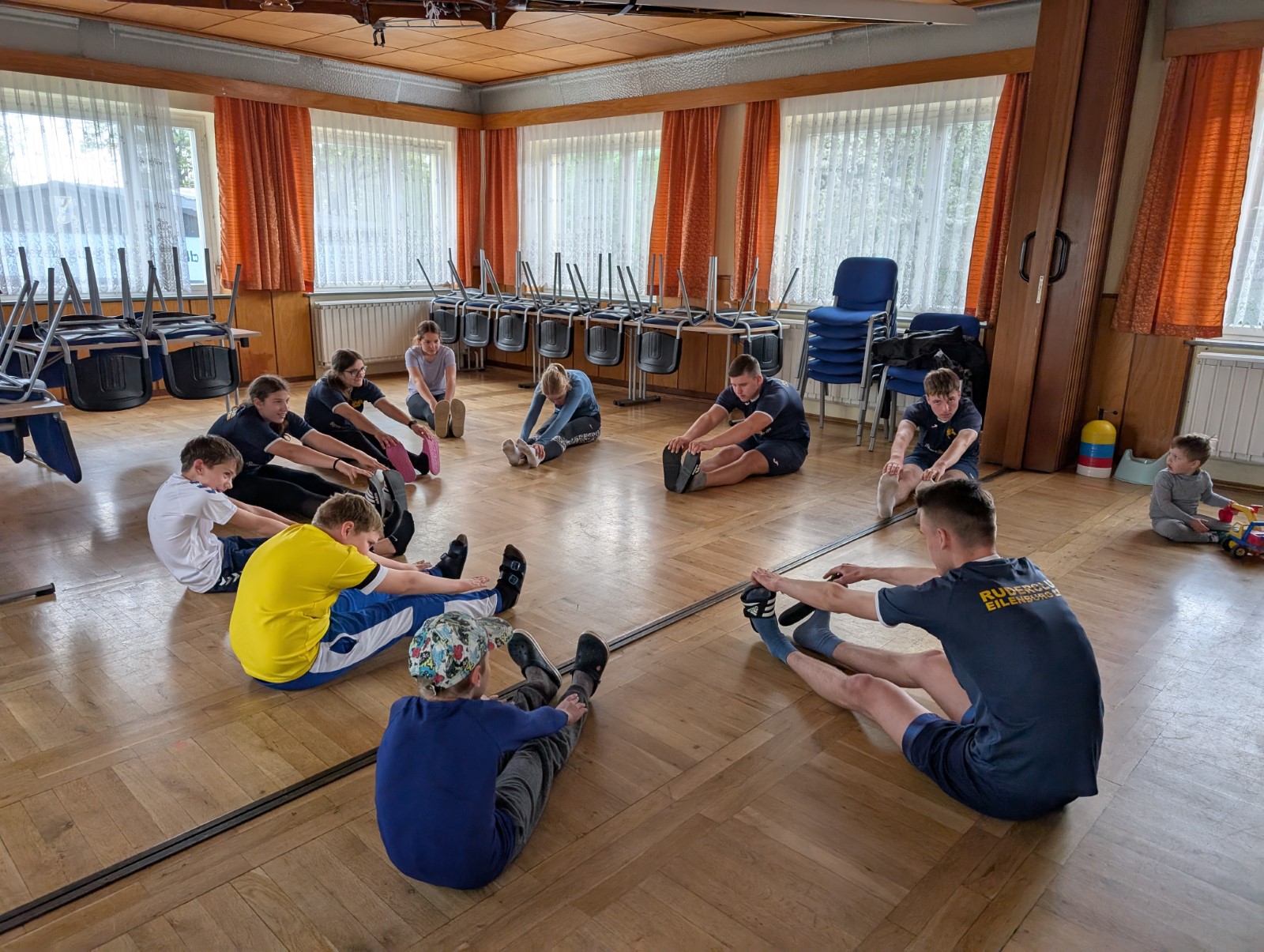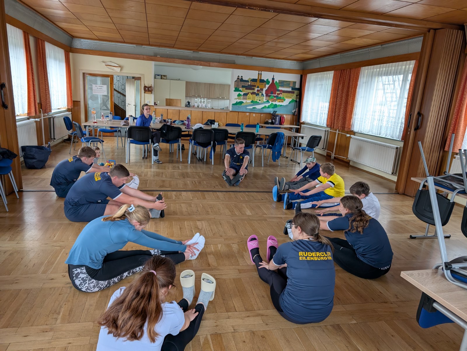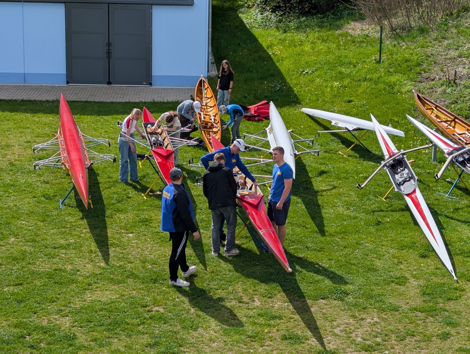 Zur selben Zeit, als die kleine Gruppe wieder das Frühstück am Freitagmorgen vorbereitete, hatte die Große kein Training auf dem Wasser, sondern machte ein Lauftraining. Danach mussten alle in ihre Zimmer, um die Sachen zu packen, da es bereits unser letzter Tag in Wurzen war. Also saßen wir nach dem Frühstück zur 2. und letzten Einheit im Boot. Dort fuhren wir, wie bereits ab Donnerstag, ein paar Rennen. Später, hieß es, schnell Mittagessen machen und dann Sachen holen, damit wir anfangen konnten, die Boote abzubauen. Es dauerte länger als erwartet. Nachdem alles fertig war, fuhren wir zurück nach Eilenburg. Hier ging es dann ziemlich schnell. Alle halfen mit und so kam es, dass wir noch vor 16 Uhr fertig waren.