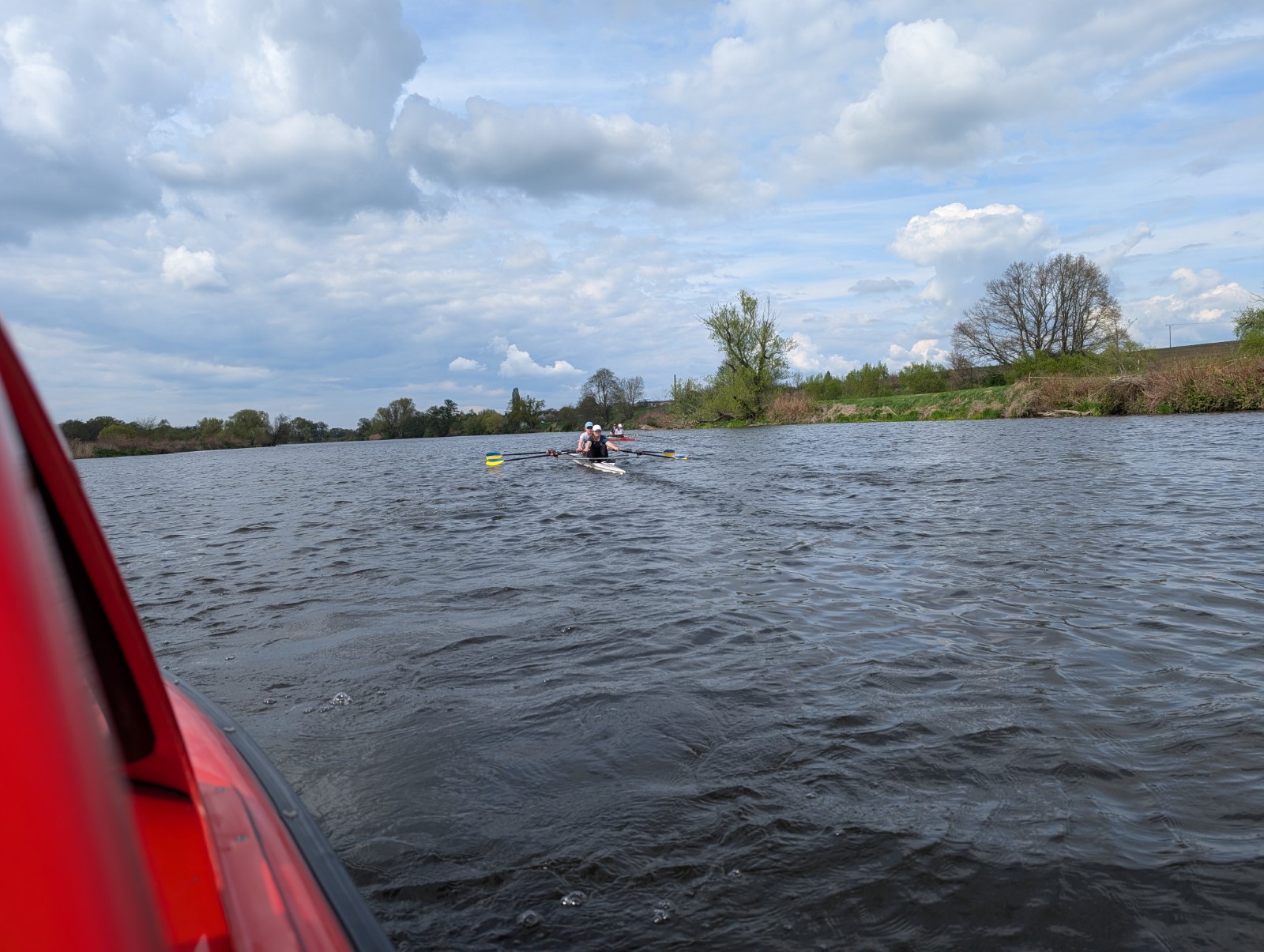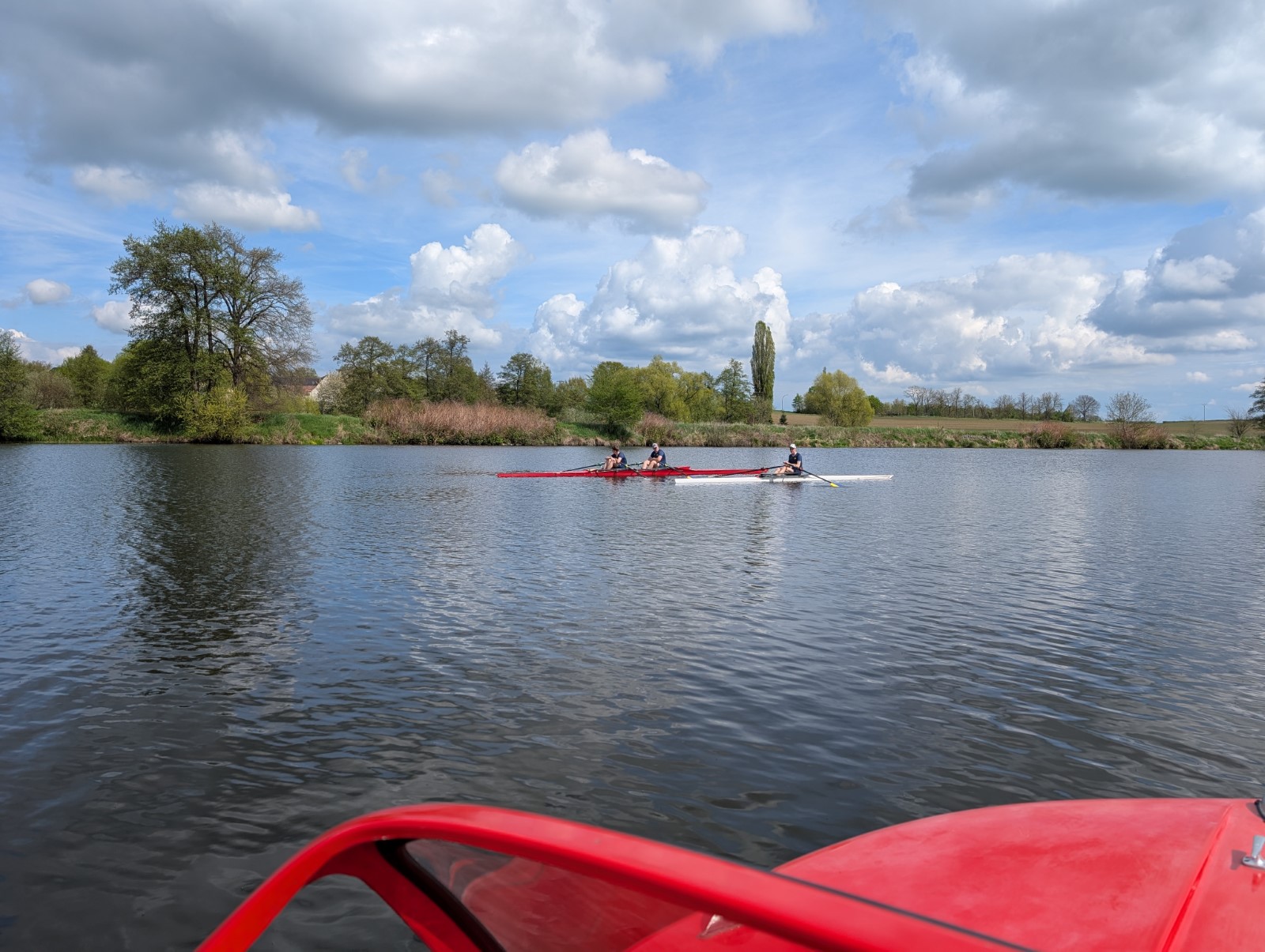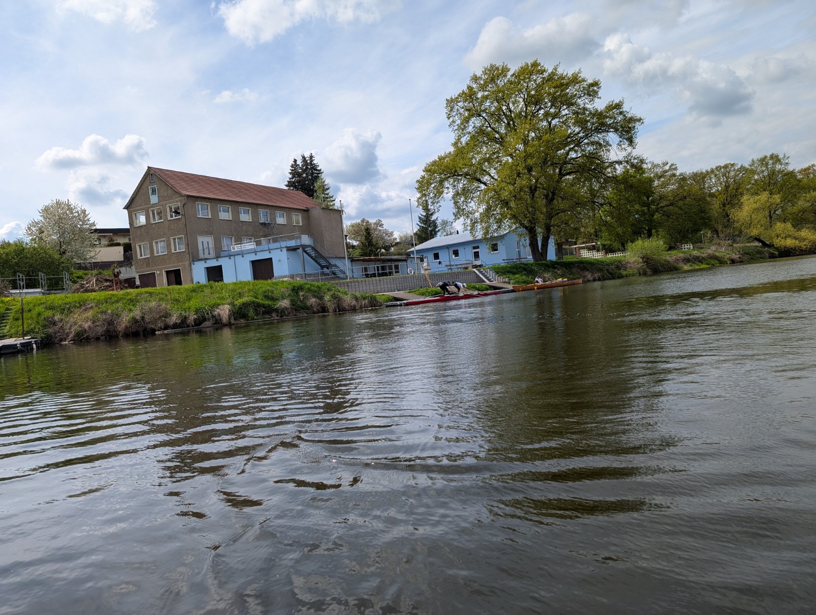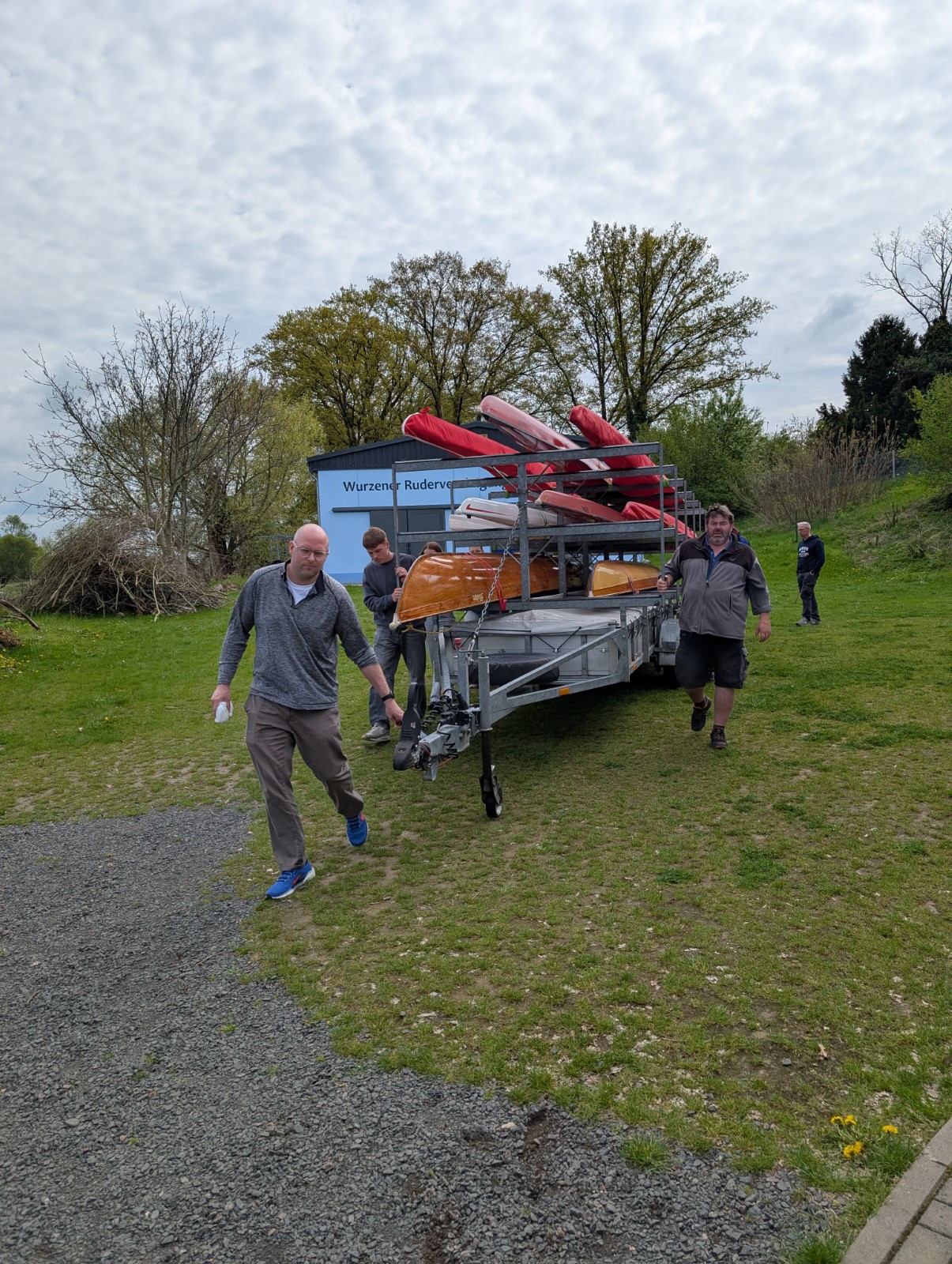Am Dienstag, den 22.04, nach dem Osterwochenende, trafen wir uns 8:00 Uhr an der Kiesgrube, um die mitzubringenden Boote, wie z.B. Zweier, oder einen Gig-Einer, abzubauen und zu verladen. Einige Zeit später konnte es losgehen und wir teilten auf, wer wo mitfährt. Keine 2 Stunden später waren alle Boote in Wurzen wieder abgeladen und angebaut. Den restlichen Tag verbrachten wir mit zwei Trainingseinheiten, vor und nach dem Abendessen. Auf dem Wasser achteten wir darauf, dass wir nicht zu viel flussabwärts ruderten, da das Wehr nicht weit entfernt war. Die große Trainingsgruppe fuhr abends als 2. Trainingseinheit noch 30 Minuten Ergometer und die kleine Gruppe lief eine 6,5 km lange Runde zum Verdauen durch den Ort. Nicht zu vergessen sangen wir alle ein Geburtstagslied für unsere Trainerin Anne.