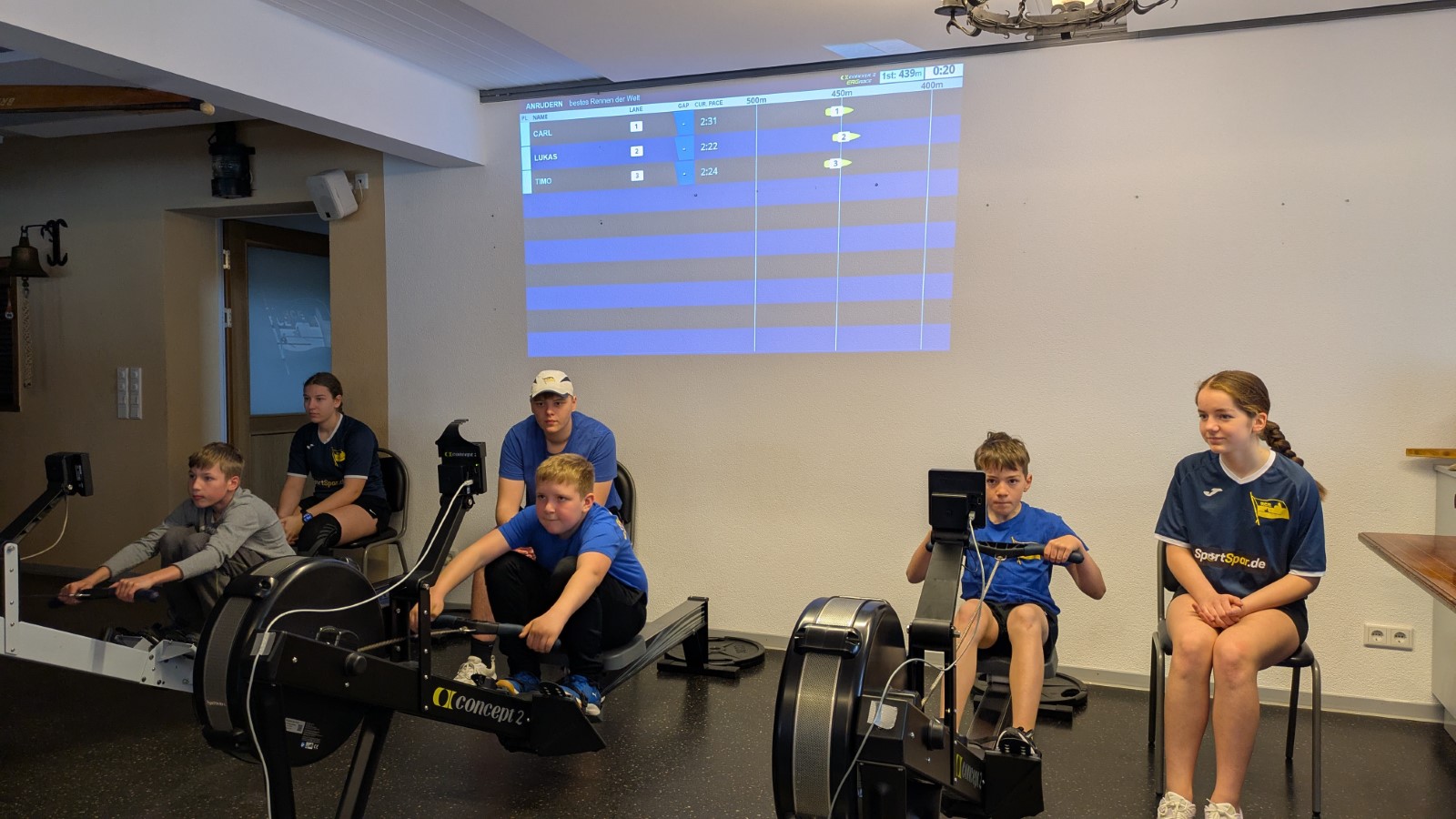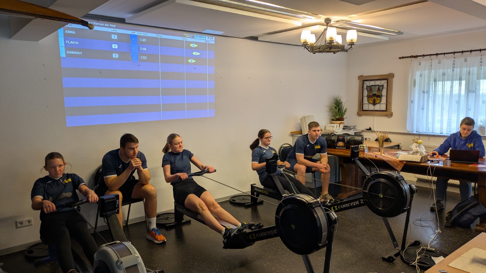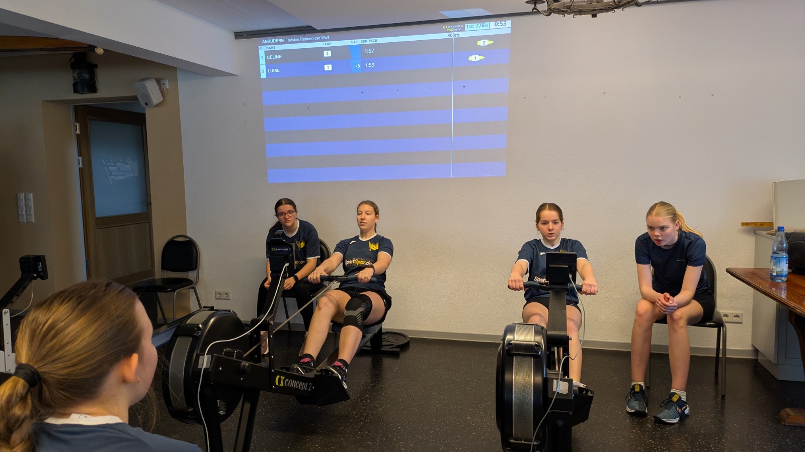 Der Vormittag ist traditionell der Ergometer-Vereinsmeisterschaft vorbehalten. Das war auch diesmal der Fall. Kinder, Jugendliche und auch einige Erwachsene stellten sich dem Wettkampf. Maximal drei Sportler konnten im Einer-Rennen direkt gegeneinander antreten, je nach Alter über die 500-, 750- oder 1000- Meter- Distanz. Zum Schluss gab es noch einen Vergleich zwischen Mädeln und Jungen. Jeweils fünf davon gingen in fliegendem Wechsel über 1500m an den Start. Im Eifer des Gefechts mangelte es kurzzeitig an Kabelkontakt. Der elektronische Vorsprung war leider nicht mehr einzuholen, Sieg für die Mädels! Das Rennen wurde nicht wiederholt, die Batterien jedoch zu Mittag mit Nudeln und Wurstgulasch aus der Vereinsküche wieder aufgeladen. Danach starteten die Vorbereitungen für Kaffee und Kuchen. Das Team hat zusammen mit den Bootshausfrauen wieder großartiges geleistet.