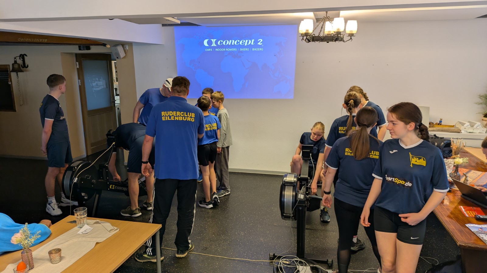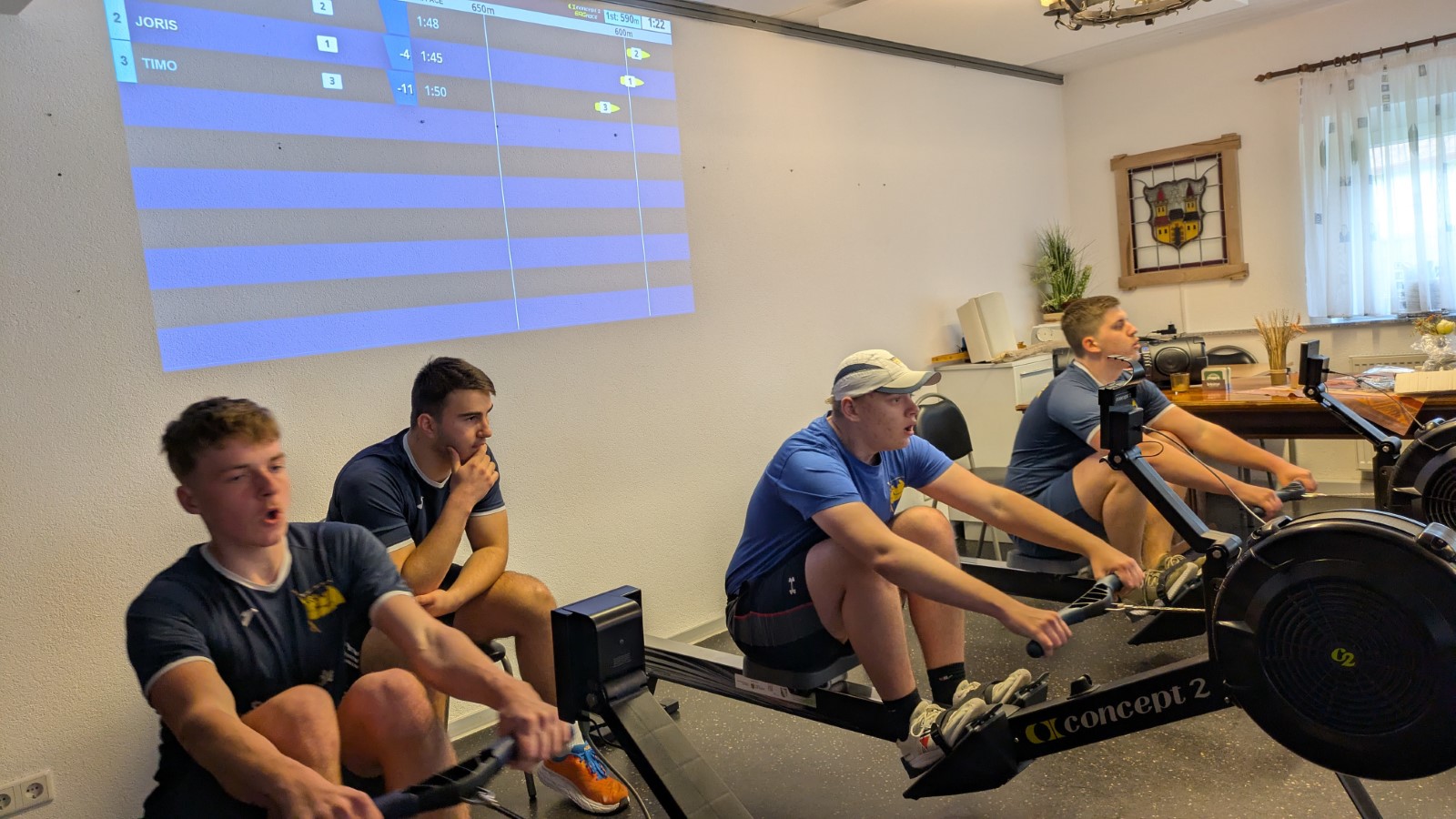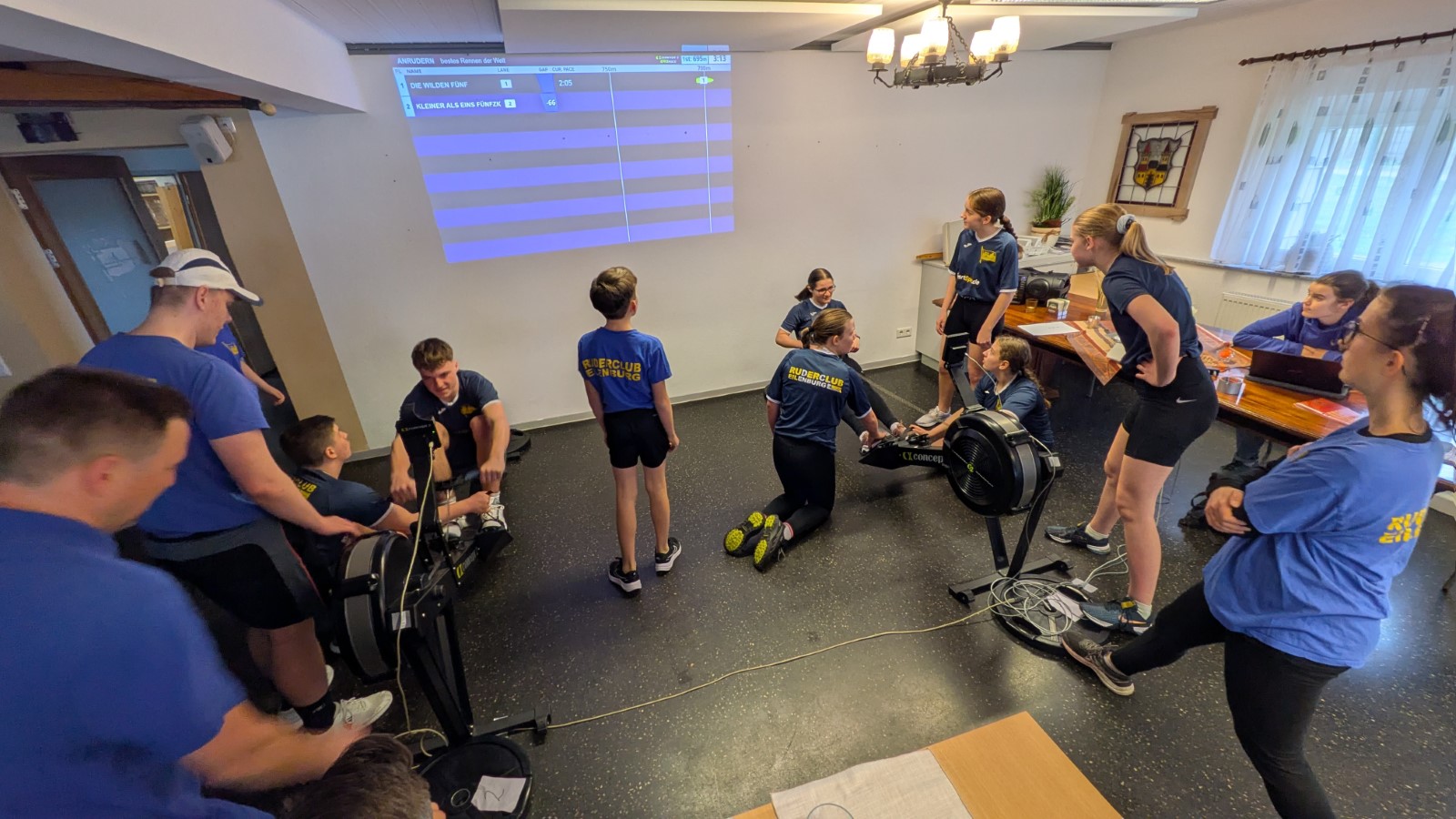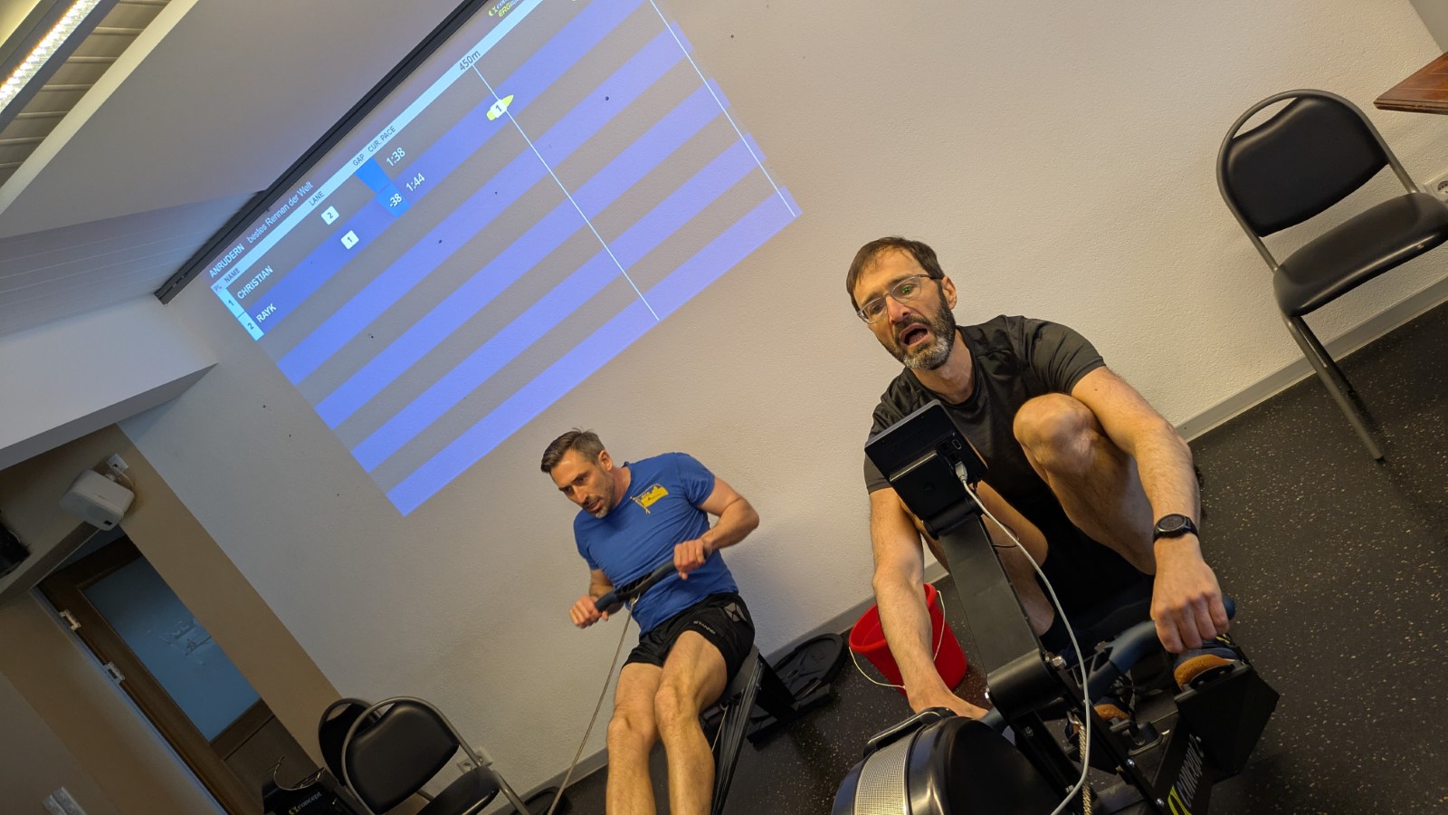 Der Vormittag ist traditionell der Ergometer-Vereinsmeisterschaft vorbehalten. Das war auch diesmal der Fall. Kinder, Jugendliche und auch einige Erwachsene stellten sich dem Wettkampf. Maximal drei Sportler konnten im Einer-Rennen direkt gegeneinander antreten, je nach Alter über die 500-, 750- oder 1000- Meter- Distanz. Zum Schluss gab es noch einen Vergleich zwischen Mädeln und Jungen. Jeweils fünf davon gingen in fliegendem Wechsel über 1500m an den Start. Im Eifer des Gefechts mangelte es kurzzeitig an Kabelkontakt. Der elektronische Vorsprung war leider nicht mehr einzuholen, Sieg für die Mädels! Das Rennen wurde nicht wiederholt, die Batterien jedoch zu Mittag mit Nudeln und Wurstgulasch aus der Vereinsküche wieder aufgeladen. Danach starteten die Vorbereitungen für Kaffee und Kuchen. Das Team hat zusammen mit den Bootshausfrauen wieder großartiges geleistet.