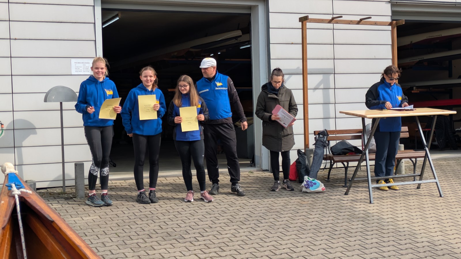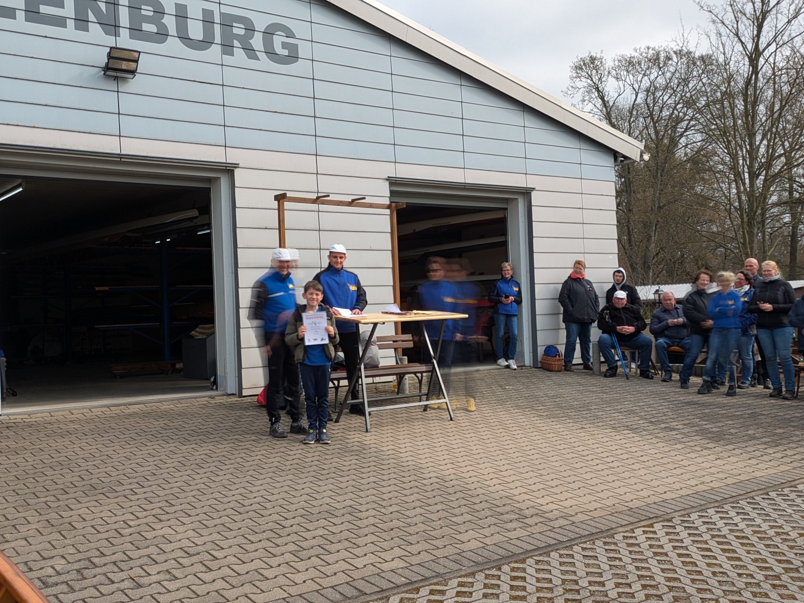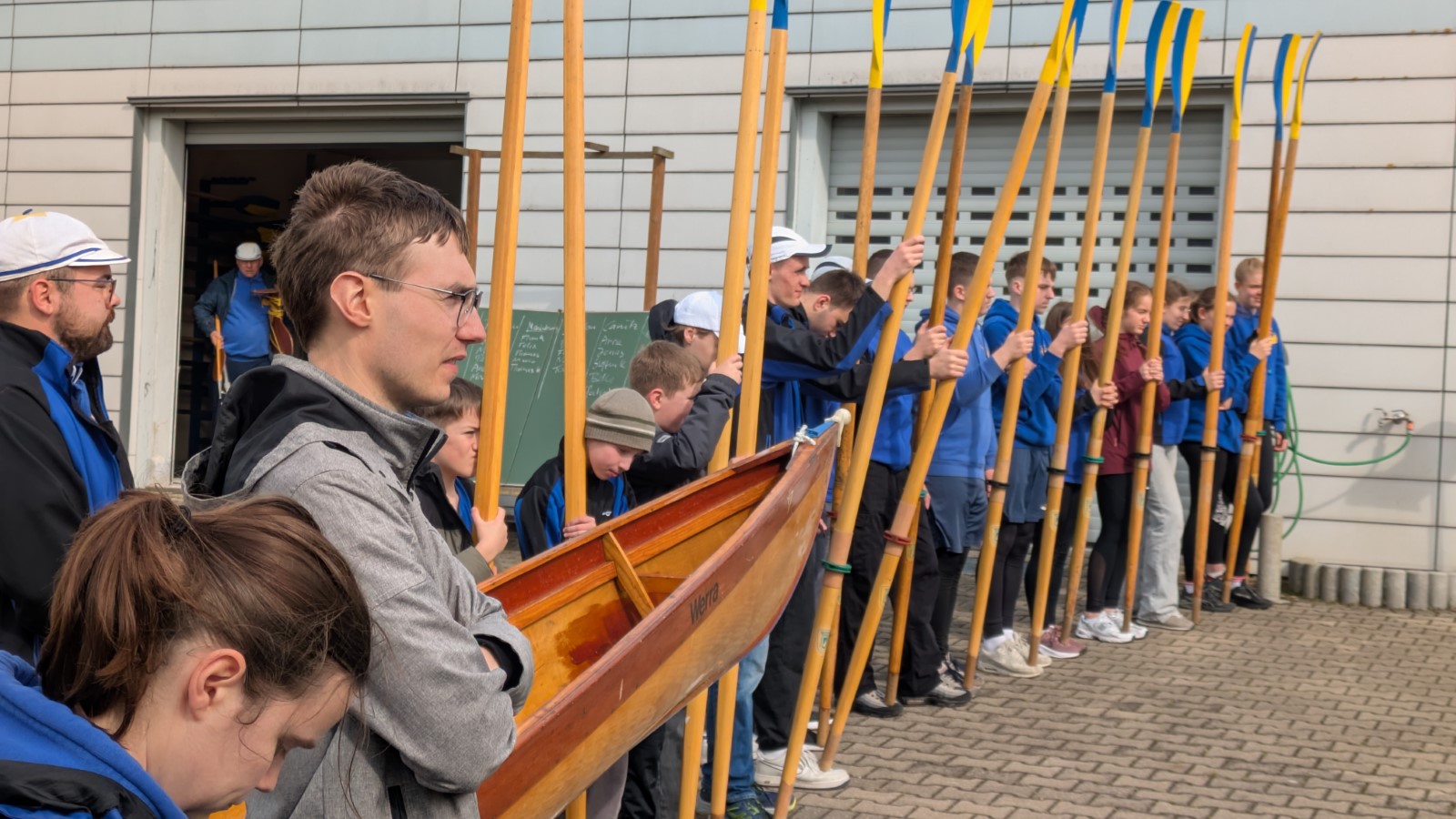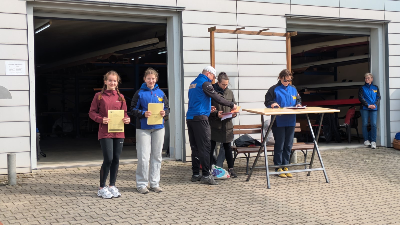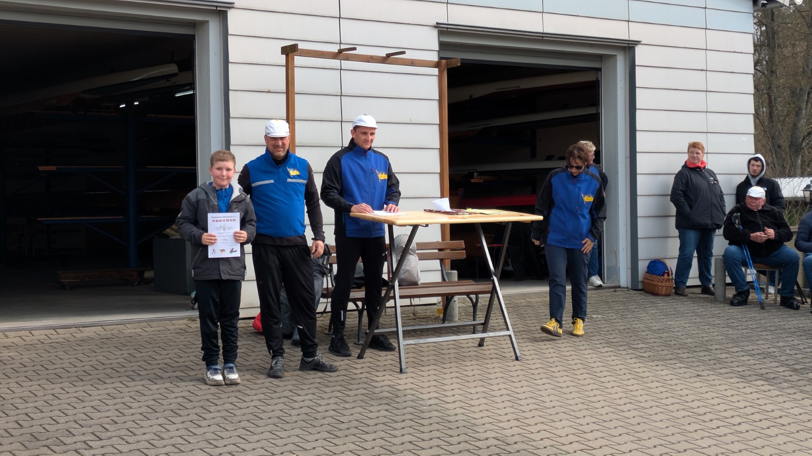 Derweil wurden vor der Bootshalle schon Boote vorbereitet und Besatzungen zusammengelistet. Pünktlich begrüßte die Vorsitzende Silke Gans die neue Saison mit der Ansprache, den Belehrungen, dem Rückblick auf die vergangene Winterpause und die Vorschau auf das Kommende. Sportwart André ehrte die Sieger und Platzierten des Tischtennisturniers, der Ergometer-Meisterschaft und der Women‘s Rowing Challenge. Nach der Aufforderung „Boote zu Wasser und Riemen zur Hand“ nahm die neue Saison an Fahrt auf.