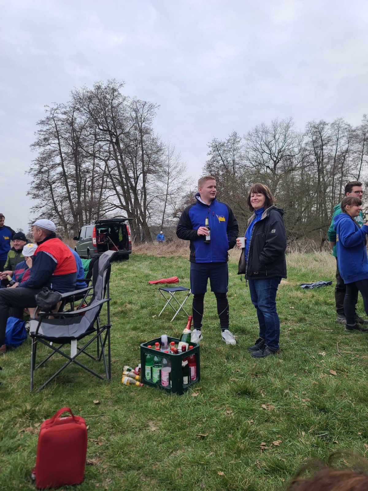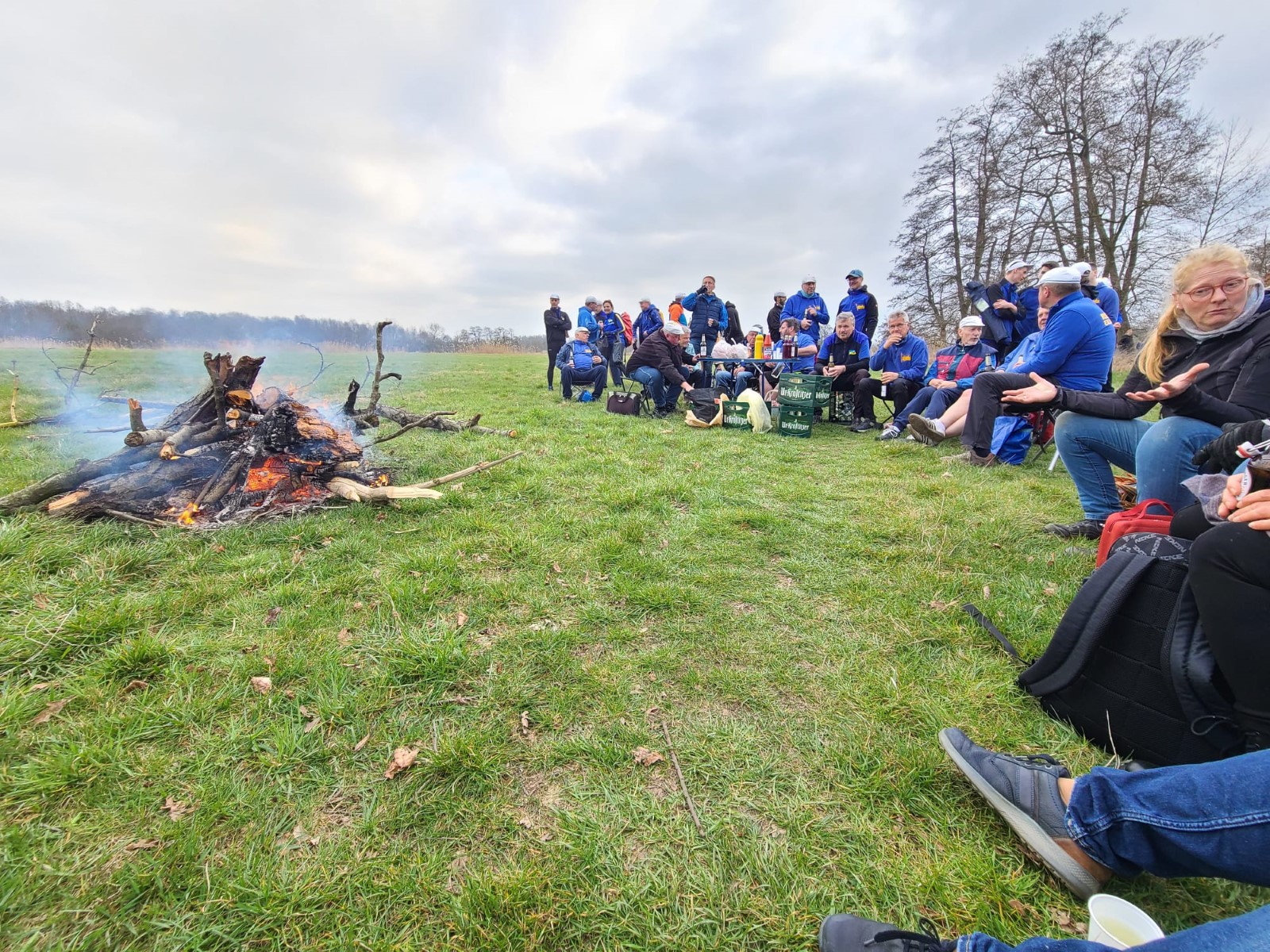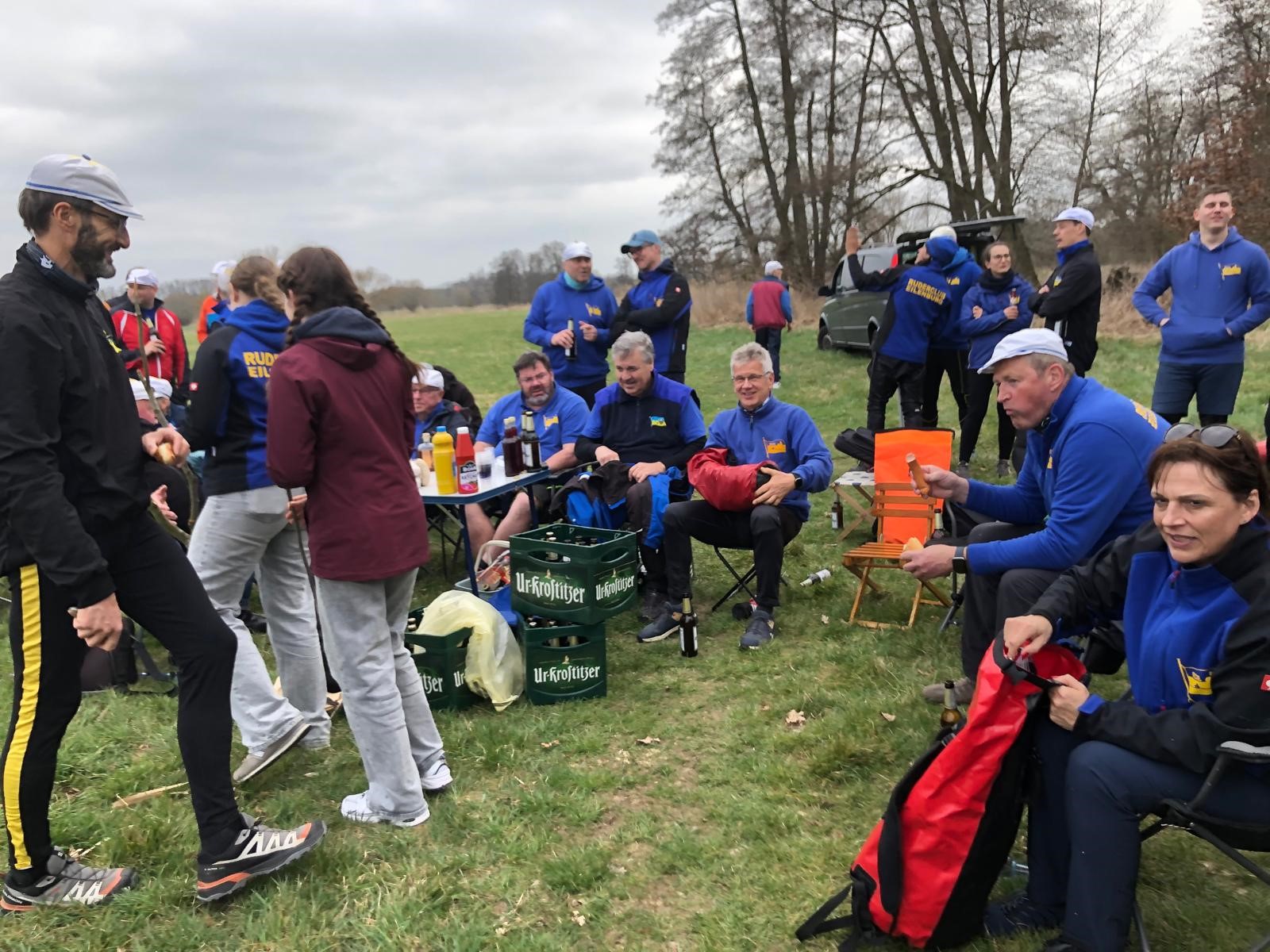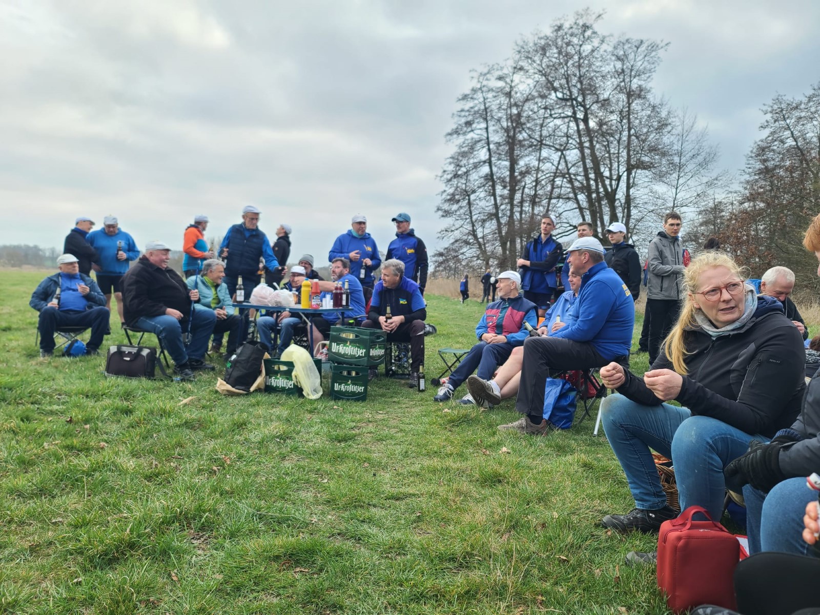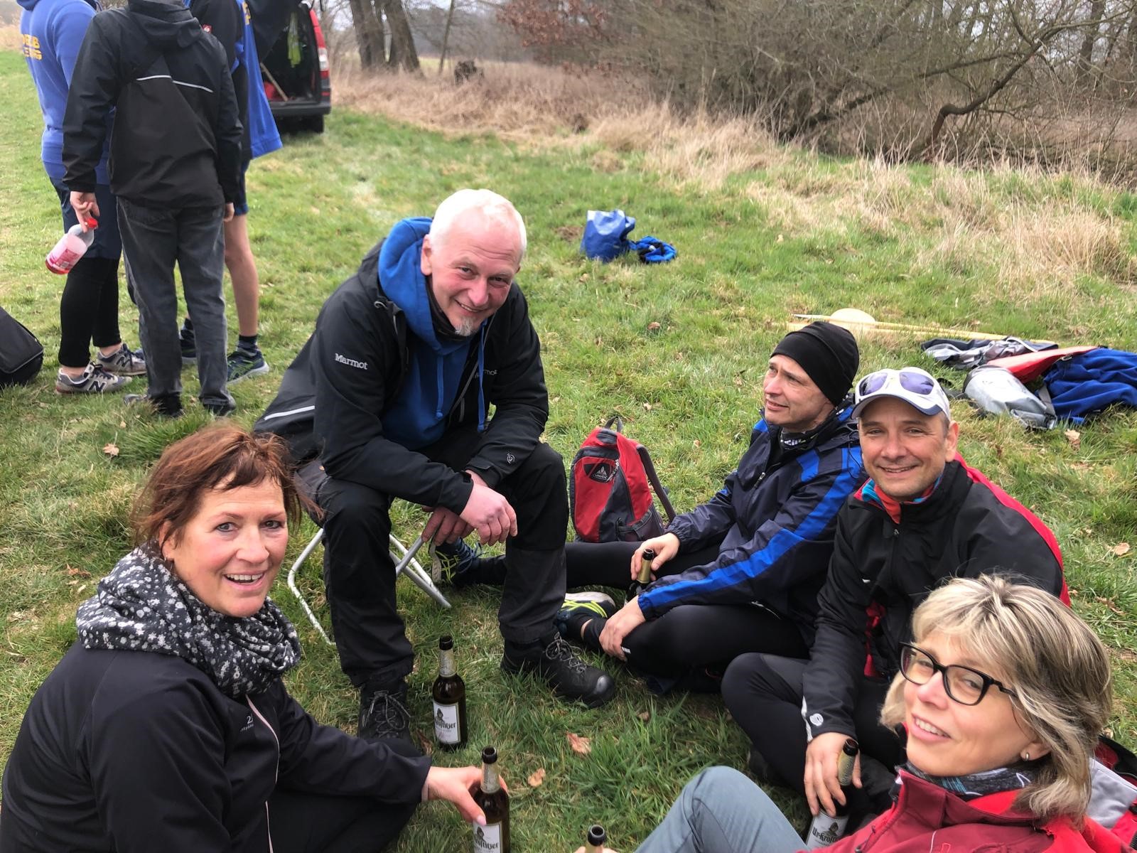 Ein halbes Dutzend Gigs wurden den Mühlgraben aufwärts gerudert. Wer sich sonst noch vom Kaffeekränzchen loseisen konnte, nahm das Fahrrad. In fröhlicher Runde fand man auf der Uferwiese wieder zusammen. Dank des üblichen Knäckerchens musste niemand frieren oder hungern. Verdursten ist sowieso nie eine Option. Mehr oder weniger trocken wurde bei untergehender Sonne der heimische Steg erreicht. Im Bootshaus gab es dann wie immer den gemütlichen Ausklang. Vielen Dank allen, die zum gelungenen Saisonauftakt beigetragen haben.