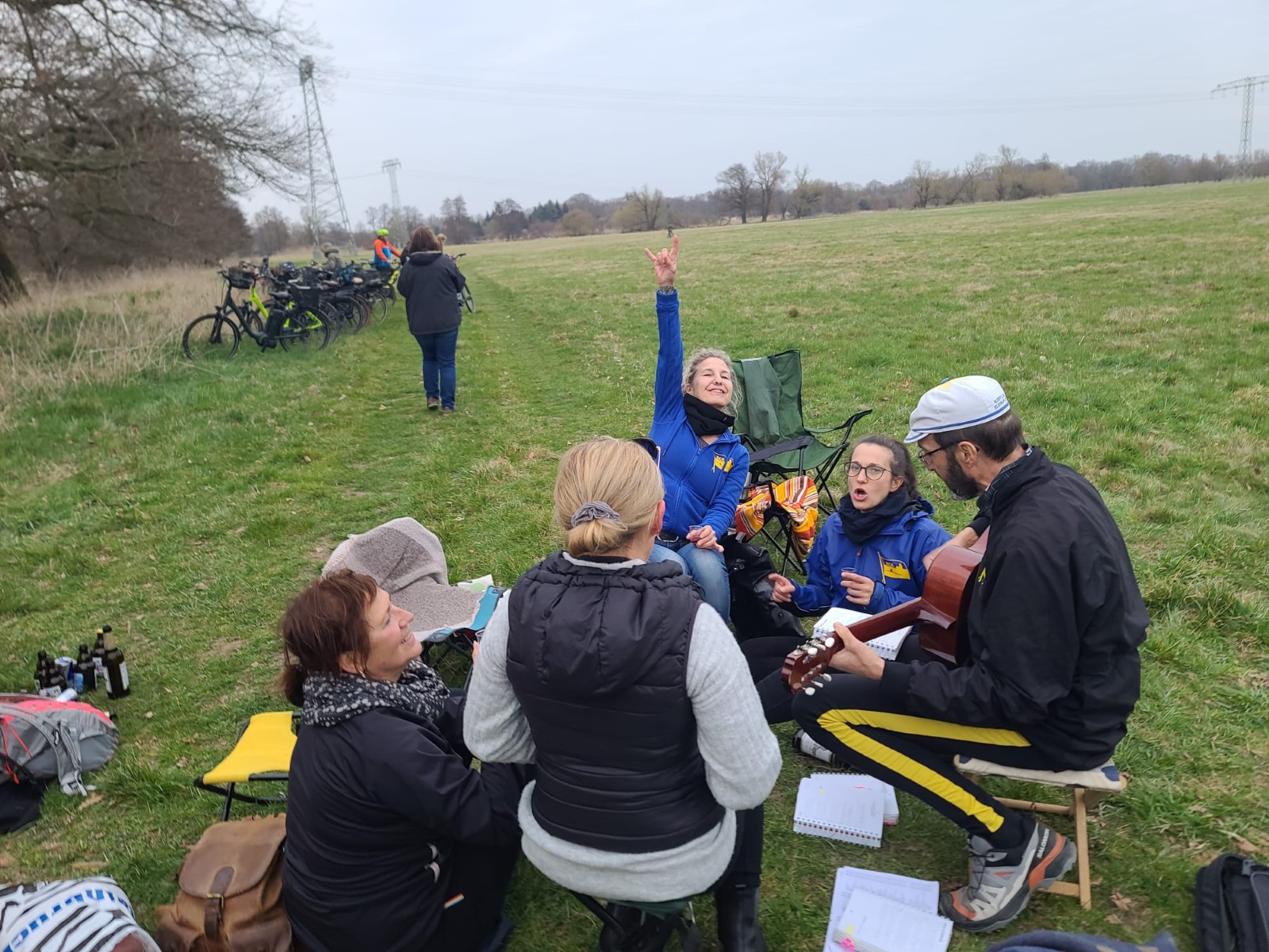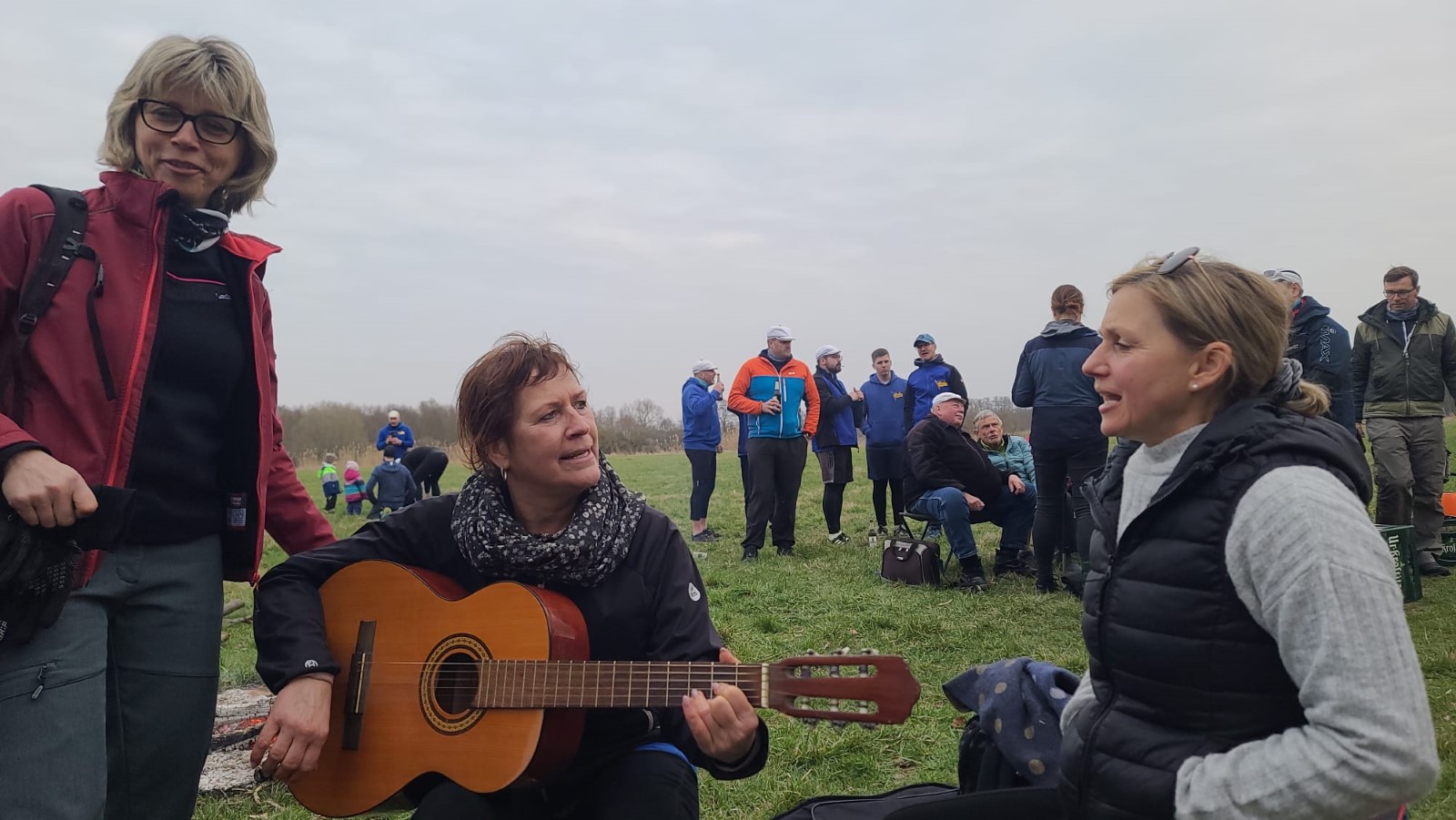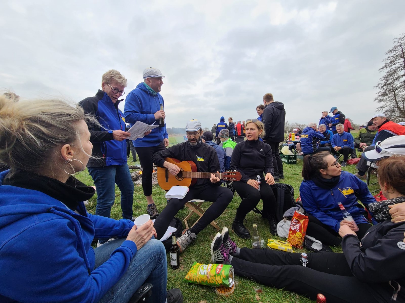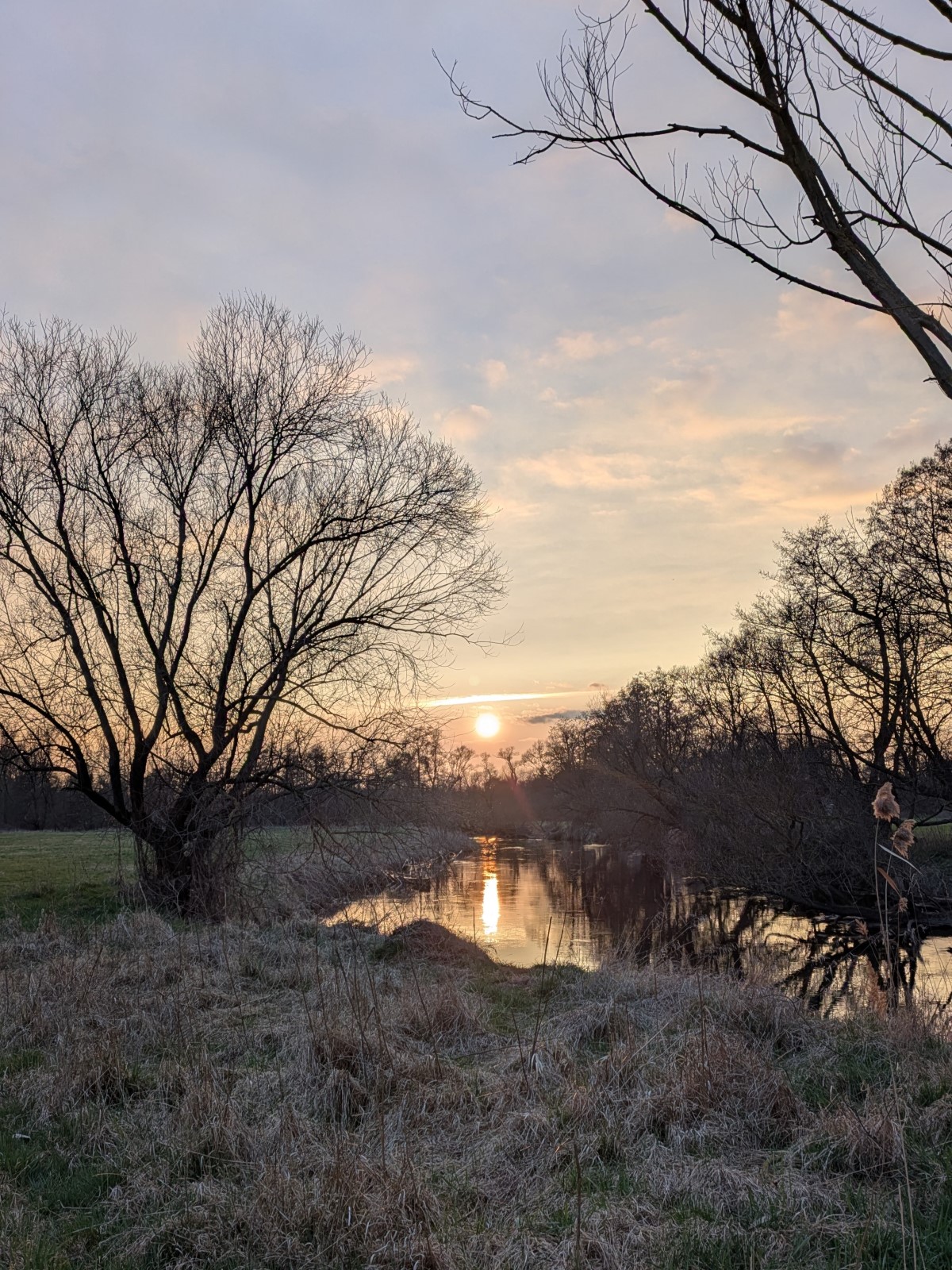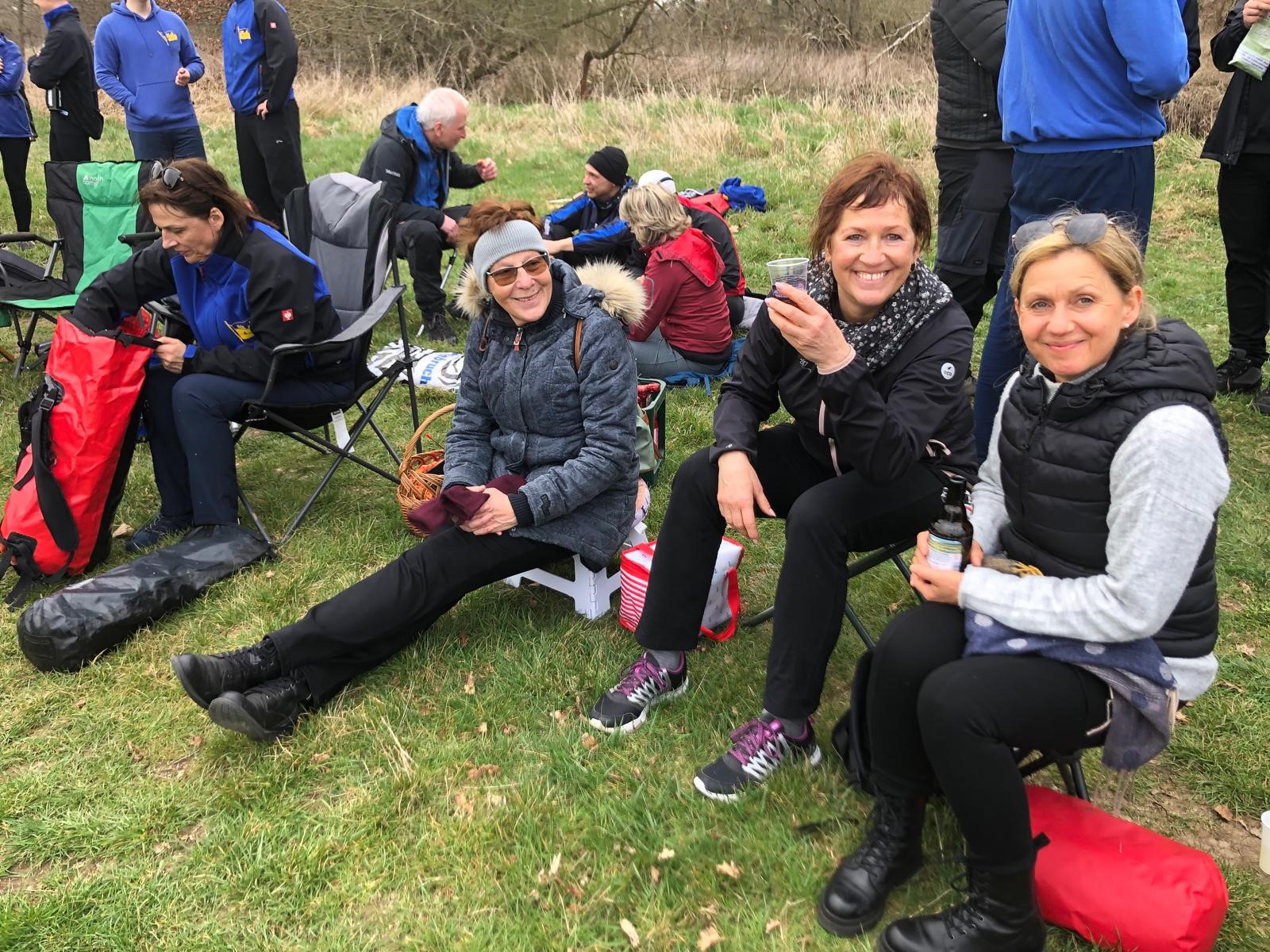Ein halbes Dutzend Gigs wurden den Mühlgraben aufwärts gerudert. Wer sich sonst noch vom Kaffeekränzchen loseisen konnte, nahm das Fahrrad. In fröhlicher Runde fand man auf der Uferwiese wieder zusammen. Dank des üblichen Knäckerchens musste niemand frieren oder hungern. Verdursten ist sowieso nie eine Option. Mehr oder weniger trocken wurde bei untergehender Sonne der heimische Steg erreicht. Im Bootshaus gab es dann wie immer den gemütlichen Ausklang. Vielen Dank allen, die zum gelungenen Saisonauftakt beigetragen haben.
