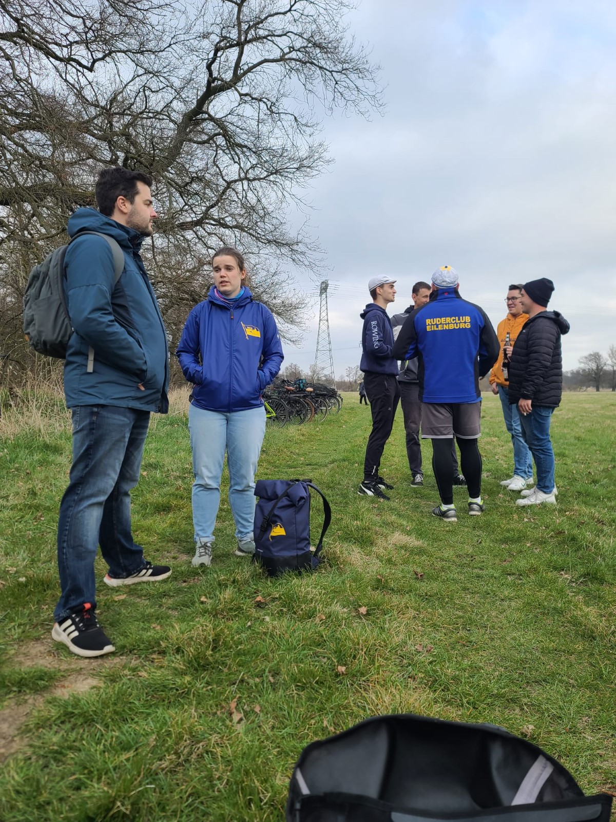 Erste gute Nachricht für 2025: Die legendäre 'Eierfahrt' hat stattgefunden. Am Neujahrstag fanden sich einer nach dem anderen ab 10 Uhr im Bootshaus ein. Der Ablauf ergab sich spontan, denn flussaufwärts war gastronomisch keine Einkehrmöglichkeit in Aussicht. Veikko hatte noch einen gut gefüllten Dutch Oven im Angebot. Zusammen mit Marcel kümmerte er sich gleich noch um Bier und Brötchen. Währenddessen wurde der Doppelvierer 'Marienburg' klar gemacht und geschmeidig bestiegen. Die erste Fahrt des Jahres ging gemächlich und genussvoll begleitet von Ei-Verzehr und kühlem Trunk von 'Brücke bis Brücke' und zurück. Derweil wärmte schon der Feuerkessel, so ließ es sich trotz windig frischem Ambiente auch außerhalb einer Gaststube bis weit in den Nachmittag hinein aushalten. Damit ist der zünftige Auftakt des neuen Ruderjahres gesetzt... RBJ