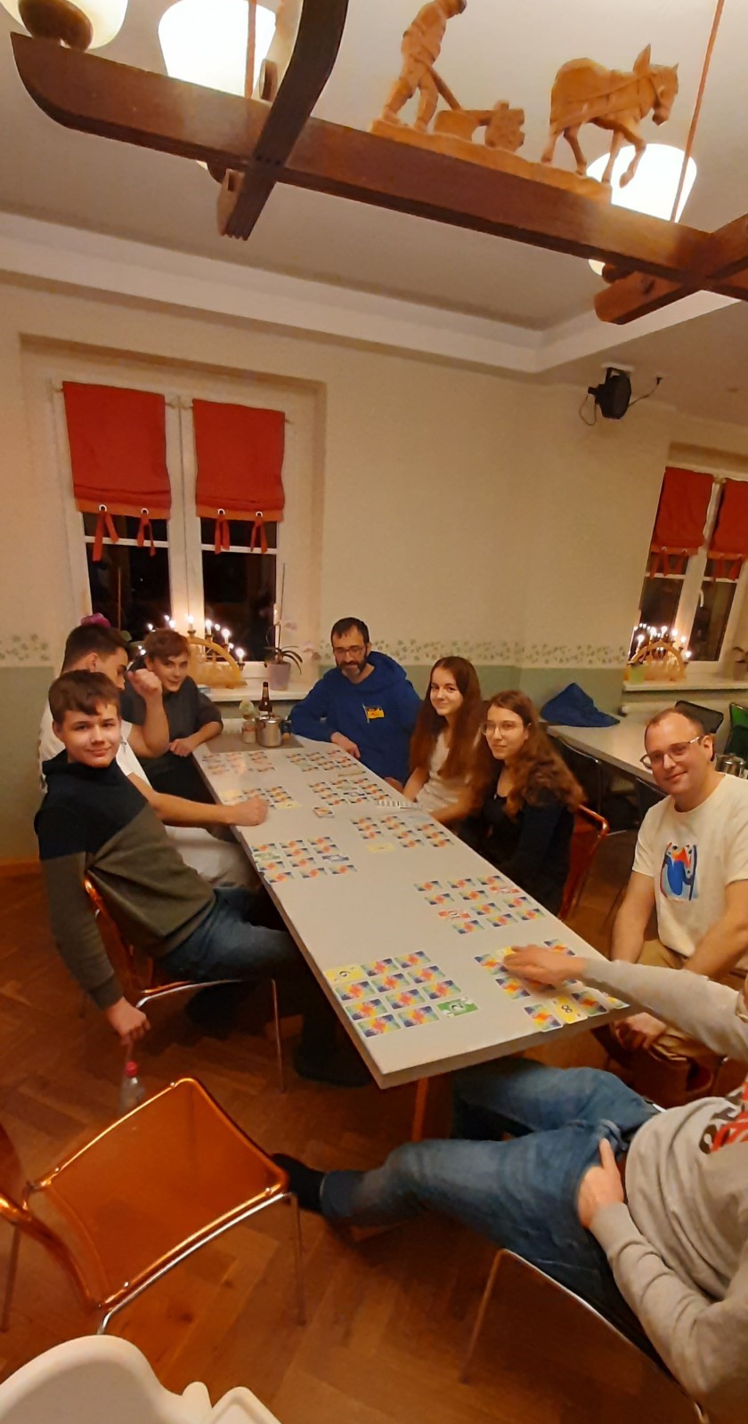 Nach der Stärkung (und Autofahrt) sind wir in Weitersglashütte noch einmal in die Ski gestiegen und von der Kamm-Loipe über den Butterweg zum Landschulheim gelaufen. An diesem Abend fand eine kleine Programmstunde statt. Jedes Zimmer sollte ca. 5 Minuten die anderen mit z.B. Witzen oder Gemeinschaftsspielen unterhalten.
